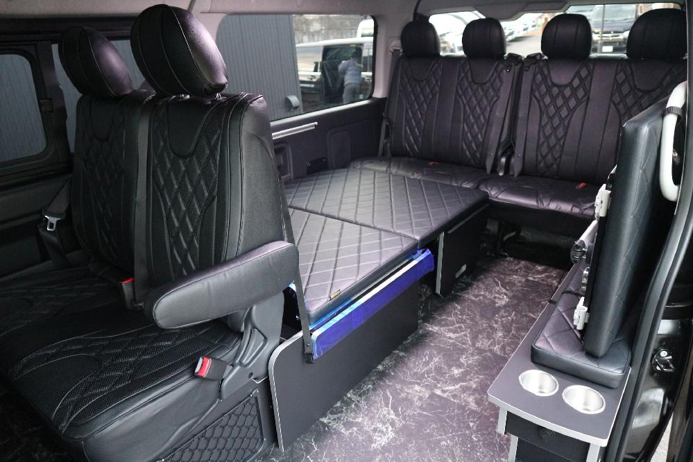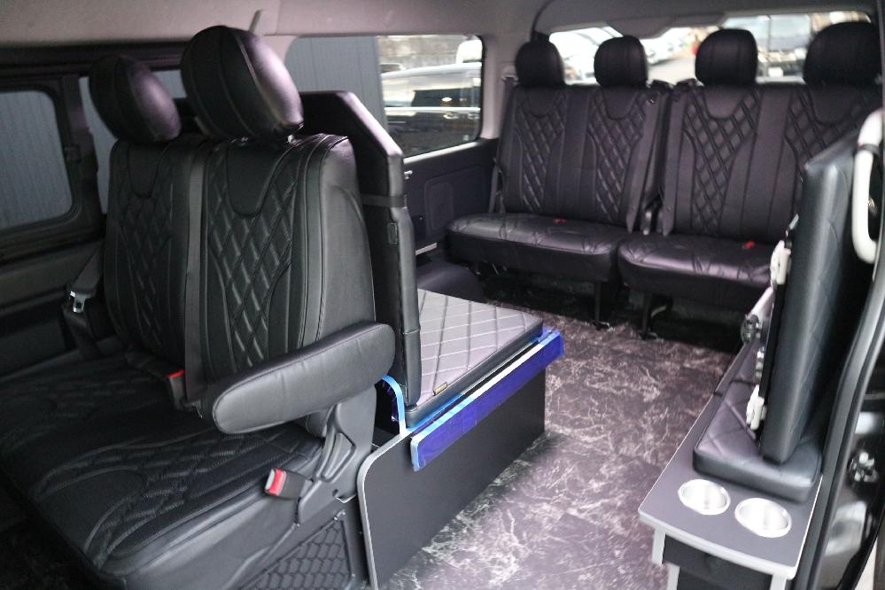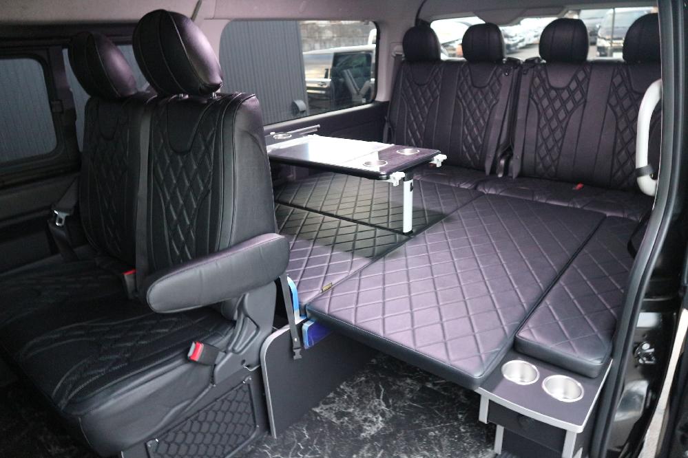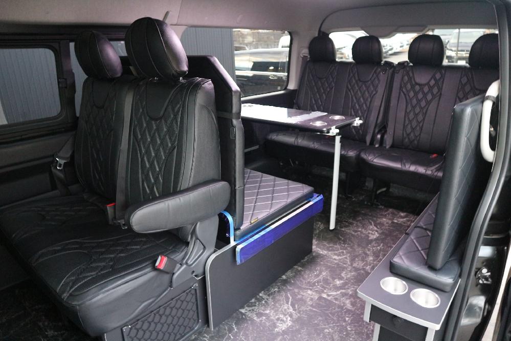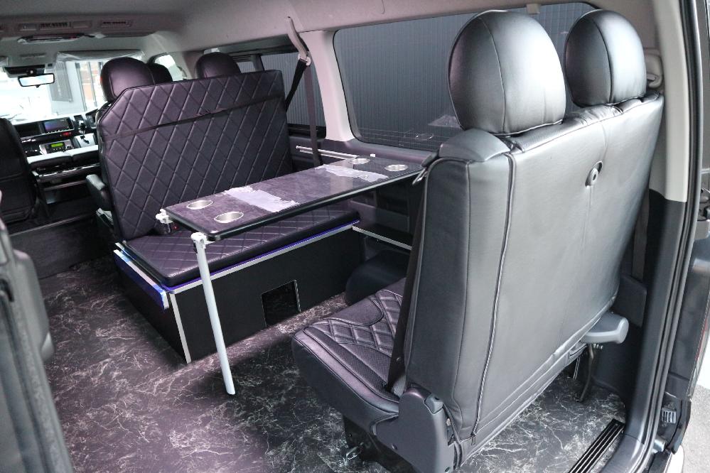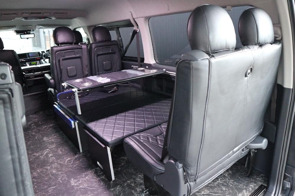 HOME > ギャラリー:IF-WB8 : ハイエースワゴンGL前向き8名後ろ向き2名10人乗り対面ラウンジベット家具 > IF-WB8 200系ハイエースワゴンGL ワイドボディー 前向き8名後ろ向き2名10人乗り対面ラウンジベッド家具施工