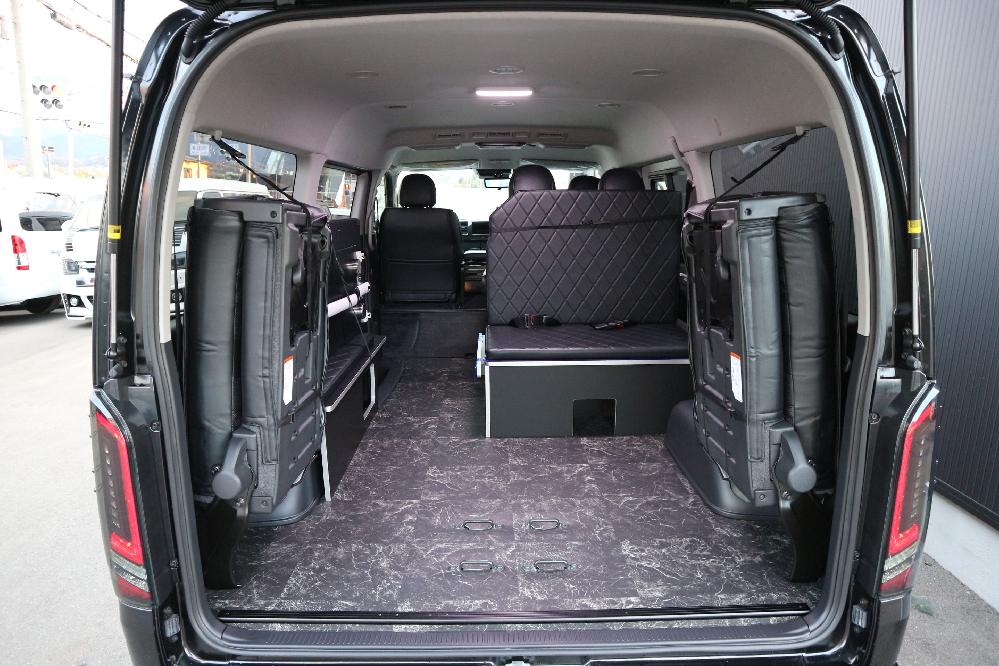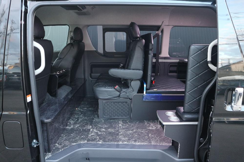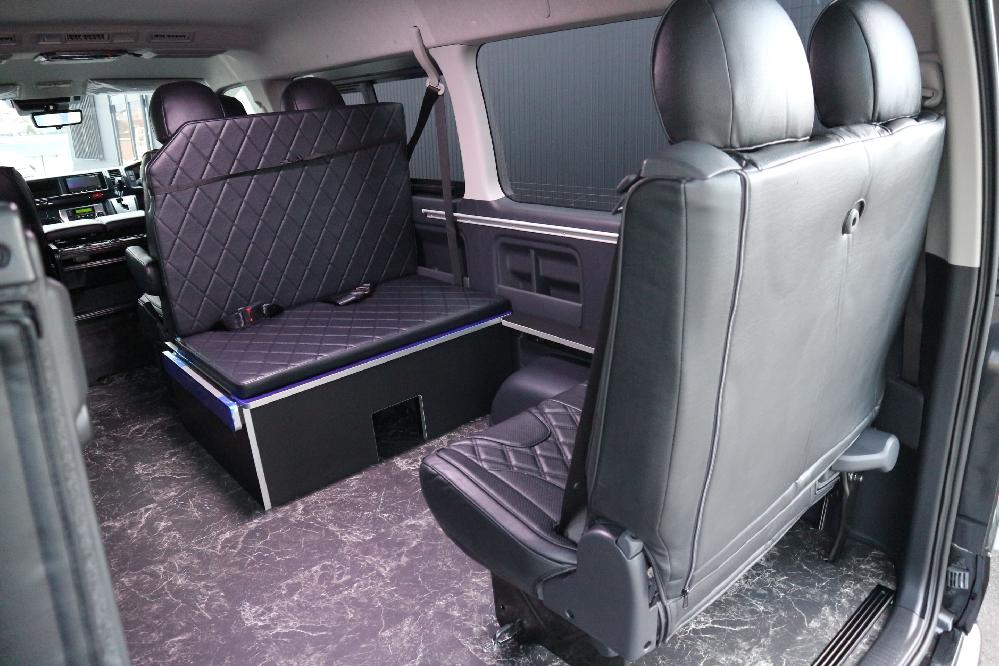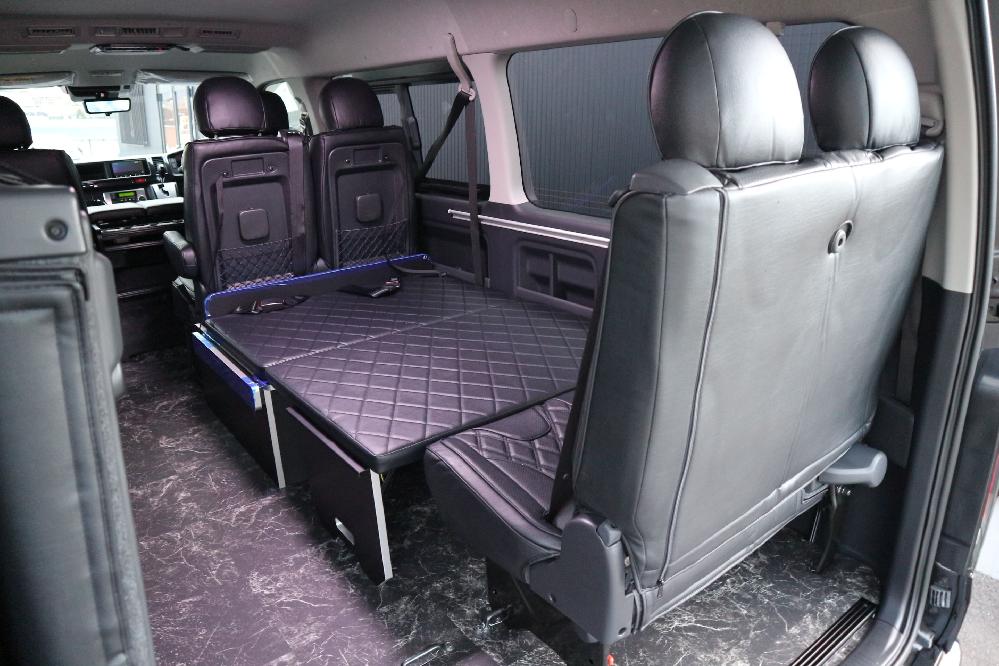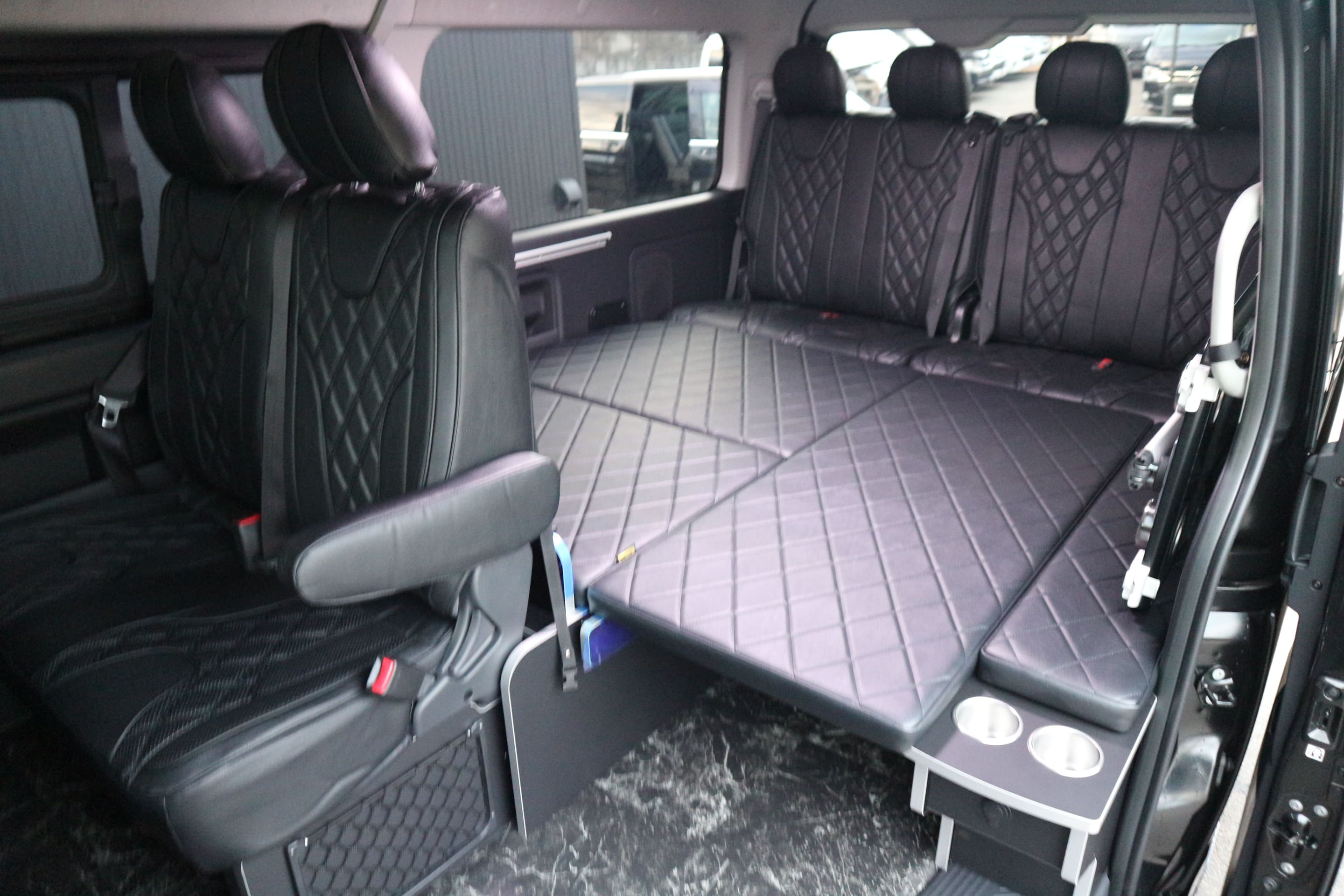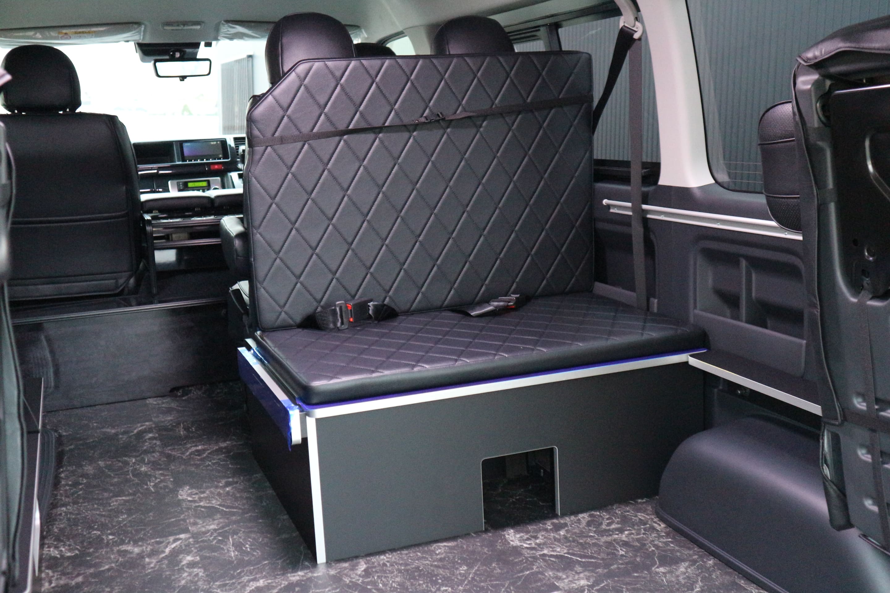 HOME > ギャラリー:IF-WB8 : ハイエースワゴンGL前向き8名後ろ向き2名10人乗り対面ラウンジベット家具 > IF-WB8 200系ハイエースワゴンGL ワイドボディー 前向き8名後ろ向き2名10人乗り対面ラウンジベッド家具施工