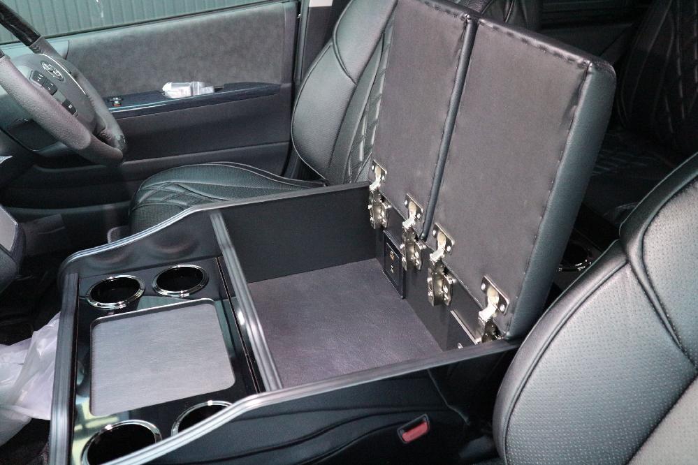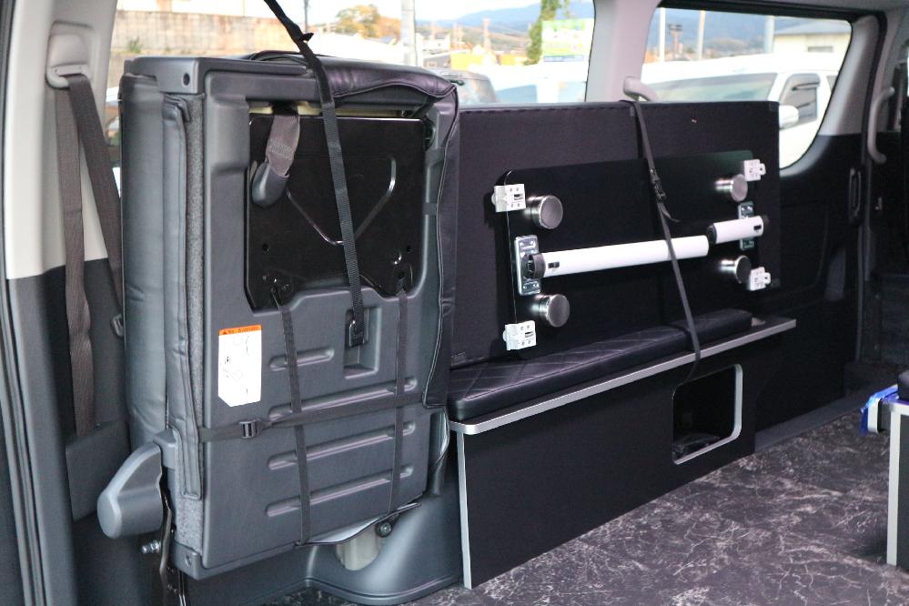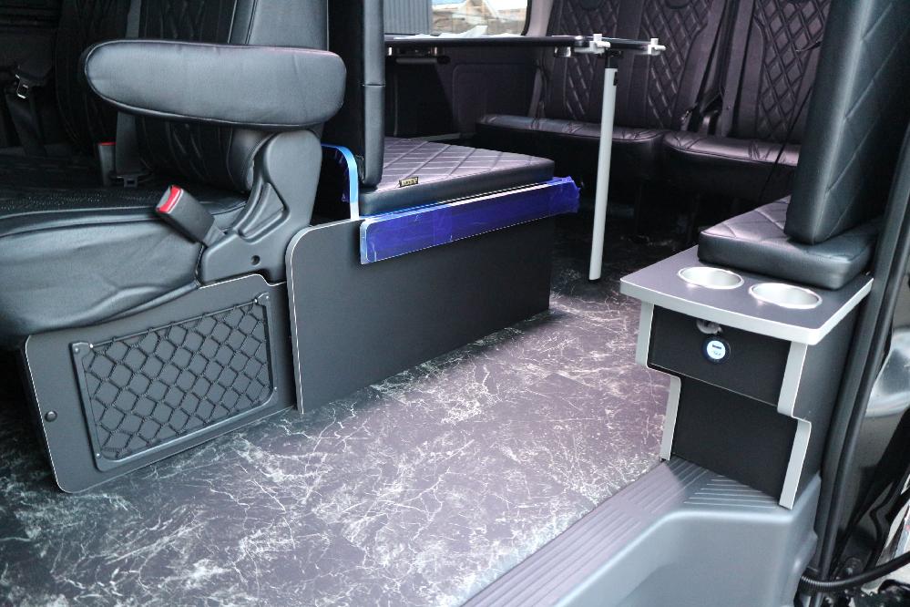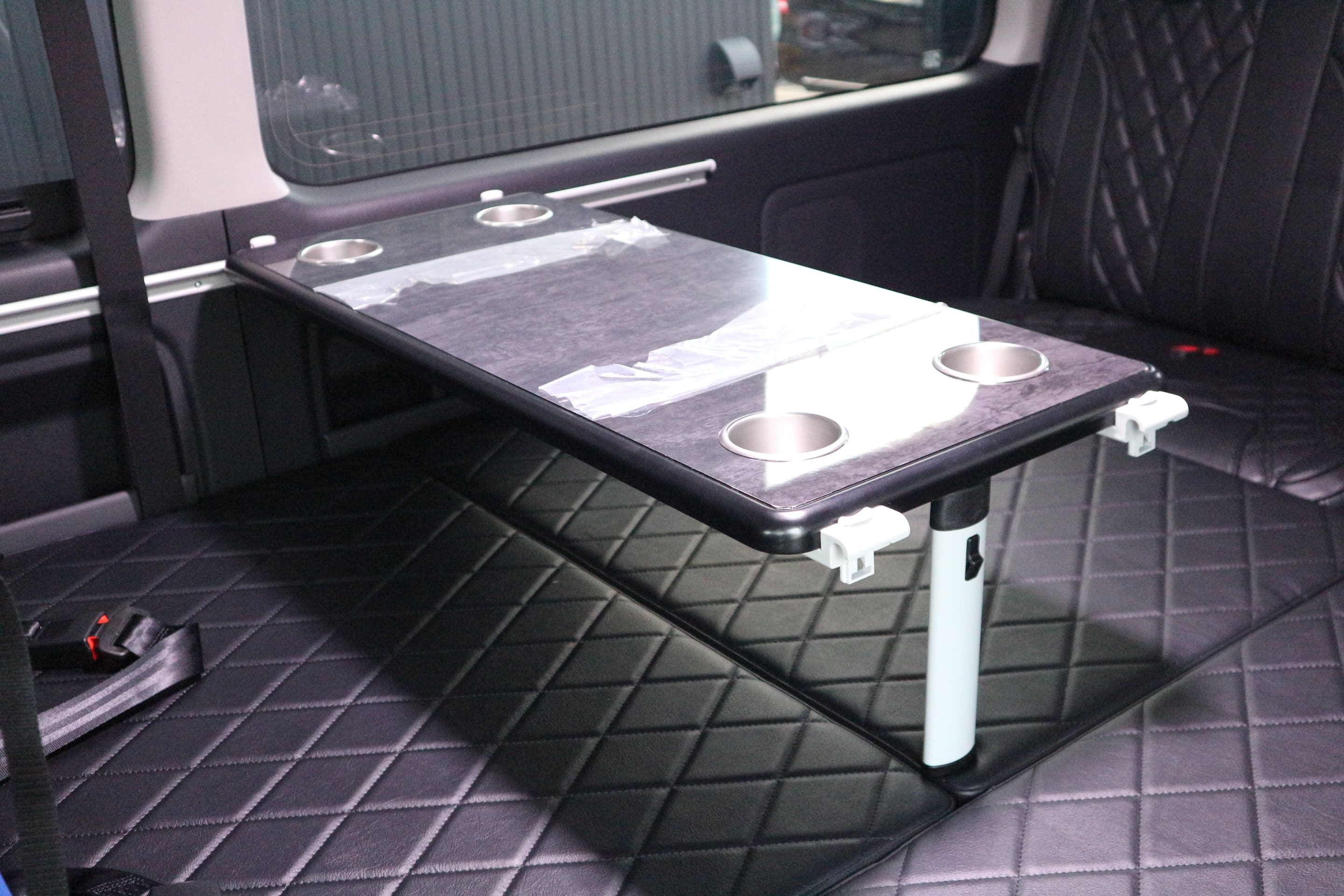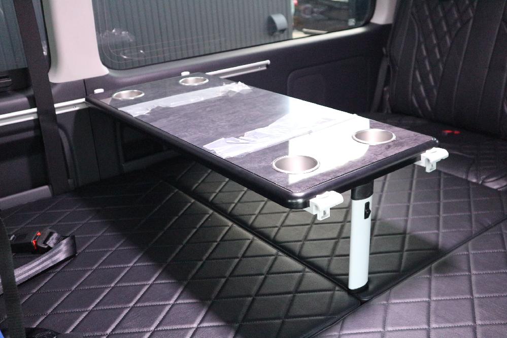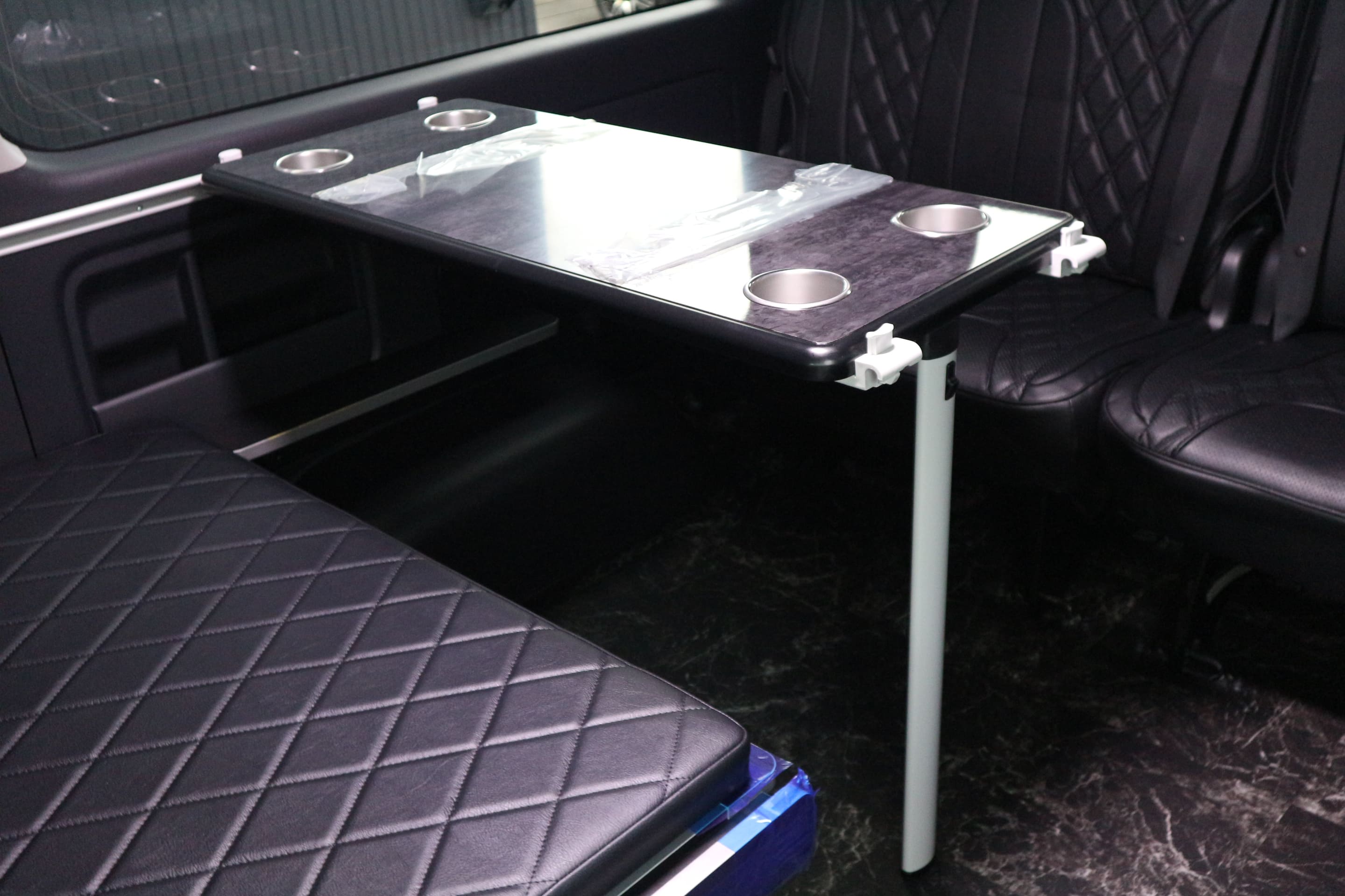 オプションサイドレールテーブル(ロングレッグ) 対面ラウンジ展開 2列目ワゴンGL純正2名シート 3列目ワゴンGL純正シート取り外し IF-WB8後ろ向き2名専用ベット家具