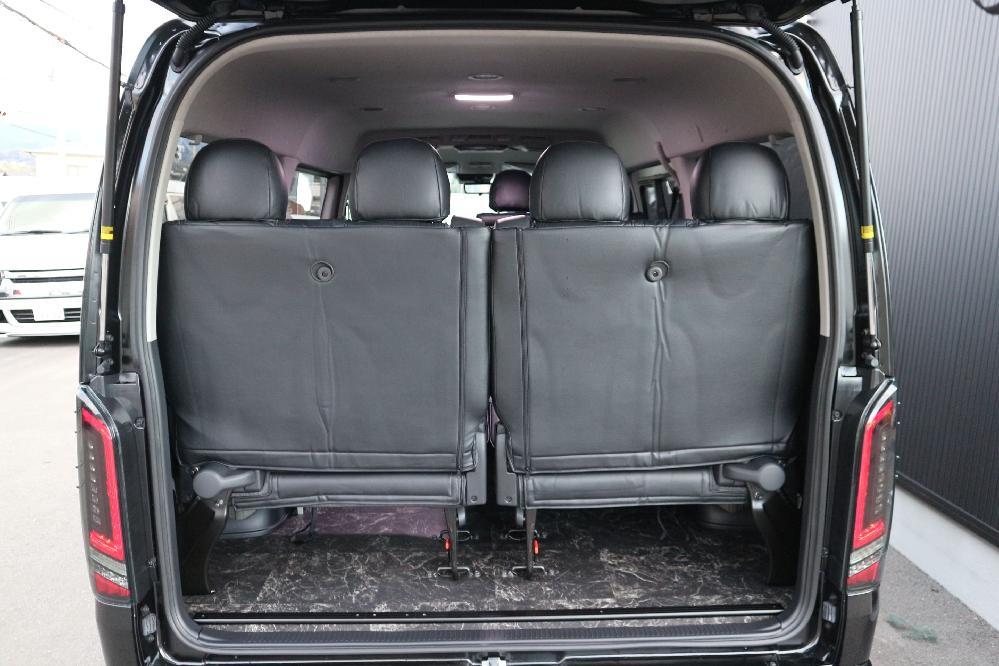 3列目後ろ向き2名シート展開 ベットマット背もたれ展開 後ろ向き専用シートベルト搭載