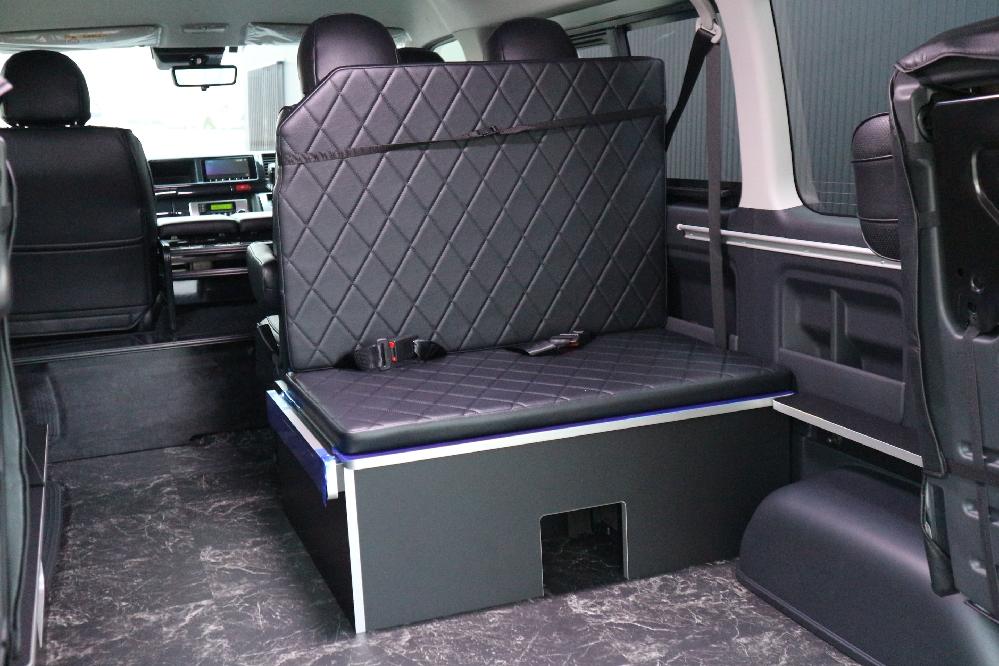 対面ラウンジ展開 2列目ワゴンGL純正2名シート 3列目ワゴンGL純正シート取り外し IF-WB8後ろ向き2名専用ベット家具