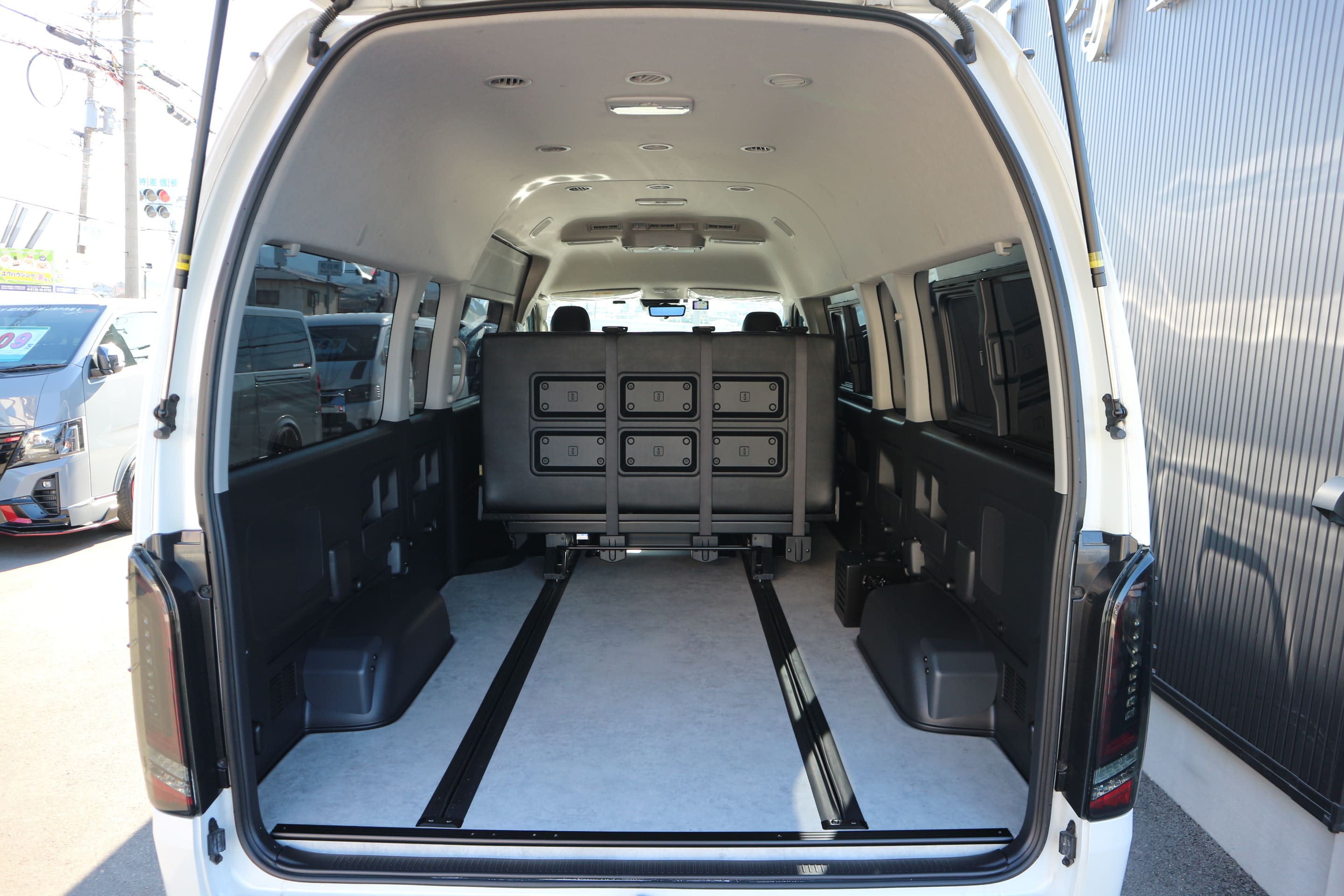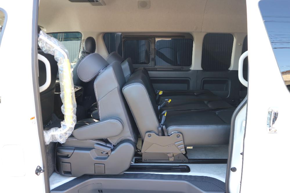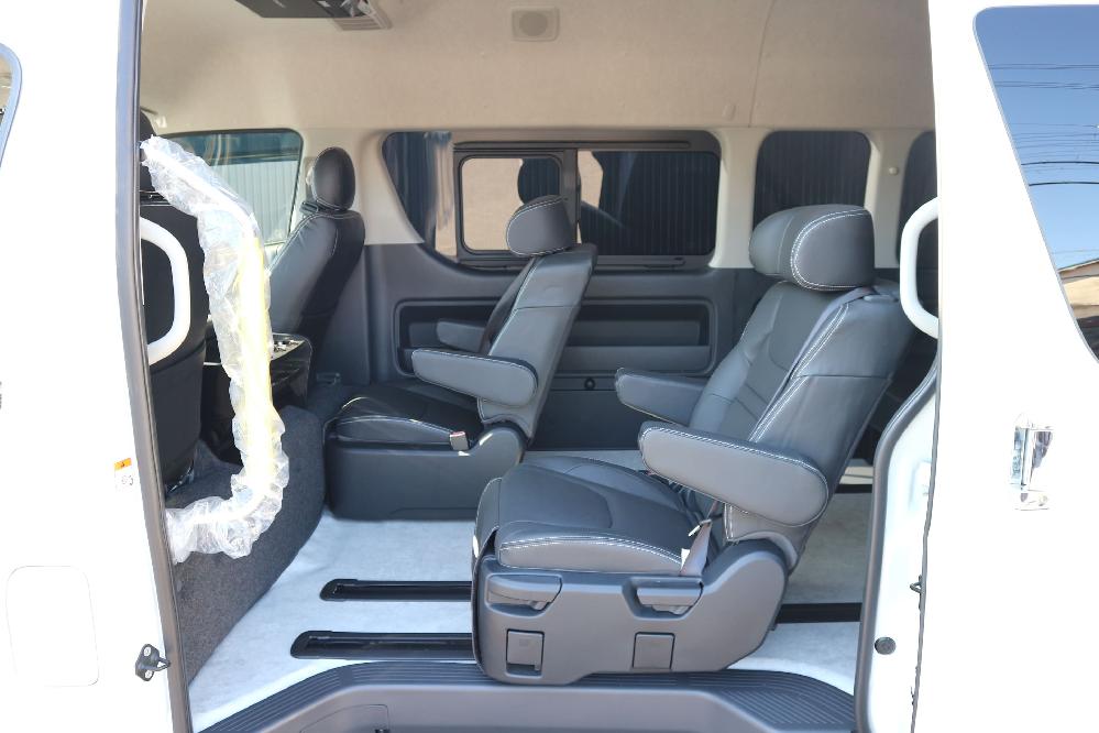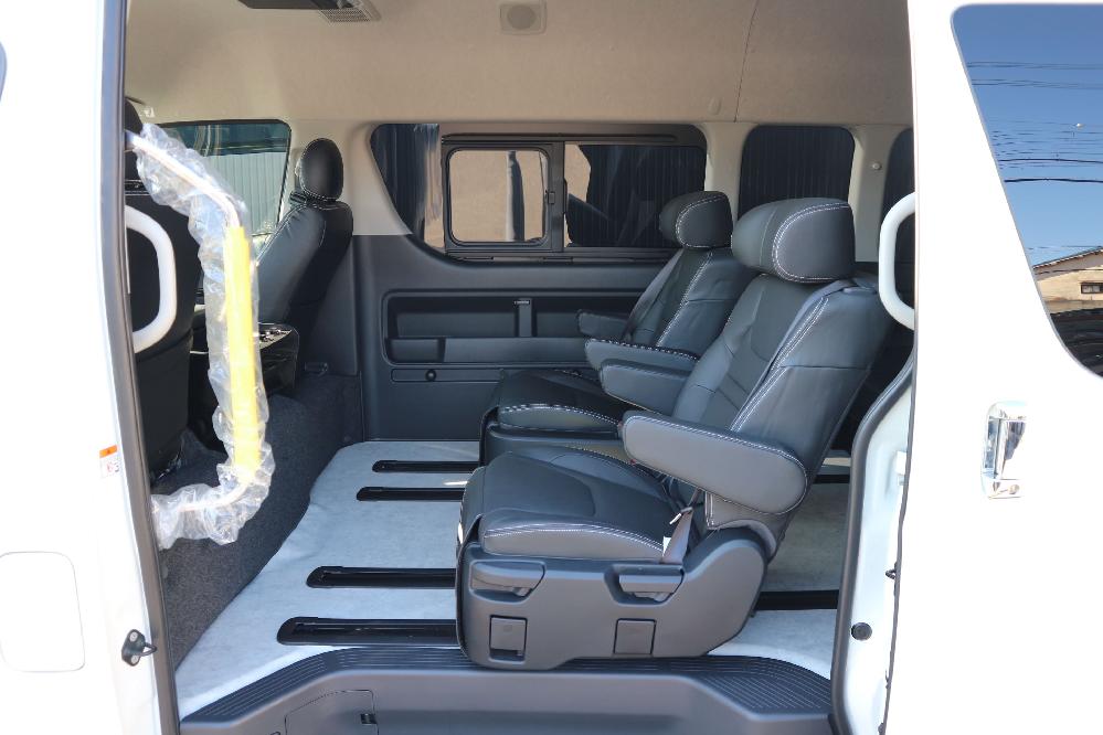 HOME > ギャラリー:IF-WR10 : 正規3ナンバーワゴン乗用車登録10人乗り > IF-WR10 200系ハイエースコミューターGL ワイドボディー キャプテンシート2脚T-REVOシート2脚10人乗り施工