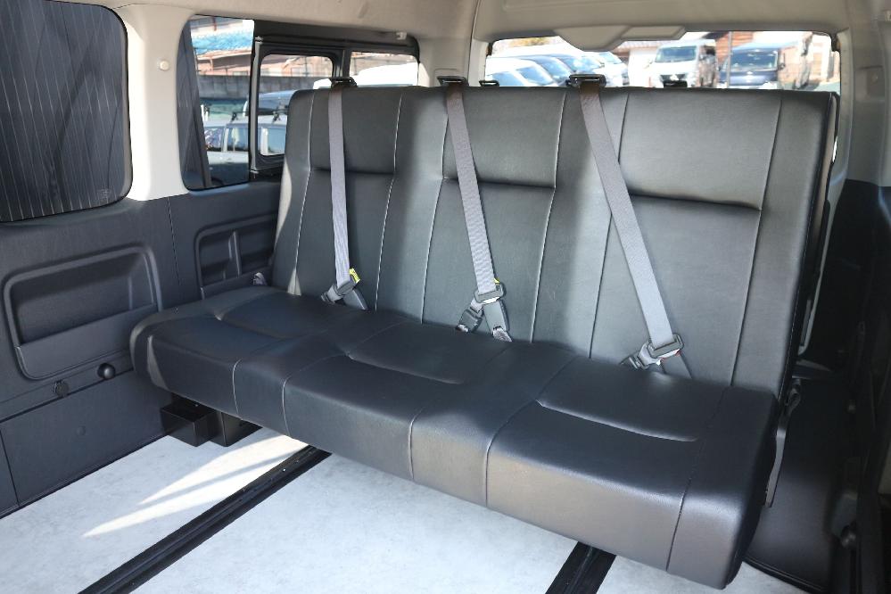 3列目T−REVO1400mm成型シート 全席3点式シートベルト オプションヘッドレスト シート生地 はりのあるかため シートデザイン オーダーシートデザイン(クロレザー一色)