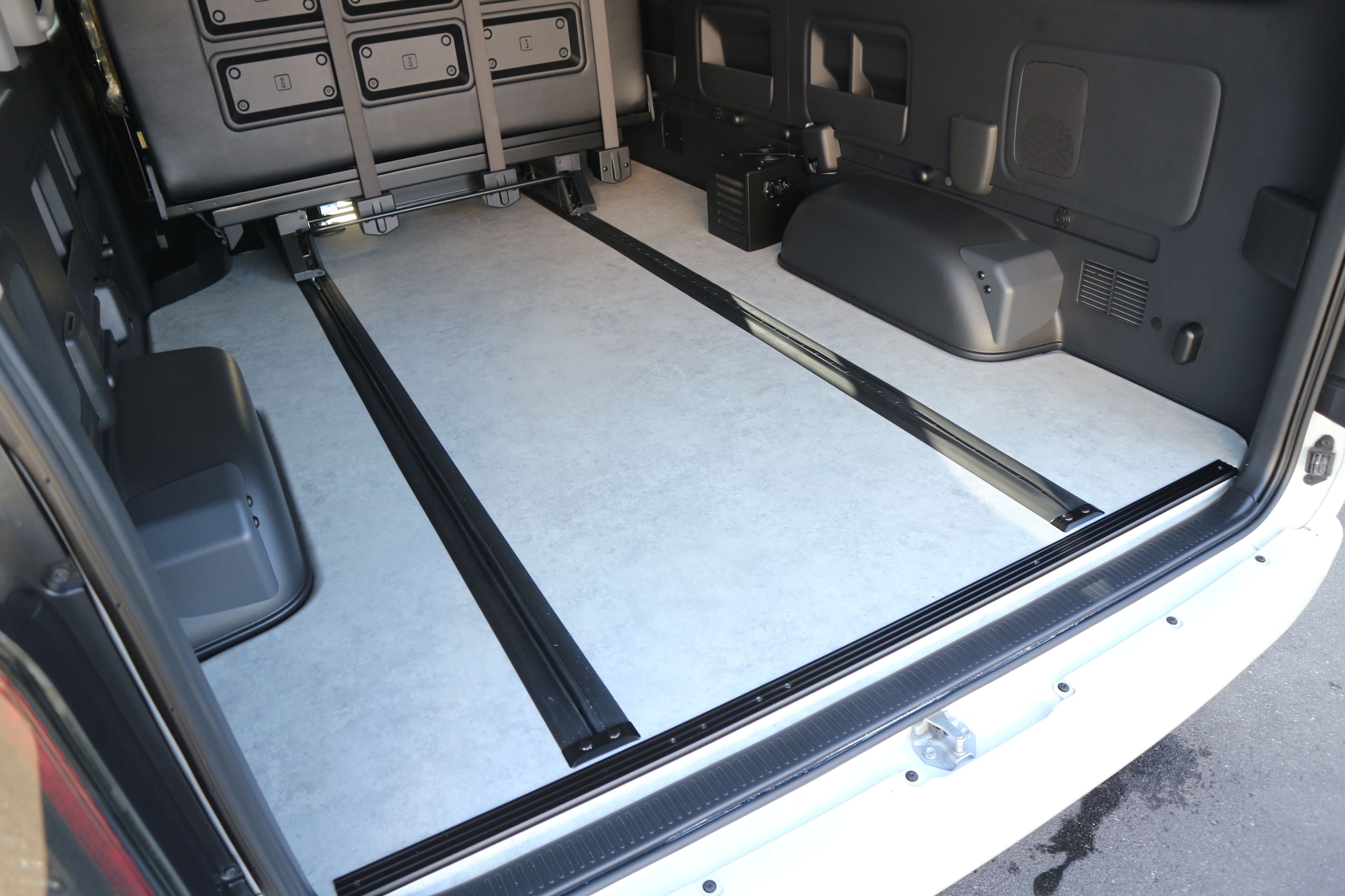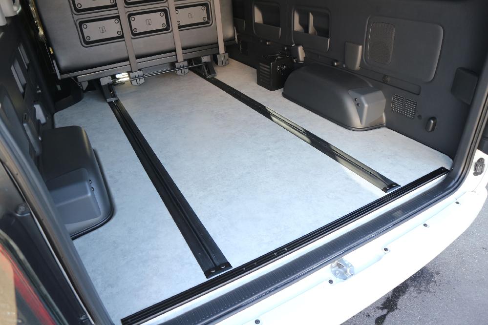 フロアフローリング施工 ロングスライドレール スペアタイヤ取り出しできます