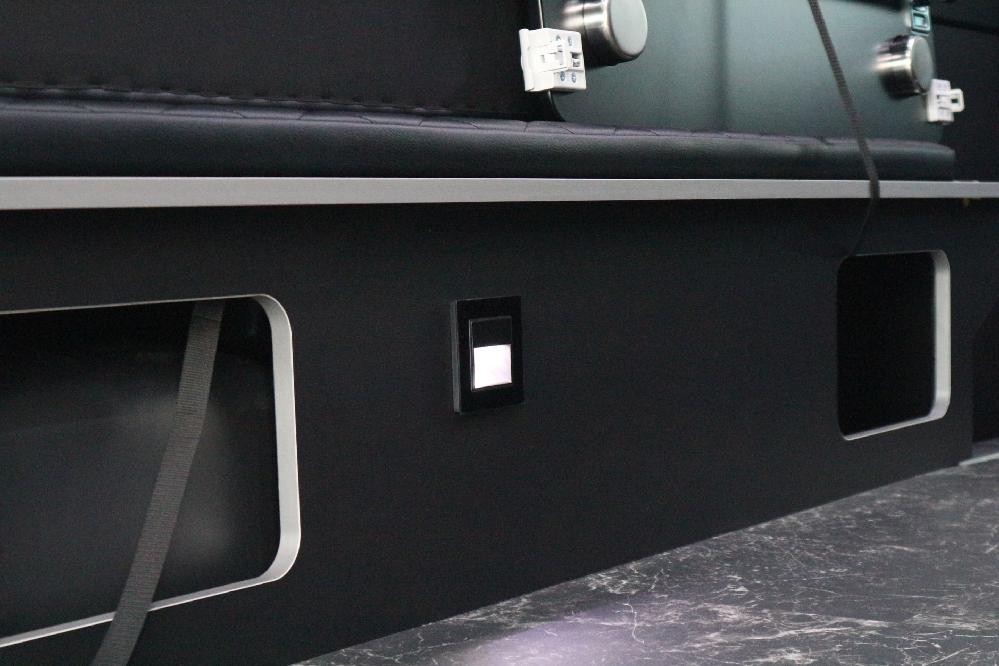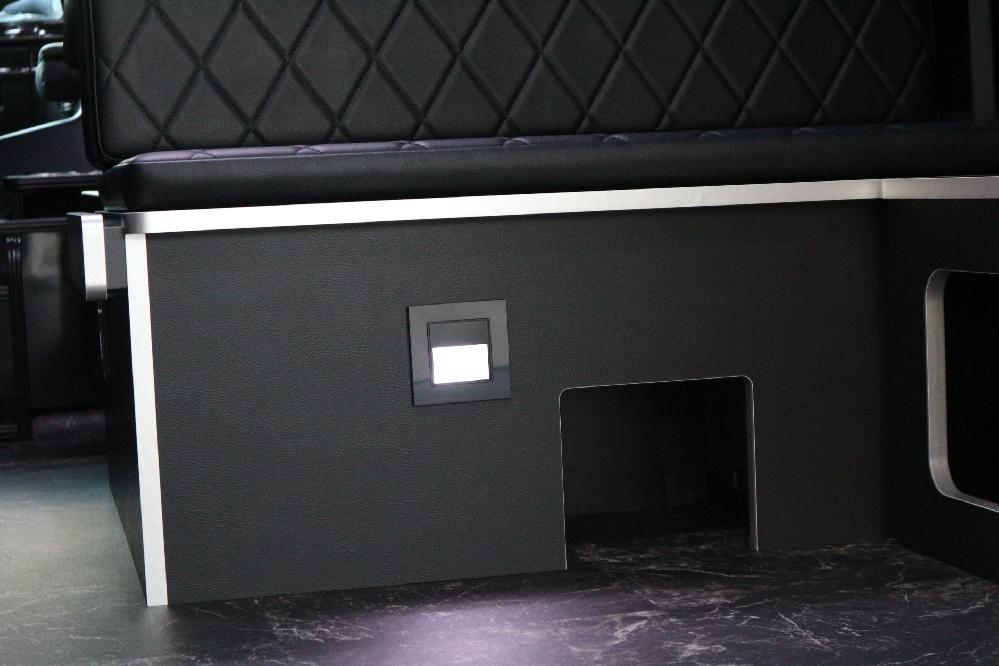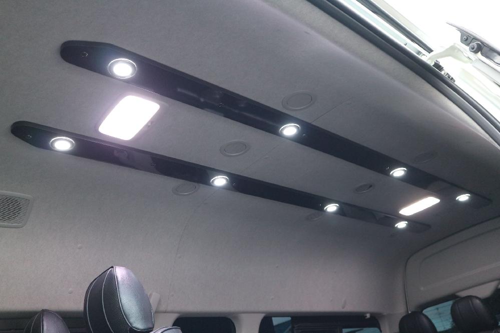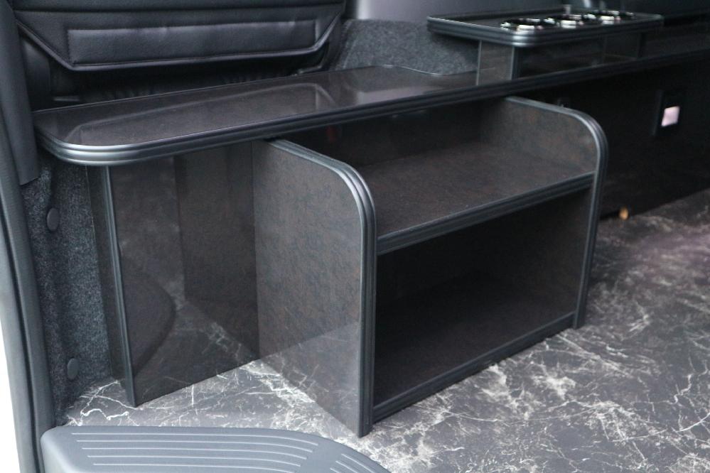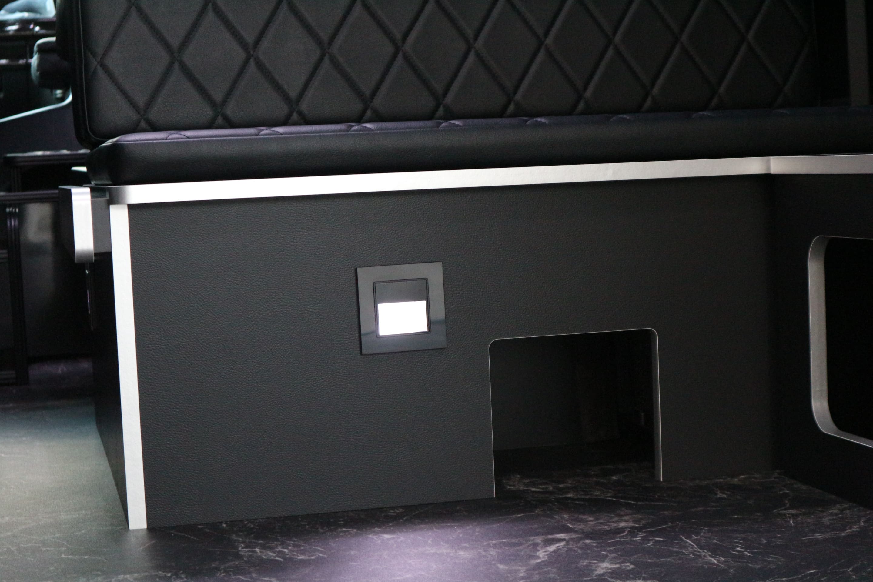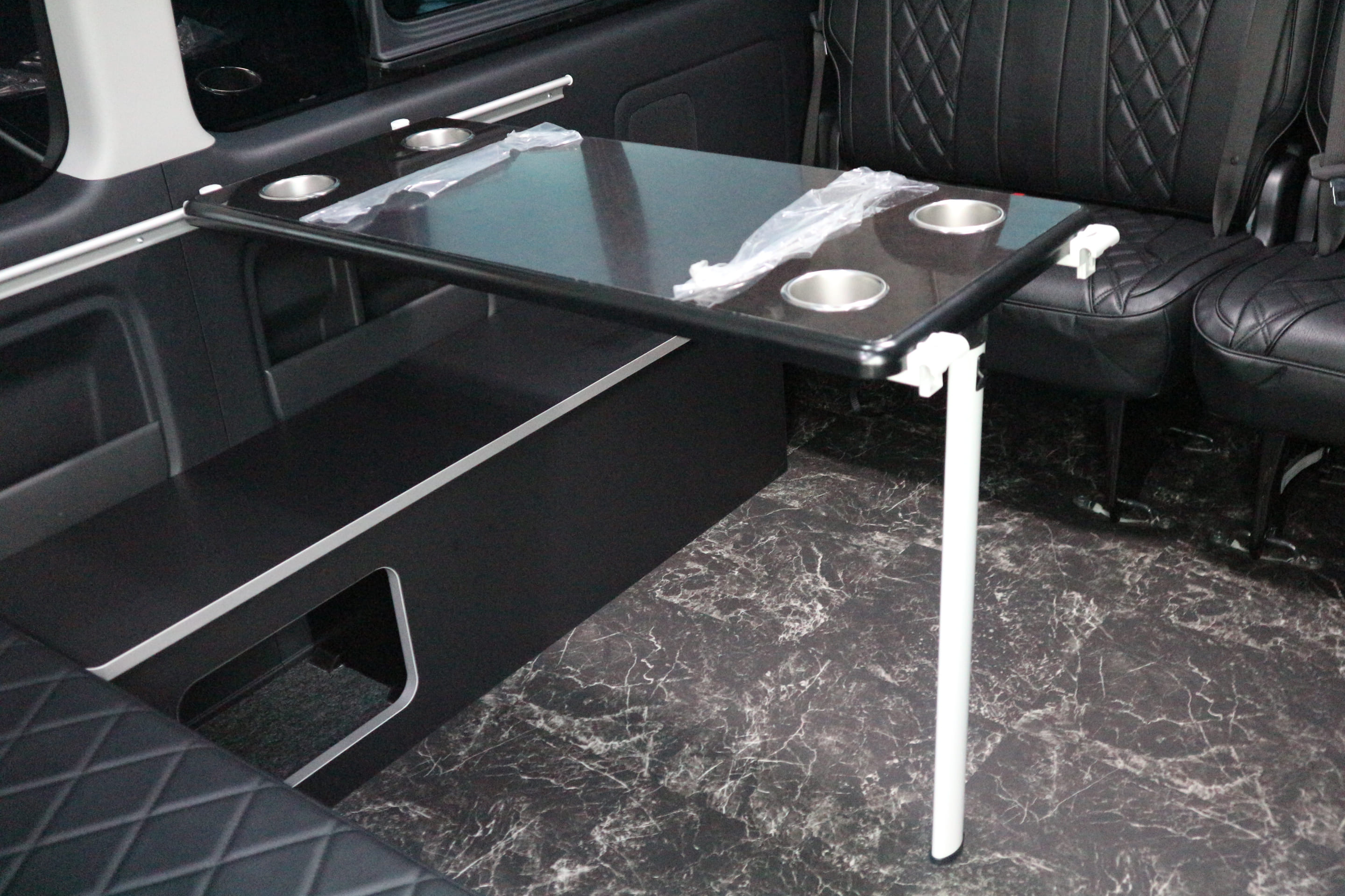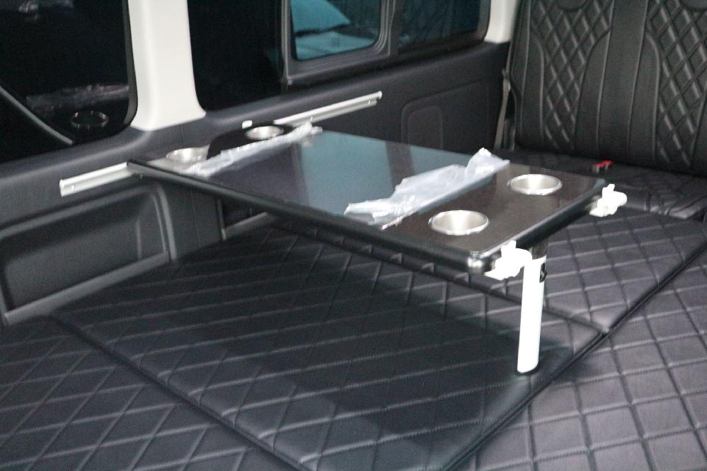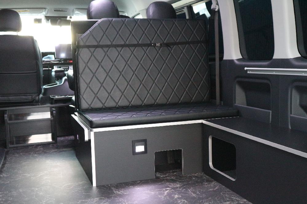 IF-WB8リビングサルーン 200系ハイエースコミューターGL スーパーロング 前向き8名後ろ向き2名10人乗り対面ラウンジベッド家具施工
