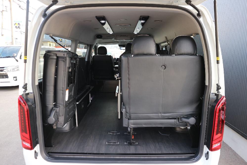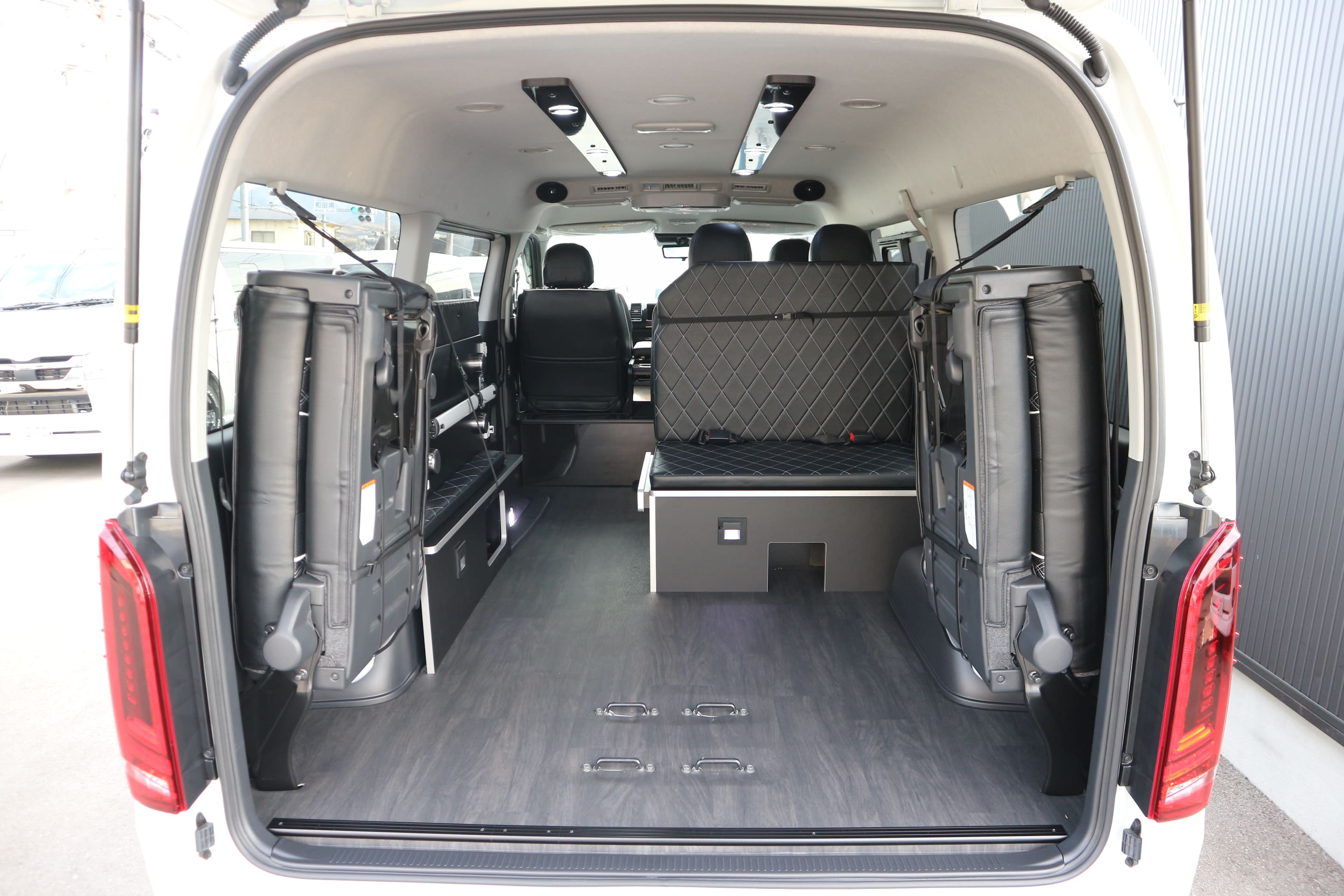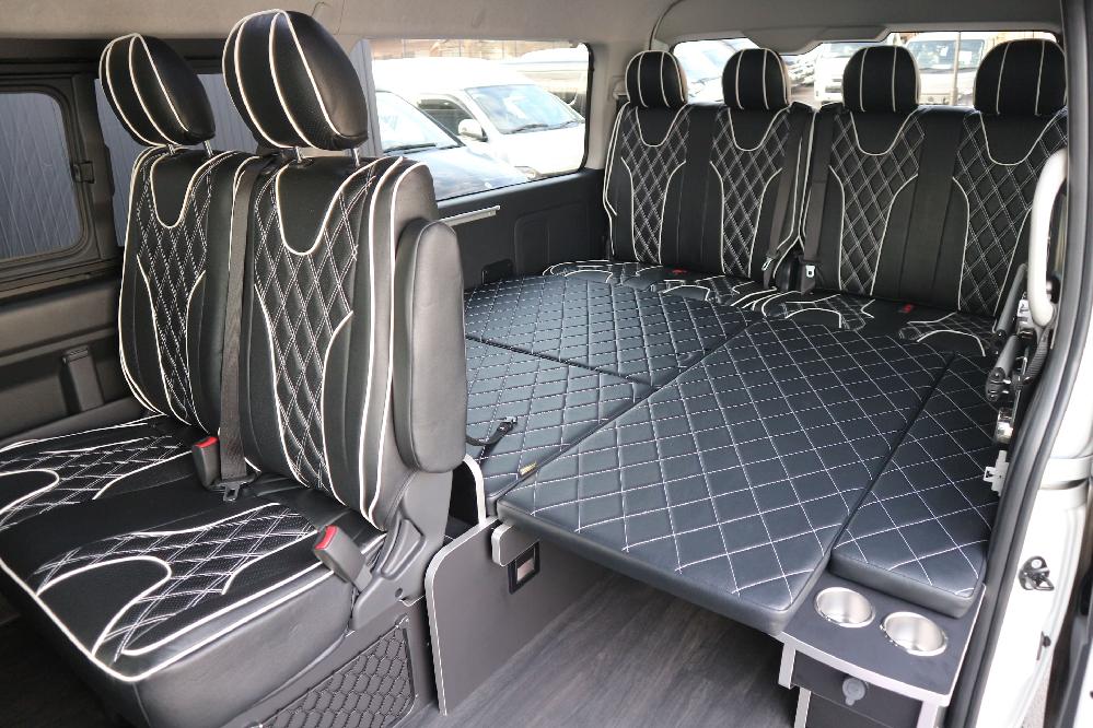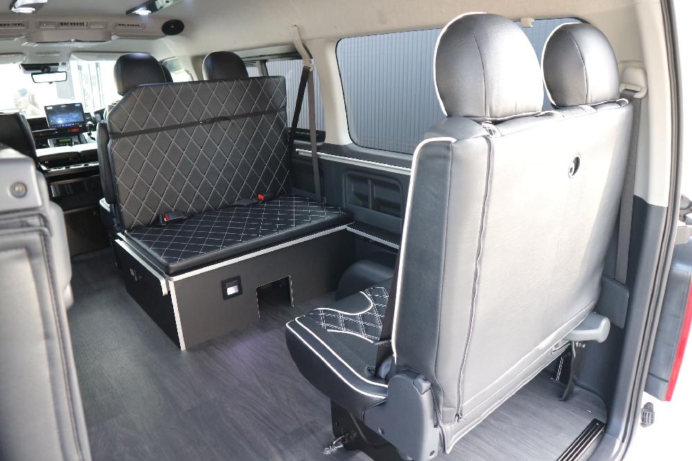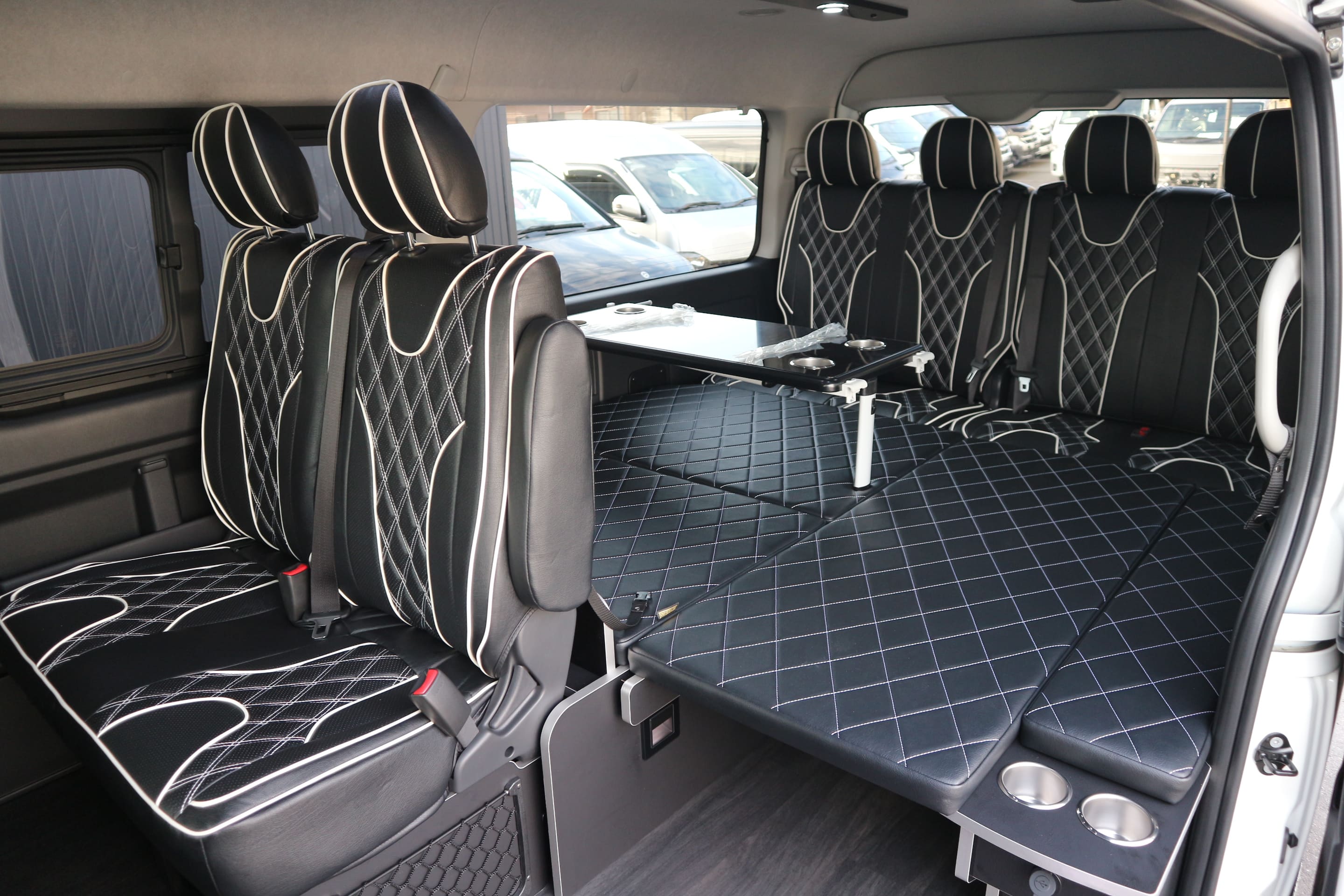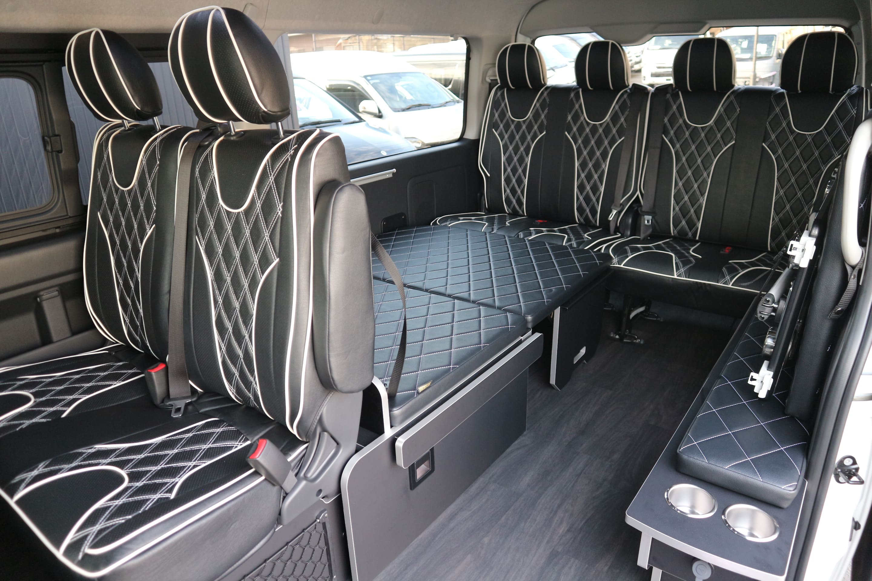 HOME > ギャラリー:IF-WB8 : ハイエースワゴンGL前向き8名後ろ向き2名10人乗り対面ラウンジベット家具 > IF-WB8リビングサルーン 200系ハイエースワゴンGL ワイドボディー 前向き8名後ろ向き2名10人乗り対面ラウンジベッド家具施工