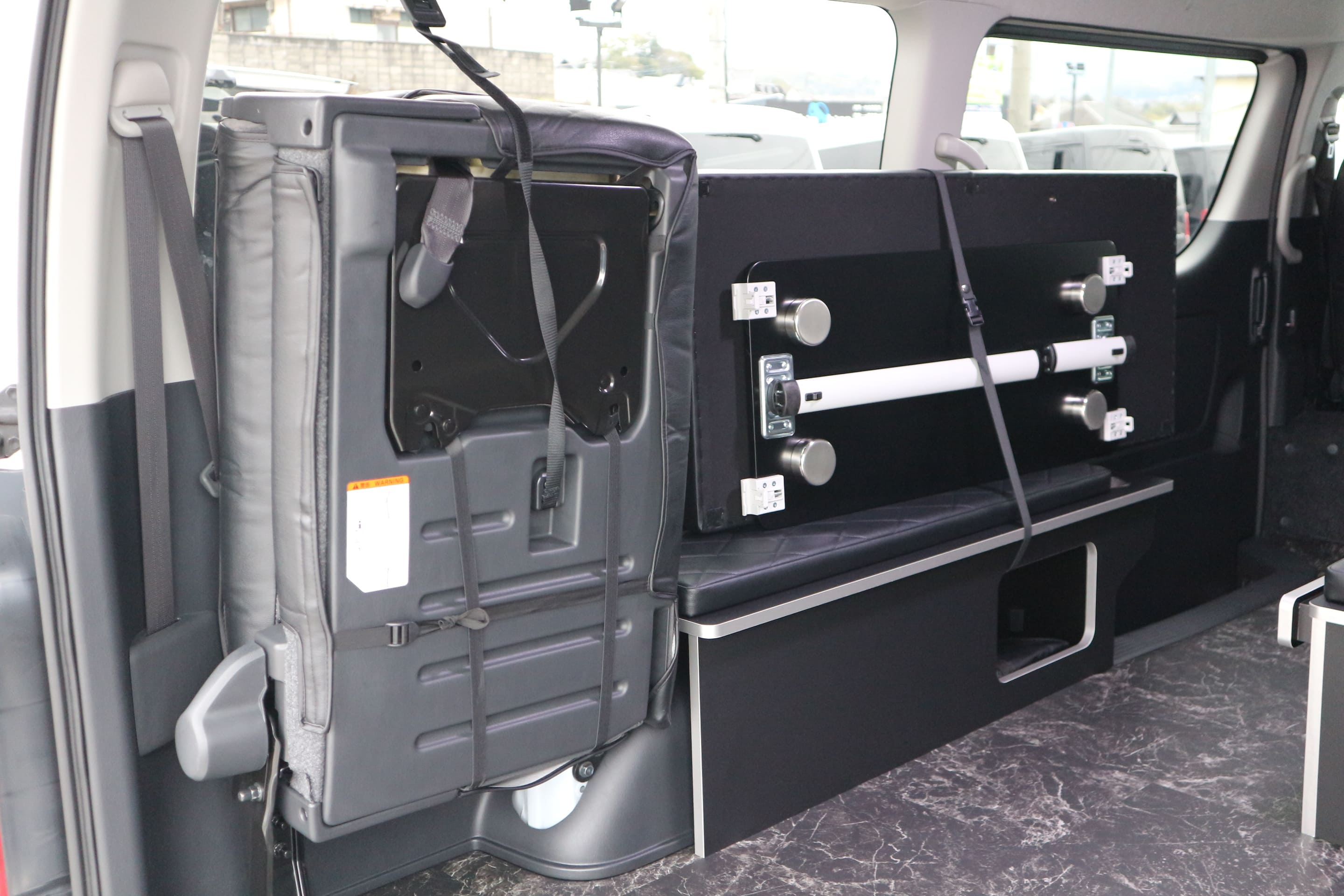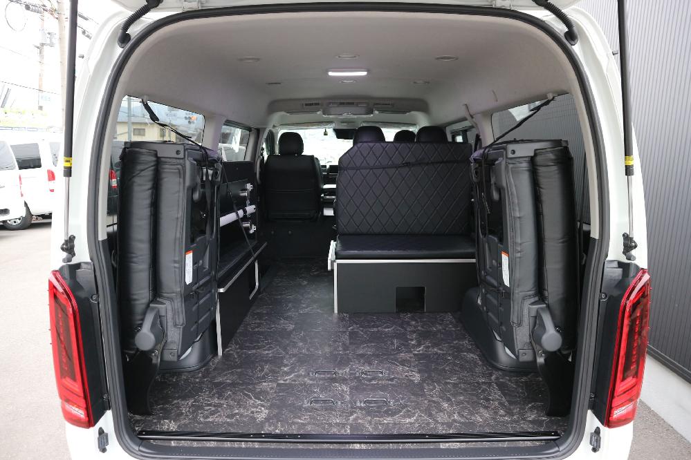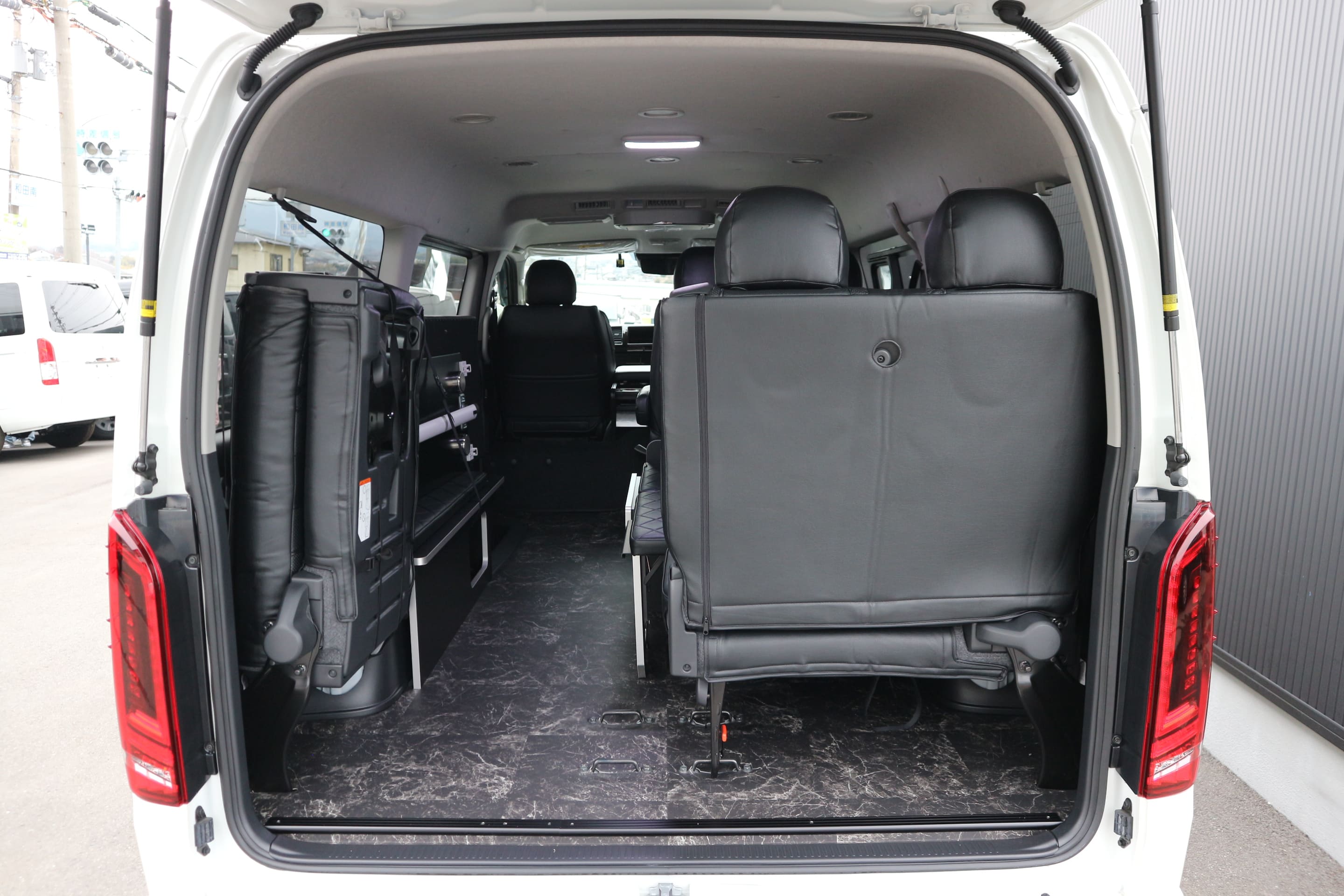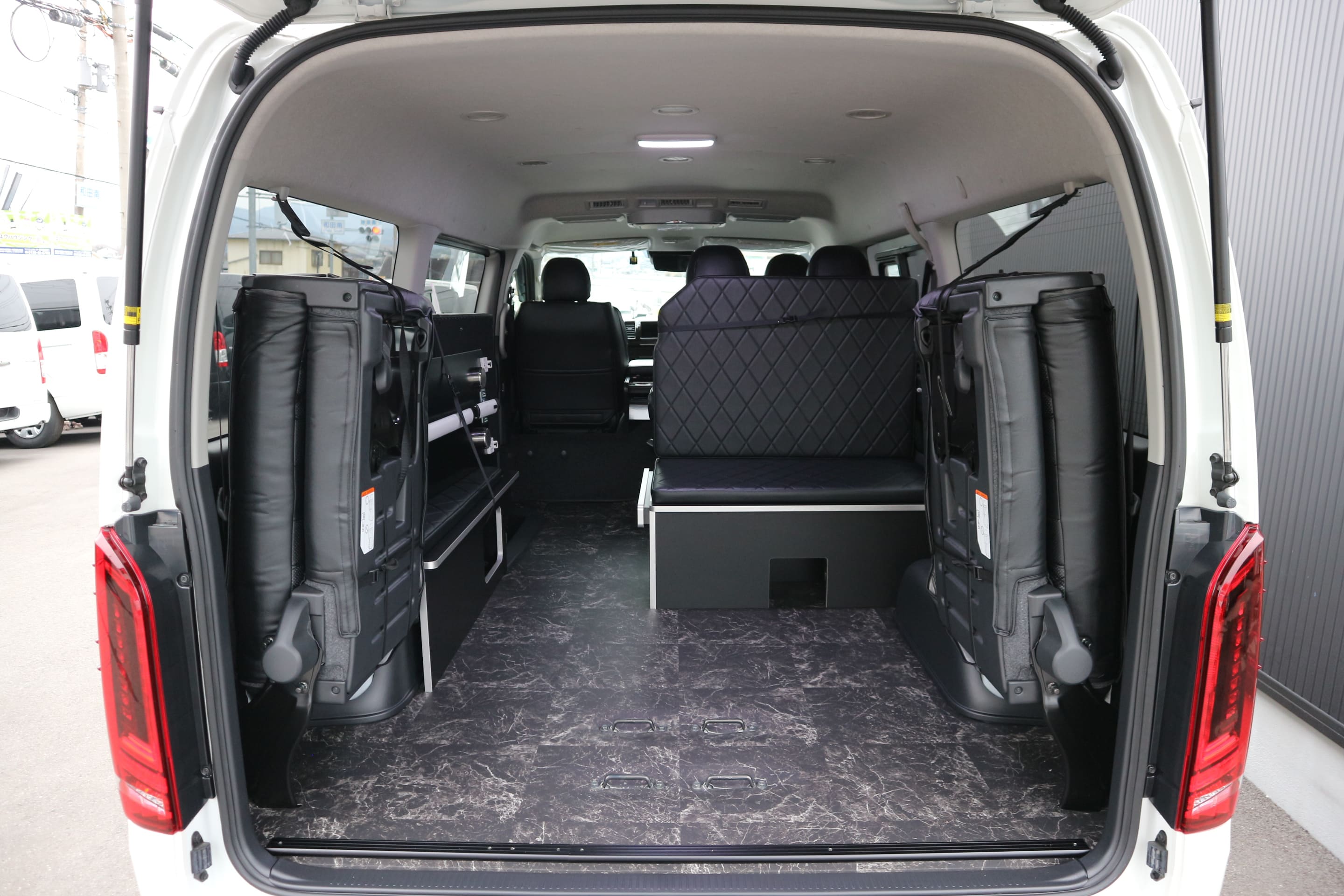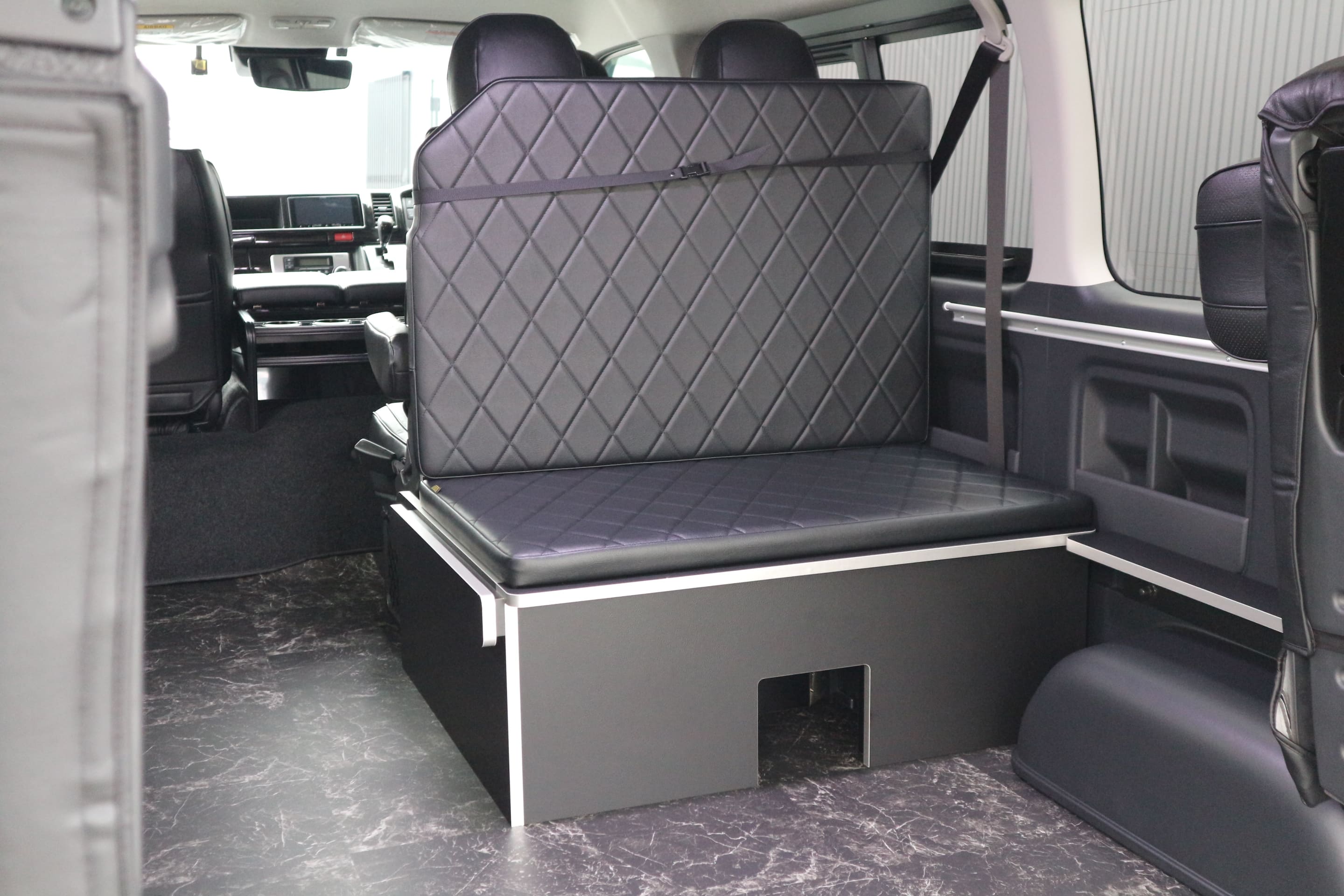 HOME > ギャラリー:IF-WB8 : ハイエースワゴンGL前向き8名後ろ向き2名10人乗り対面ラウンジベット家具 > IF-WB8 200系ハイエースワゴンGL ワイドボディー 前向き8名後ろ向き2名10人乗り対面ラウンジベッド家具施工
