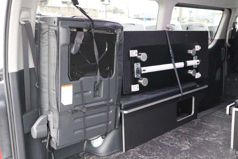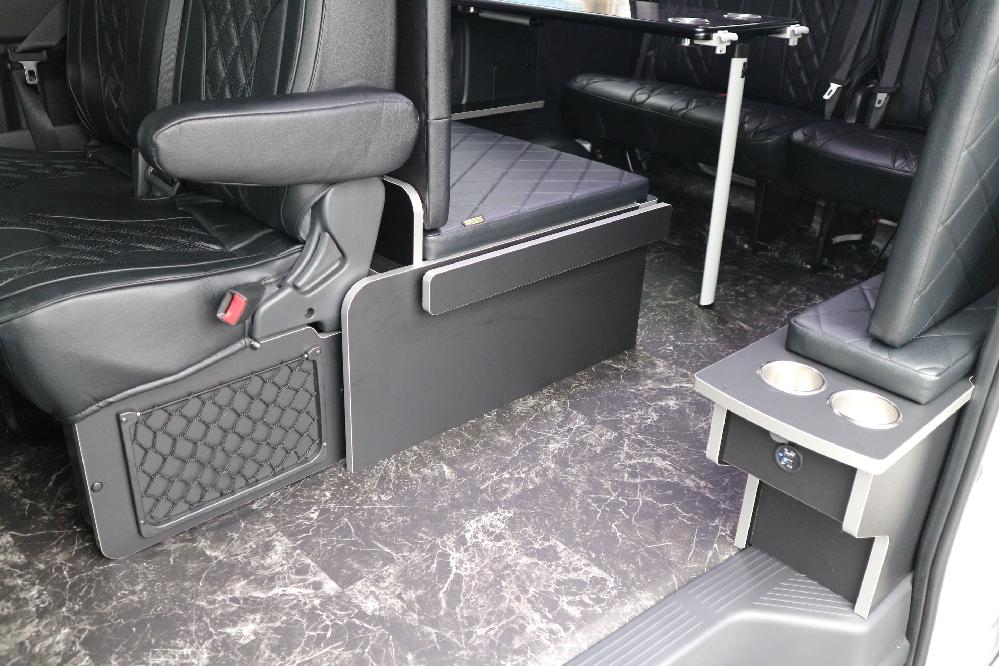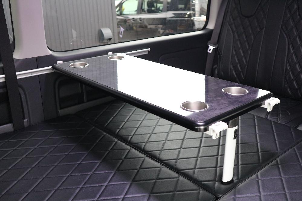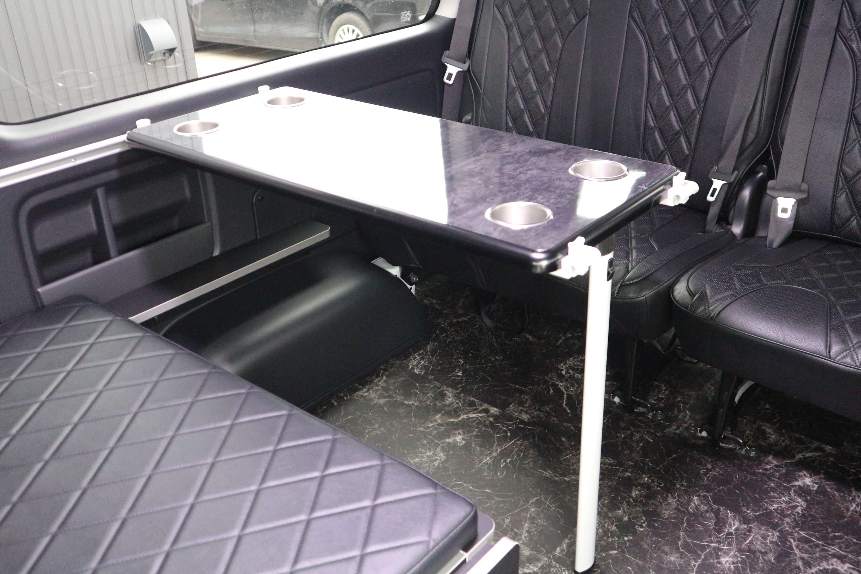 オプションサイドレールテーブル(ロングレッグ) 対面ラウンジ展開 2列目ワゴンGL純正2名シート 3列目ワゴンGL純正シート取り外し IF-WB8後ろ向き2名専用ベット家具