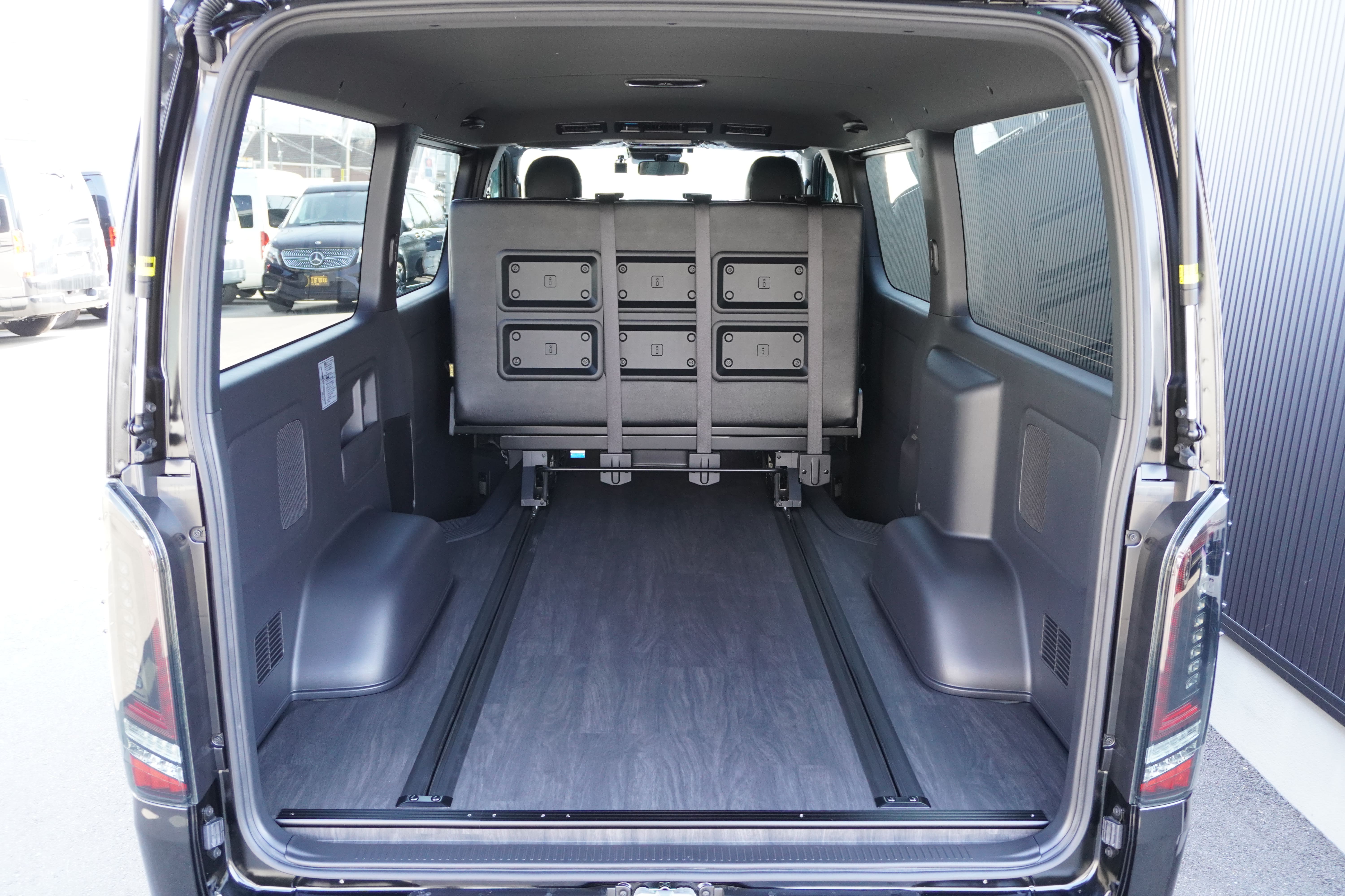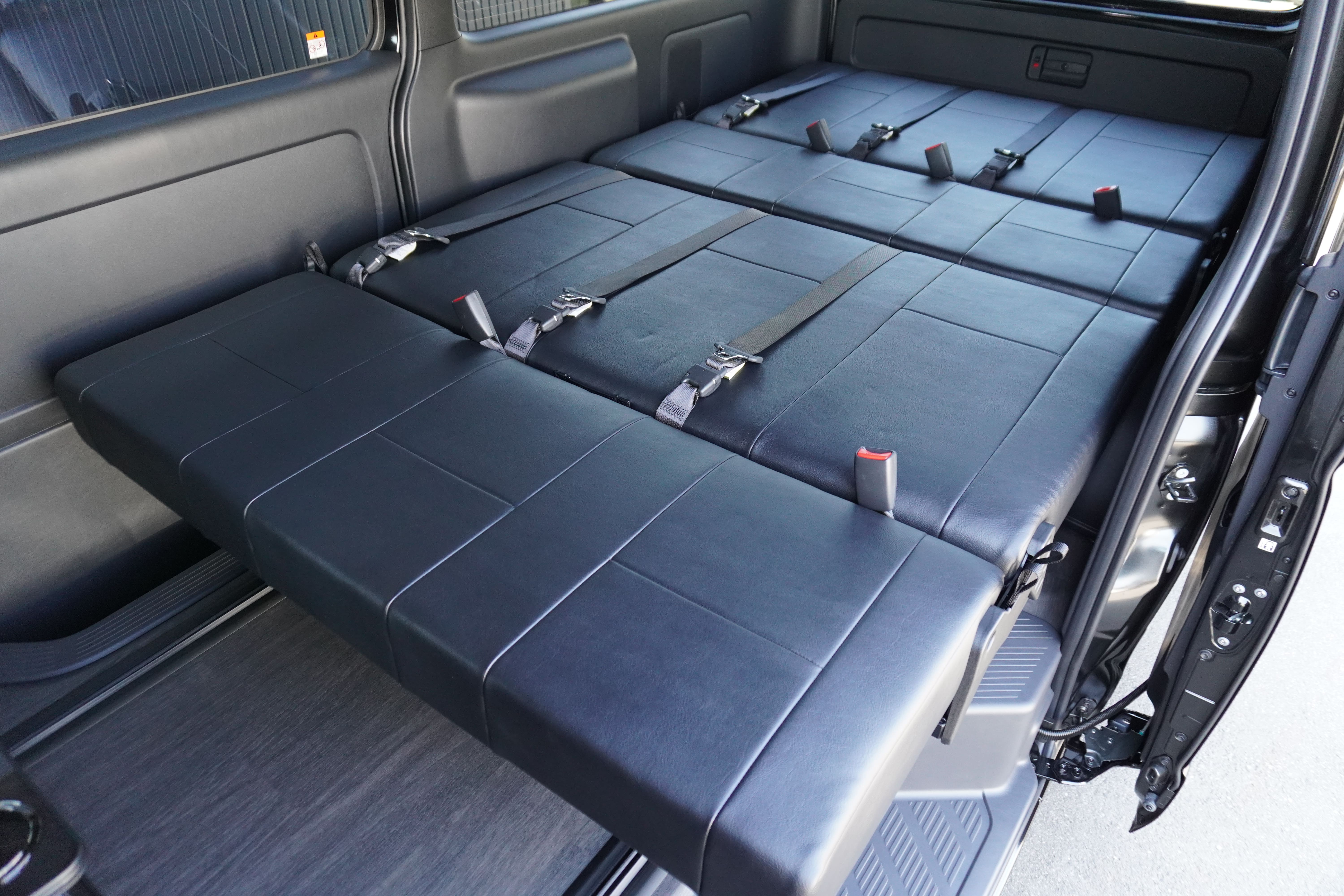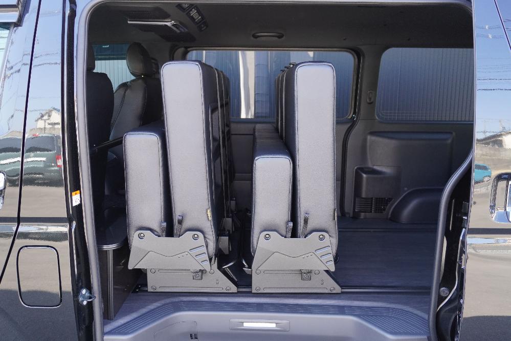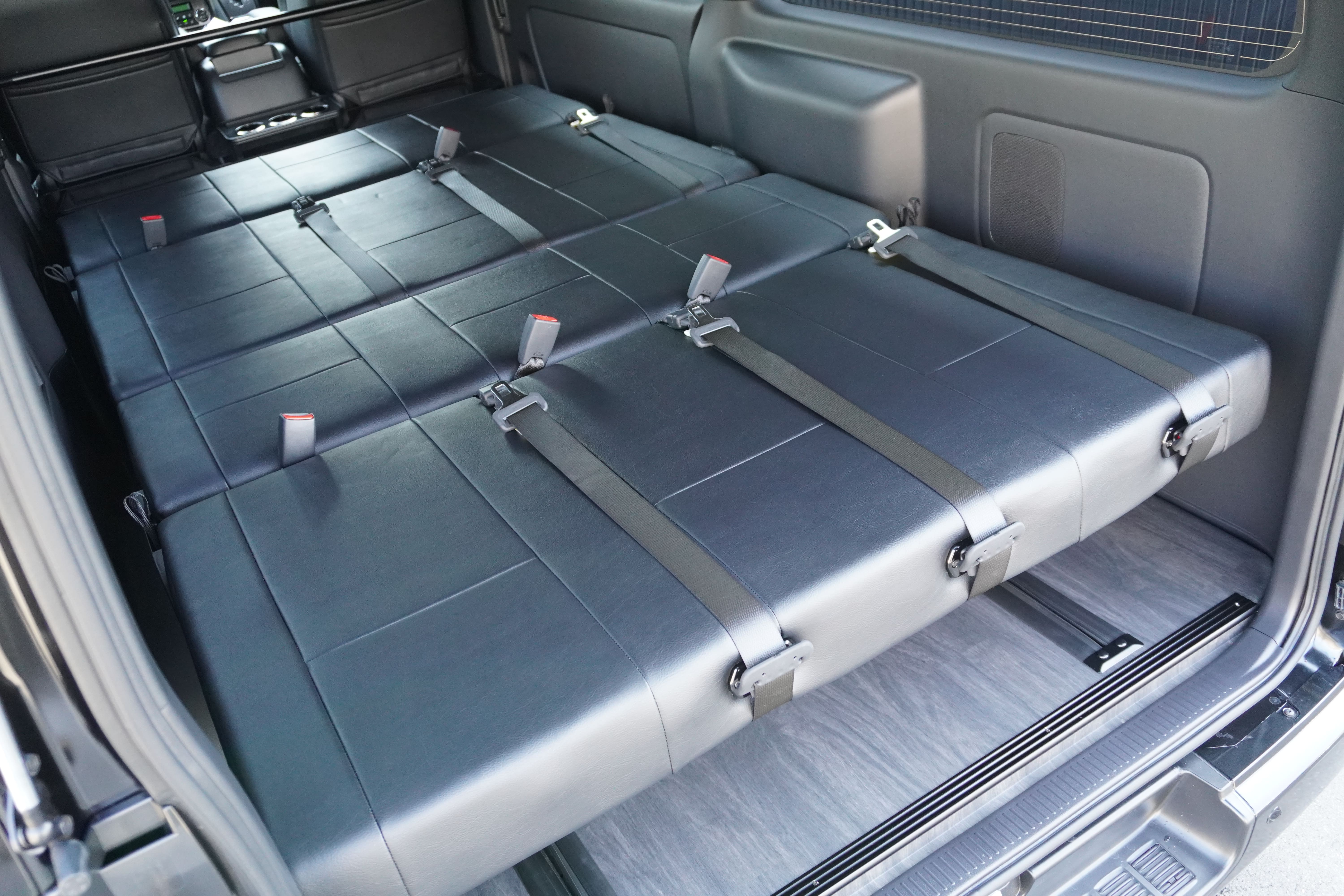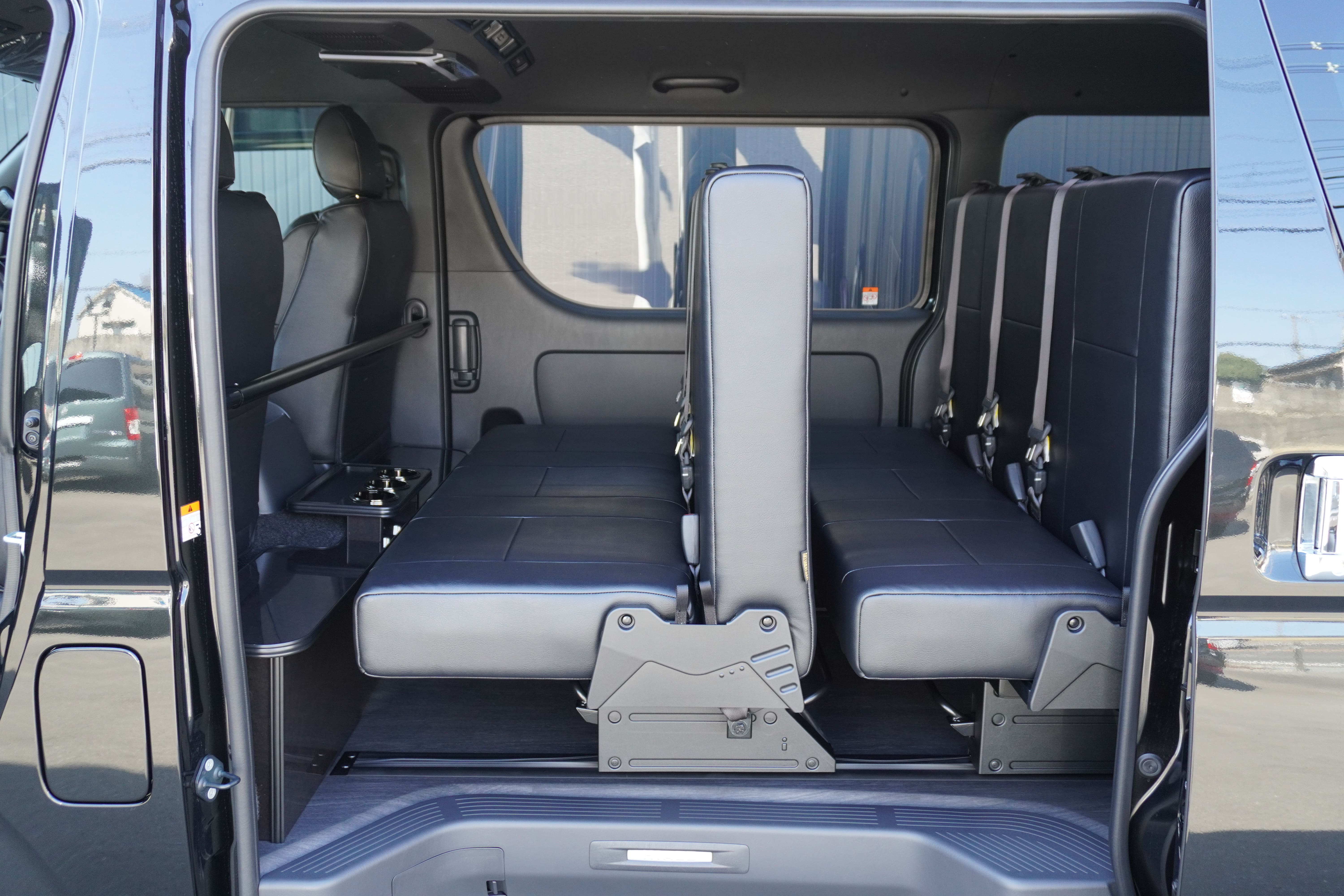 HOME > ギャラリー:IF-VR8/IF-SW8: REVOシート2脚1・4ナンバーのまま8人乗りor3・5ナンバー乗用車登録8人乗り > IF-VR8 200系ハイエースバンS-GLダークプライムU ナローボディー T-REVOシート2脚8人乗り施工
