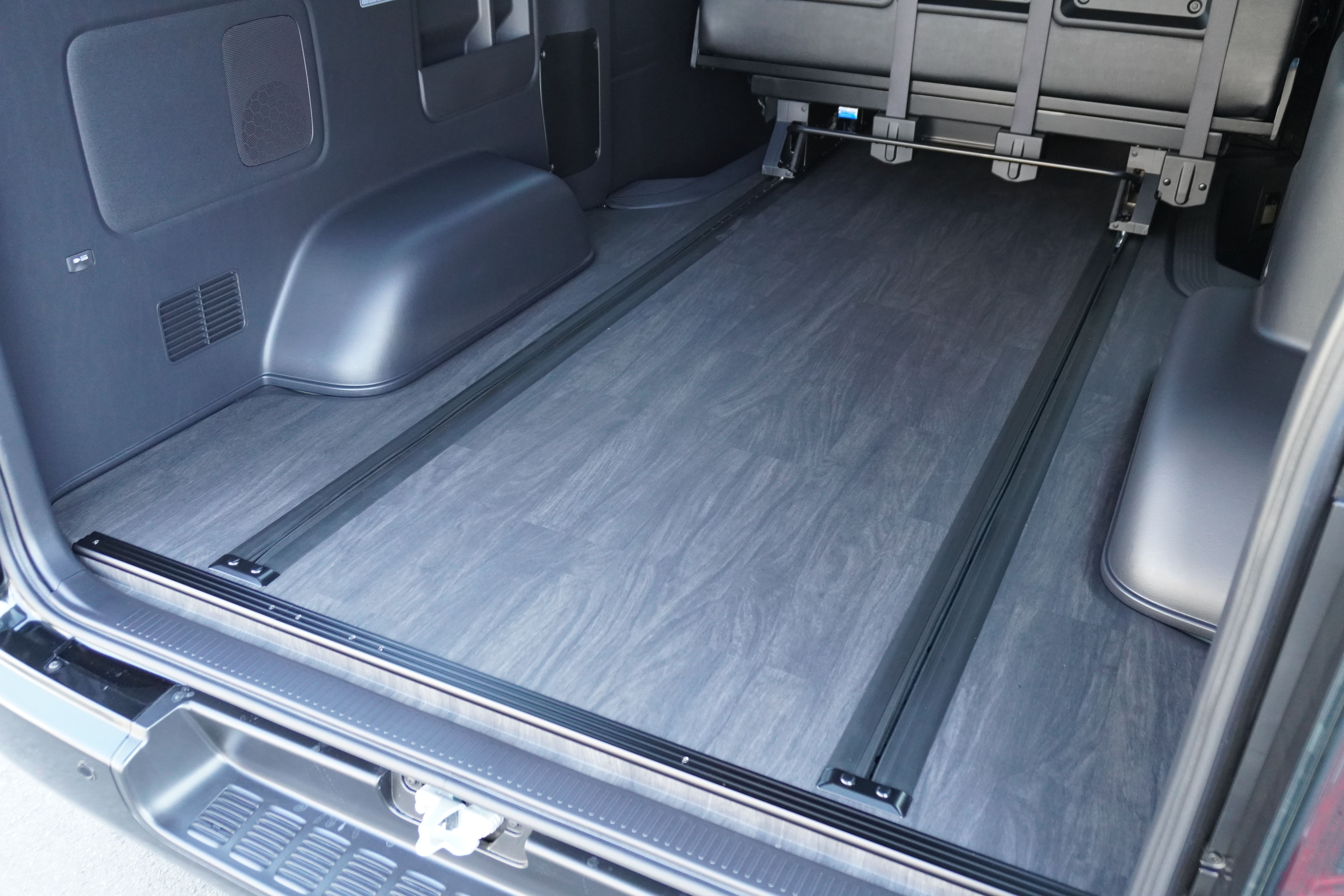 フロアフローリング施工(SDR9166カリンクロ) ロングスライドレール スペアタイヤ取り出しできます フロアビス打ち無し