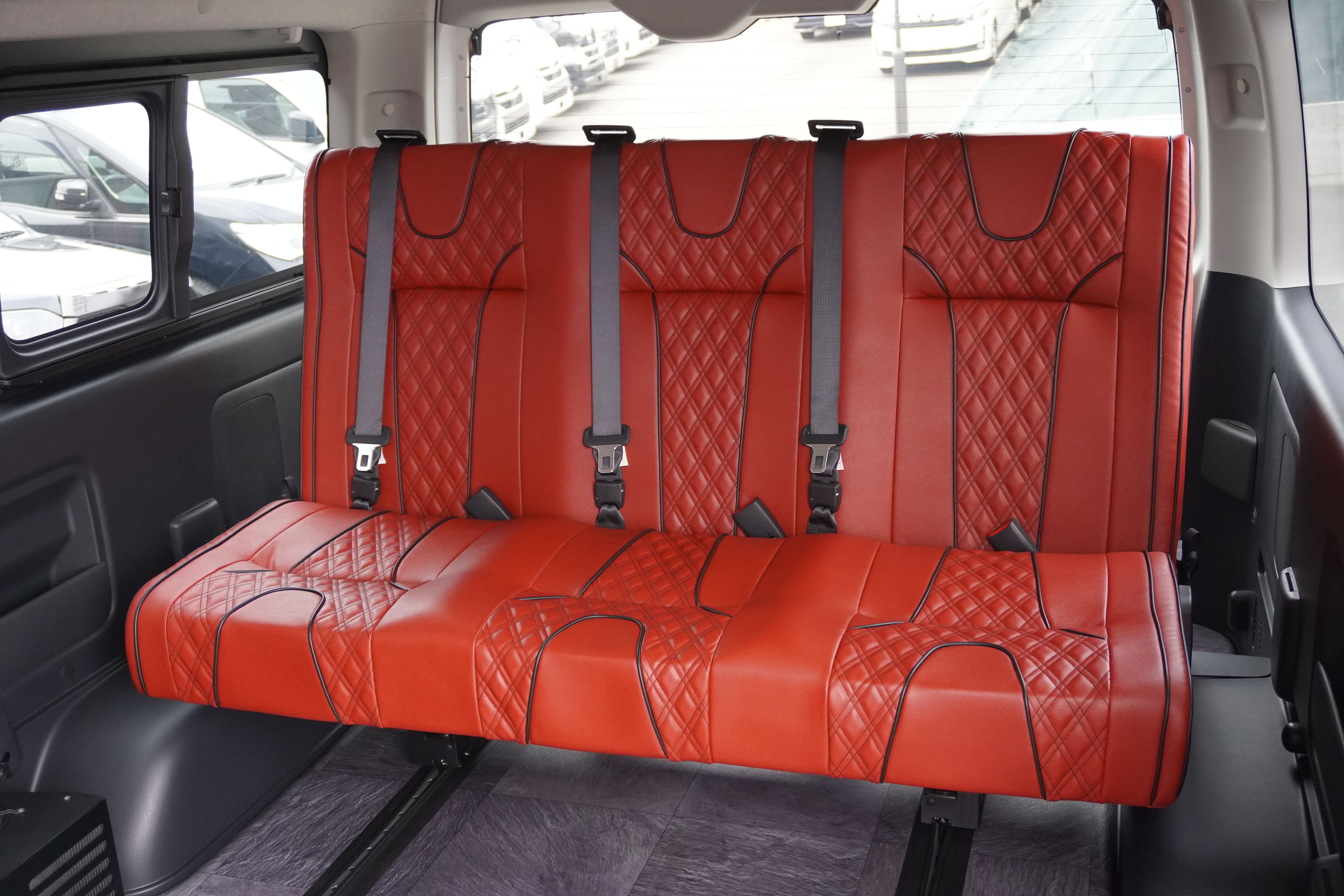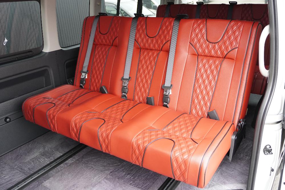 3列目T−REVO1400mm成形シート 全席3点式シートベルト シート生地 はりのあるかため シートデザイン IFUUシートカバーデザイン(ボルドーレザー)