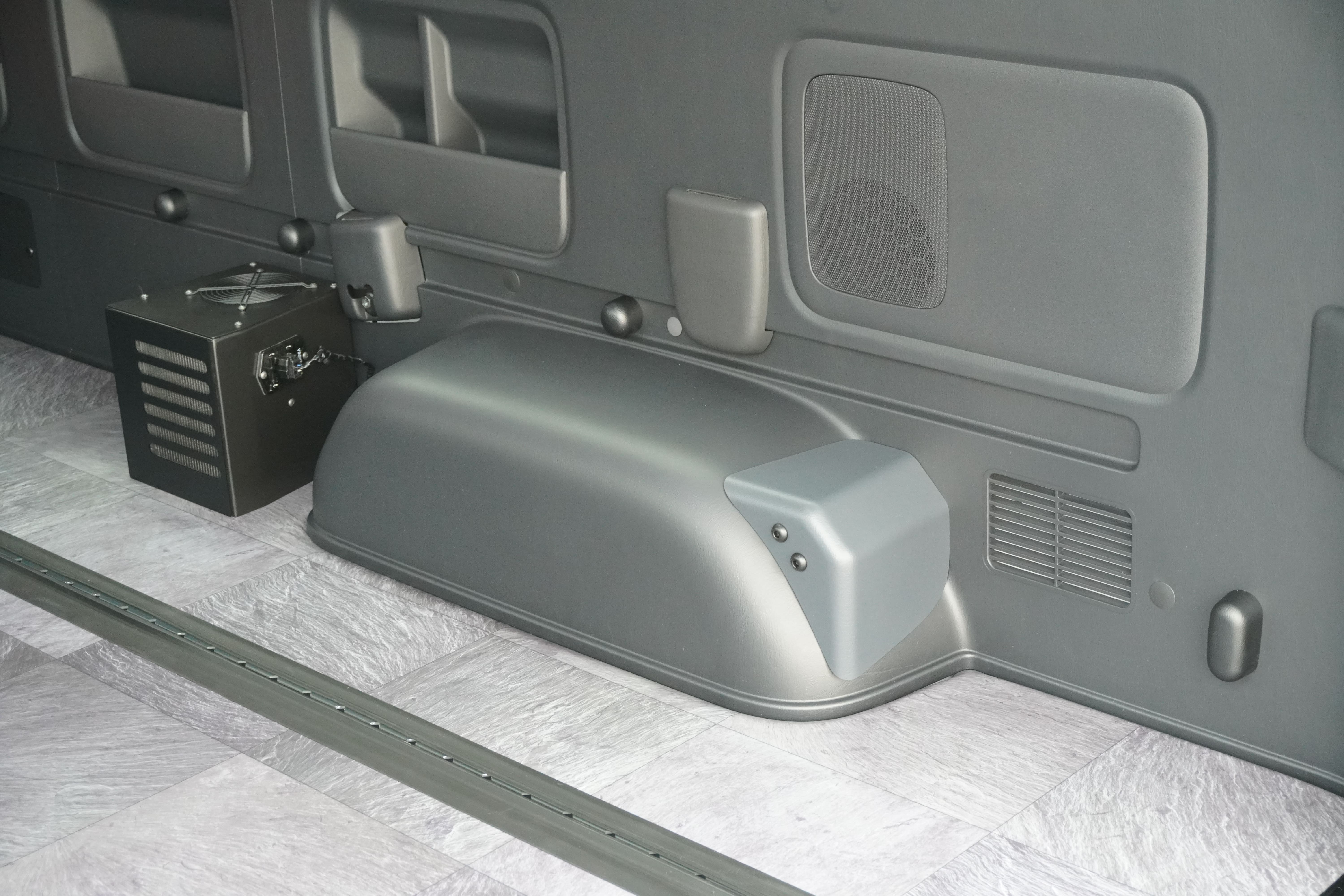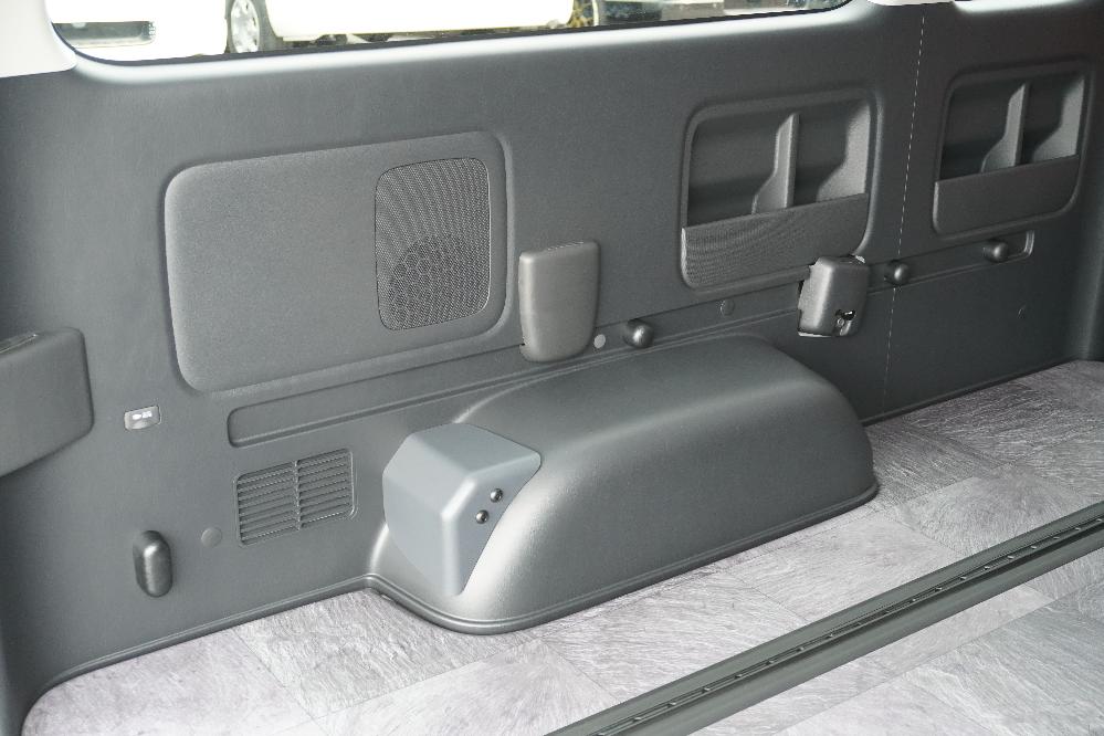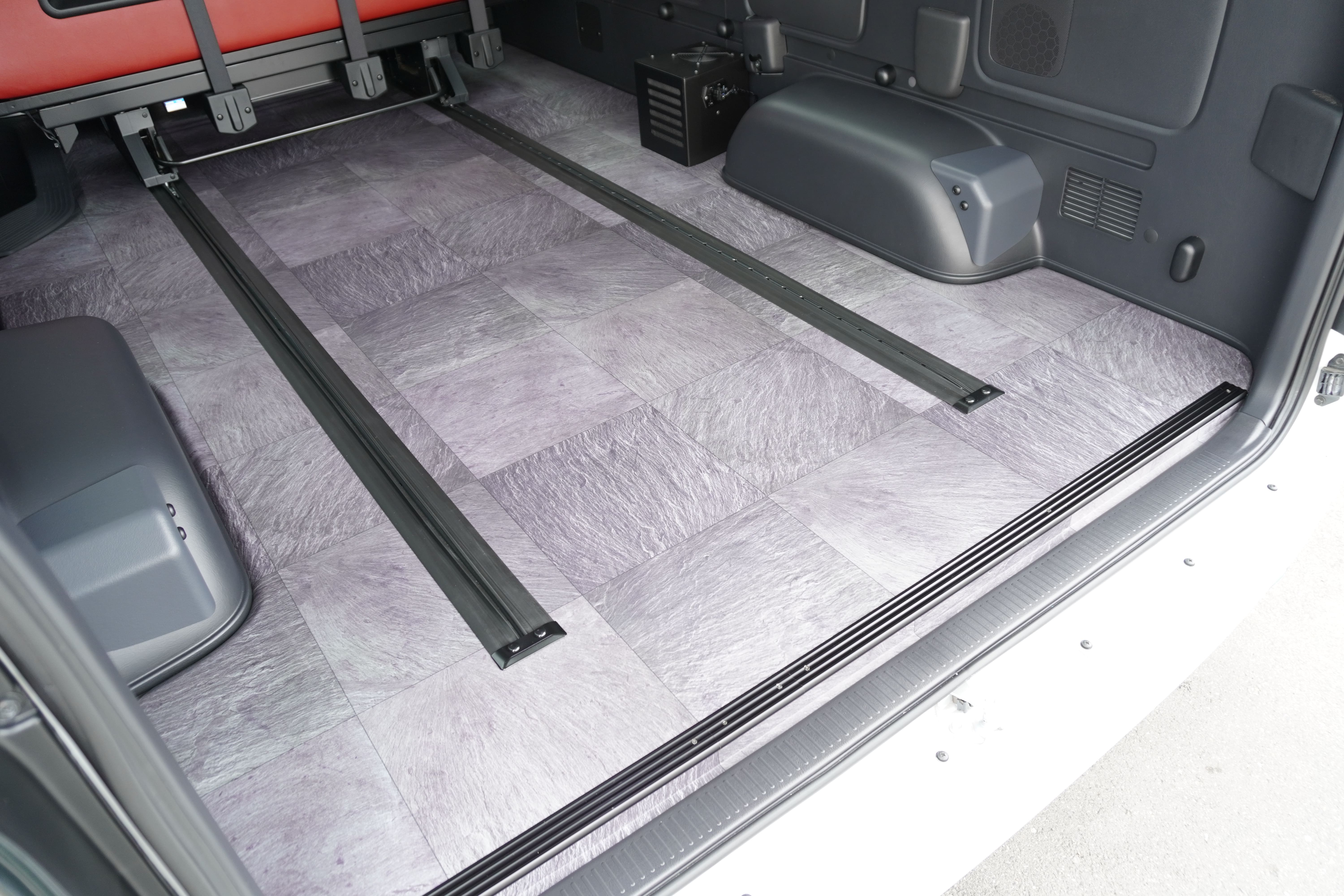 フロアフローリング施工(品番SDR9164玄昌石) ロングスライドレール スペアタイヤ取り出しできます フロアビス打ち無し