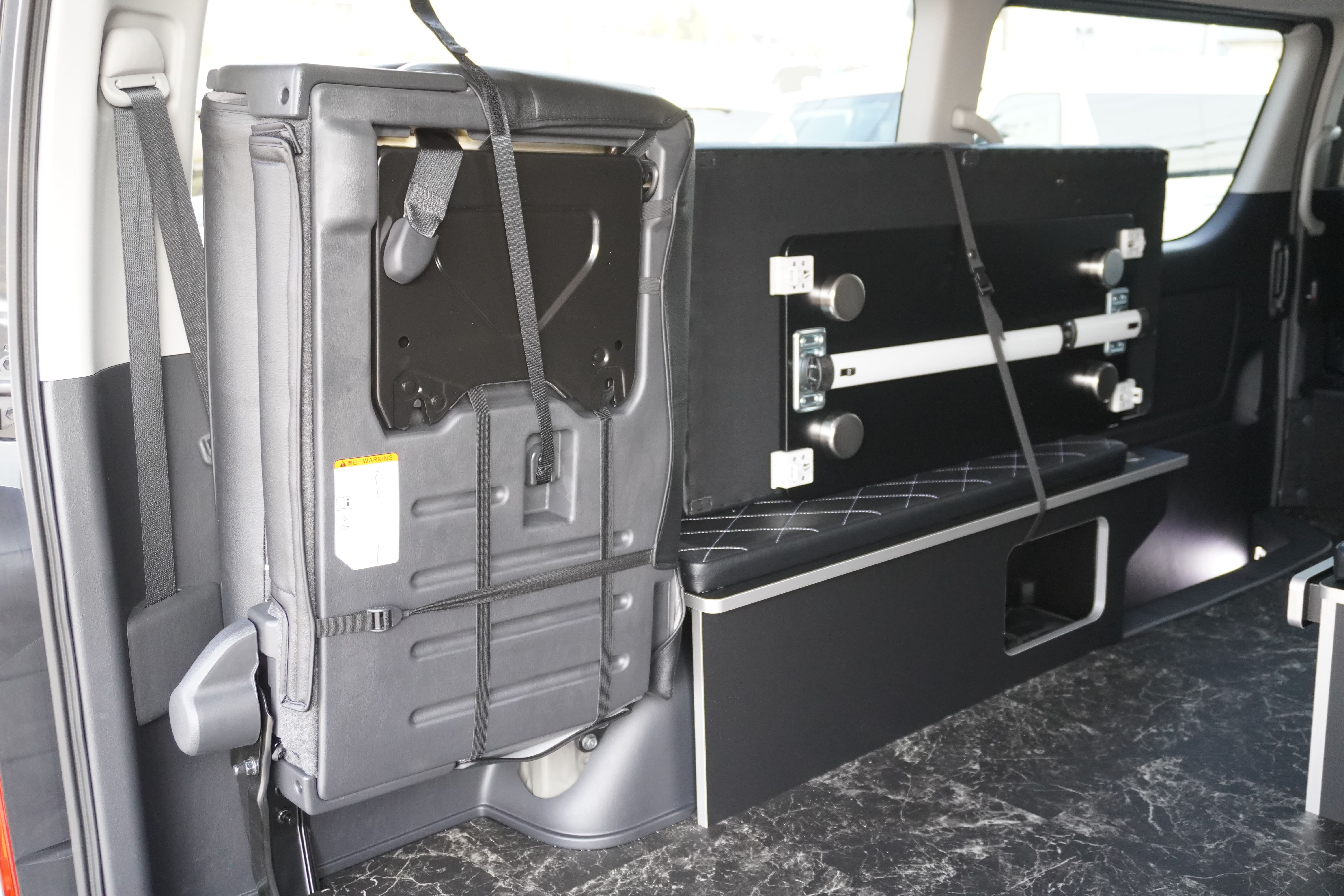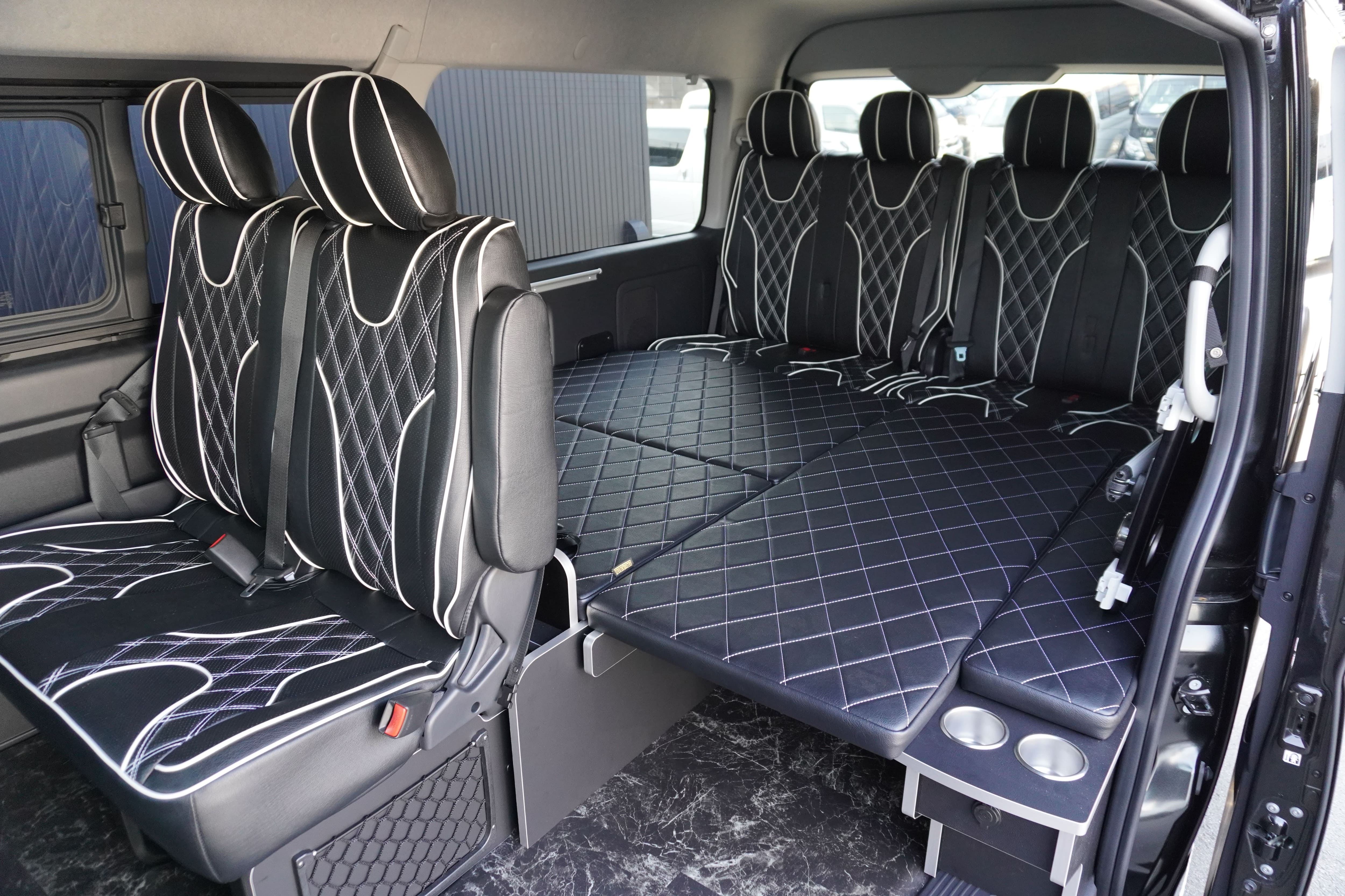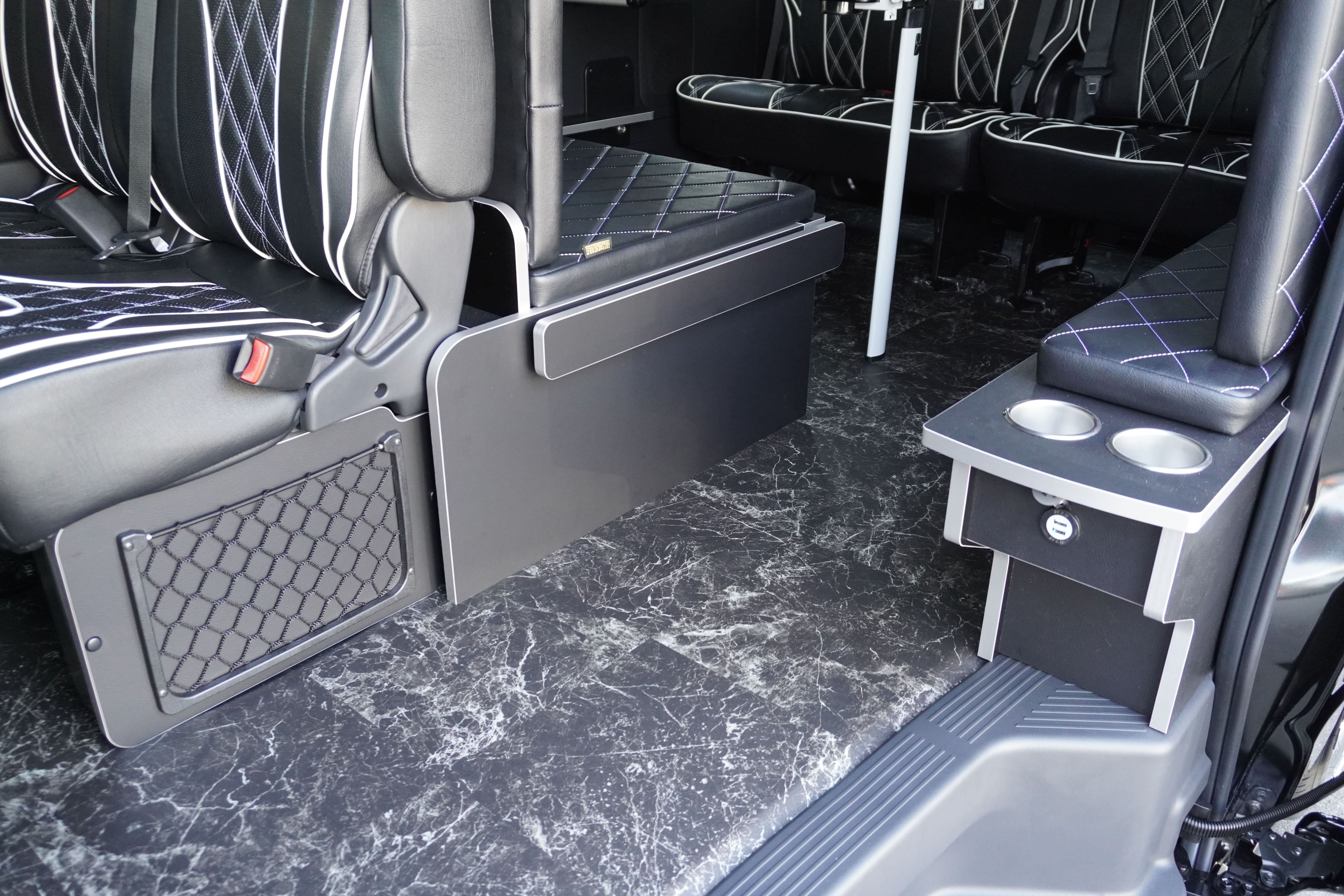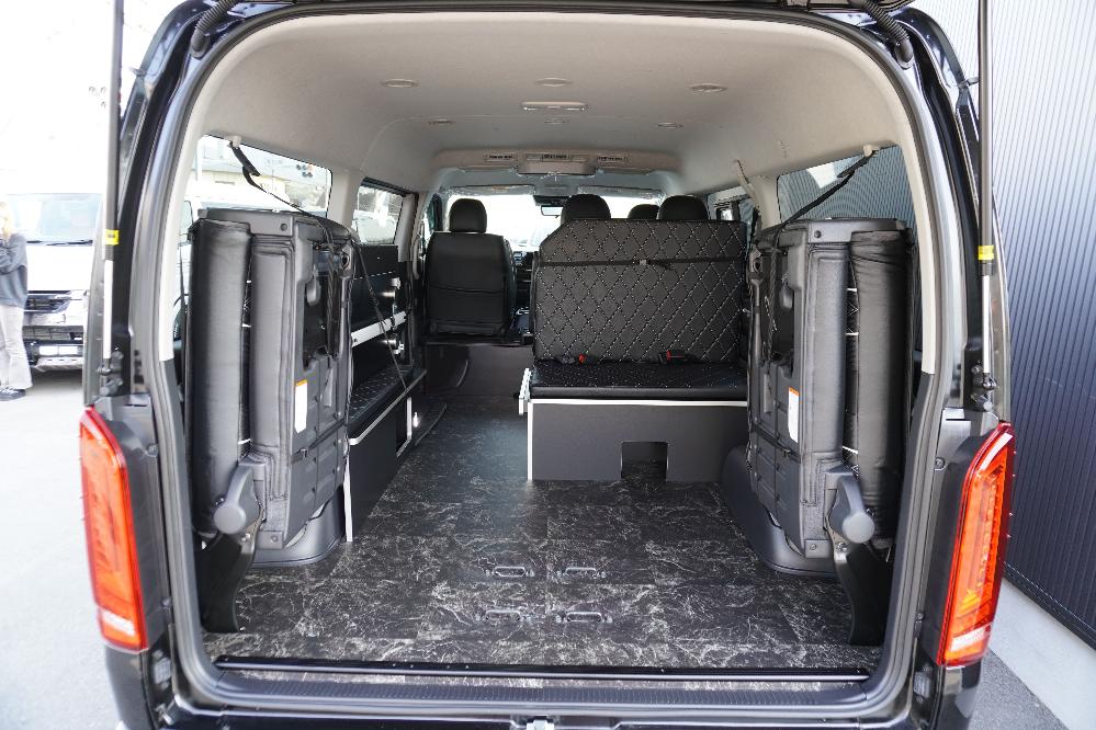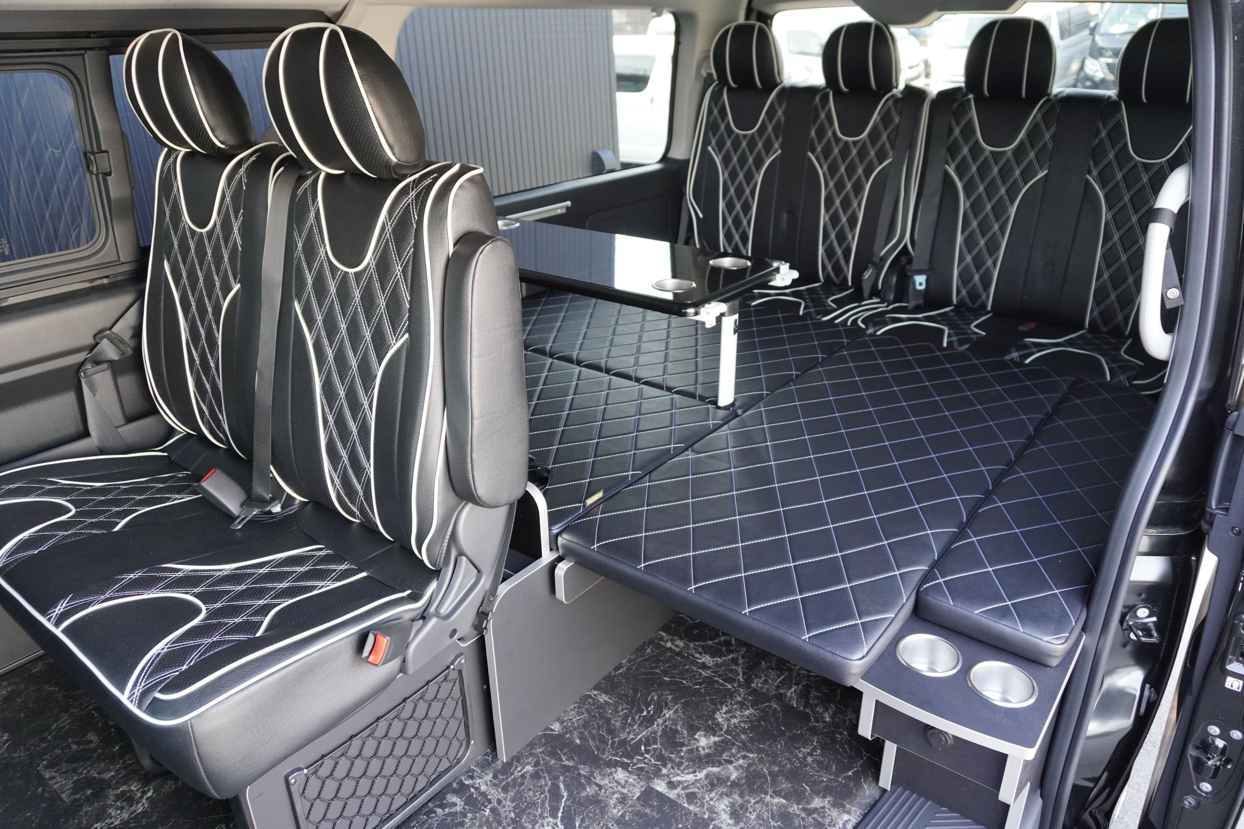 HOME > ギャラリー:IF-WB8 : ハイエースワゴンGL前向き8名後ろ向き2名10人乗り対面ラウンジベット家具 > IF-WB8 200系ハイエースワゴンGL ワイドボディー 前向き8名後ろ向き2名10人乗り対面ラウンジベッド家具施工