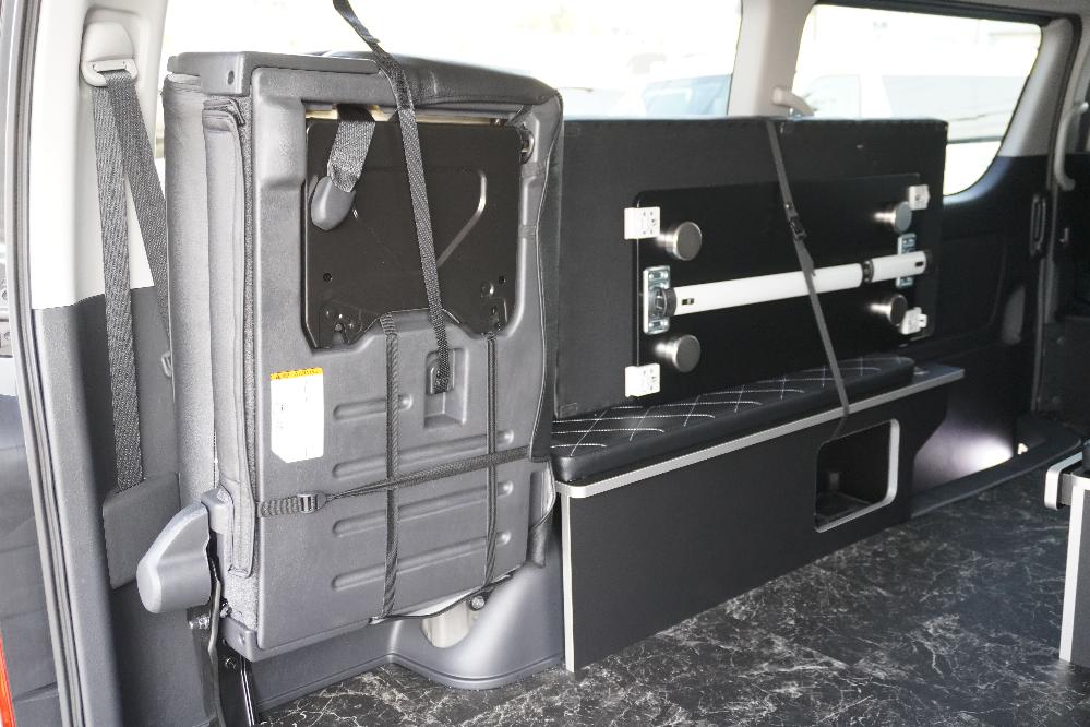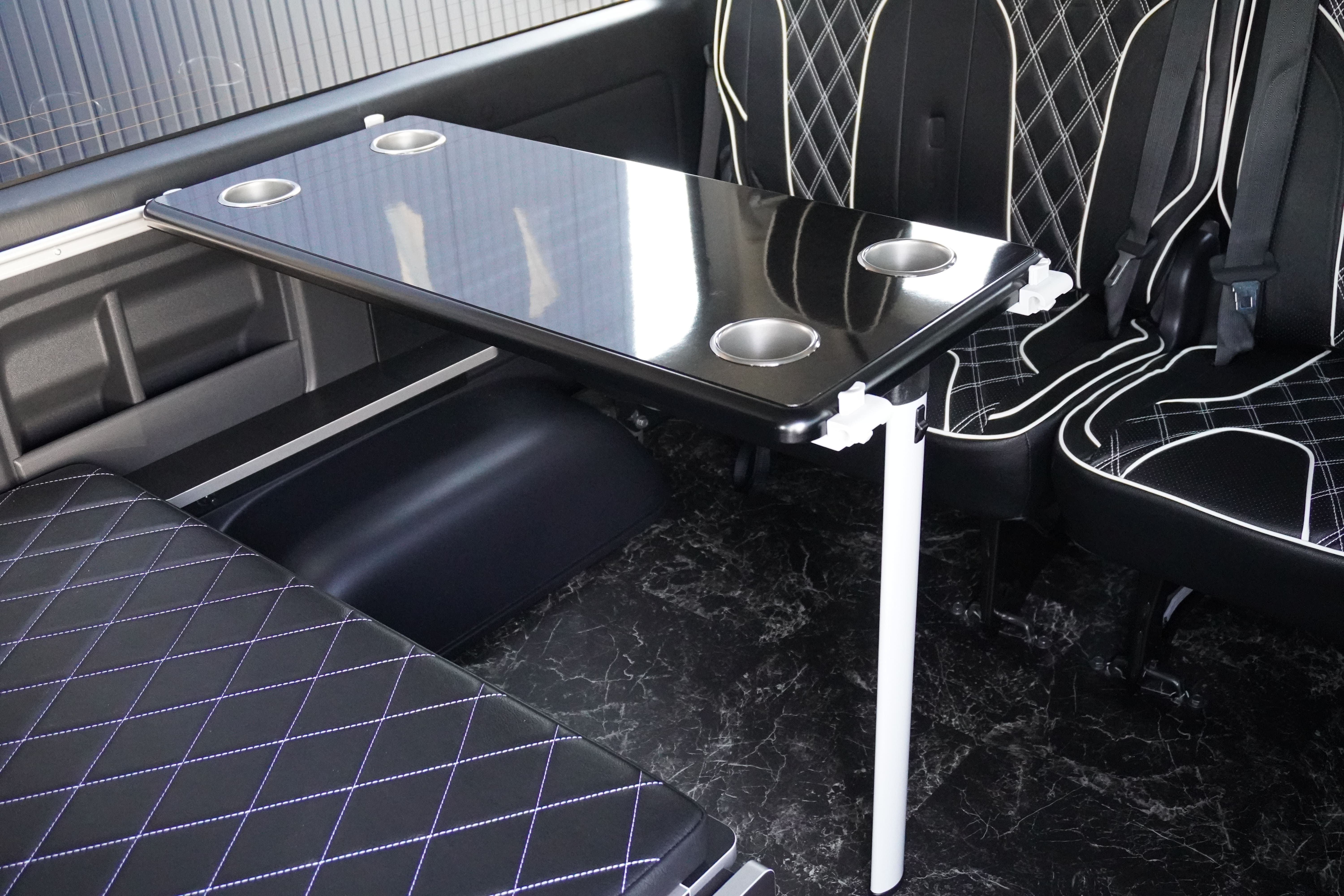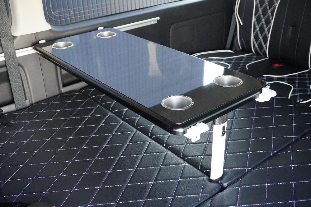 オプションサイドレールテーブル(ロングレッグ) 対面ラウンジ展開 2列目ワゴンGL純正2名シート 3列目ワゴンGL純正シート取り外し IF-WB8後ろ向き2名専用ベット家具