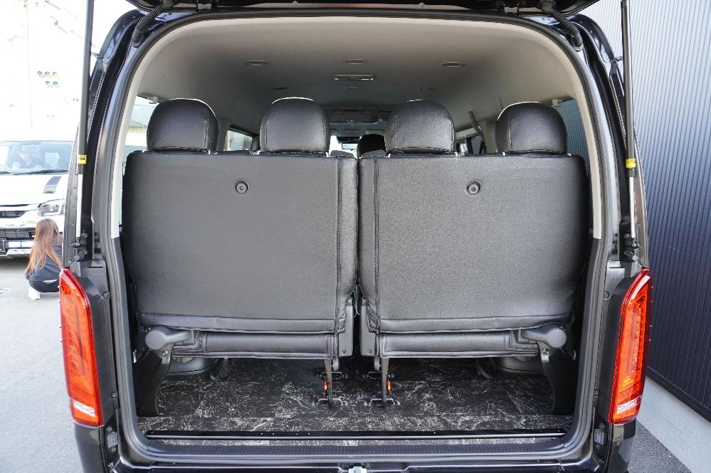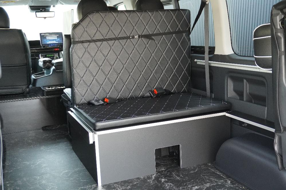 3列目後ろ向き2名シート展開 ベットマット背もたれ展開 後ろ向き専用シートベルト搭載