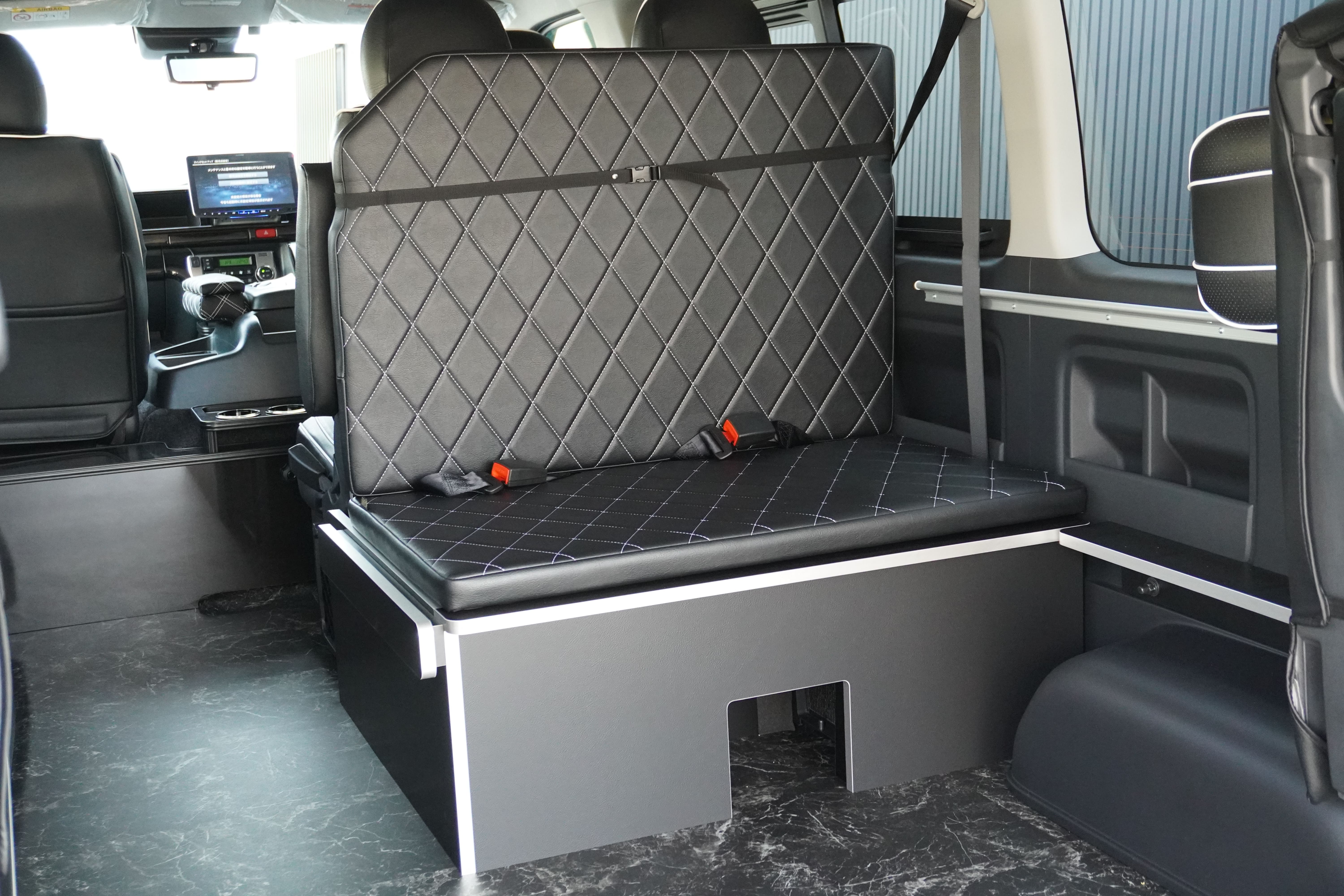 セパレートラウンジ展開 3列目後ろ向き2名シート展開 ベットマット背もたれ展開 後ろ向き専用シートベルト搭載