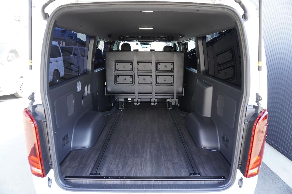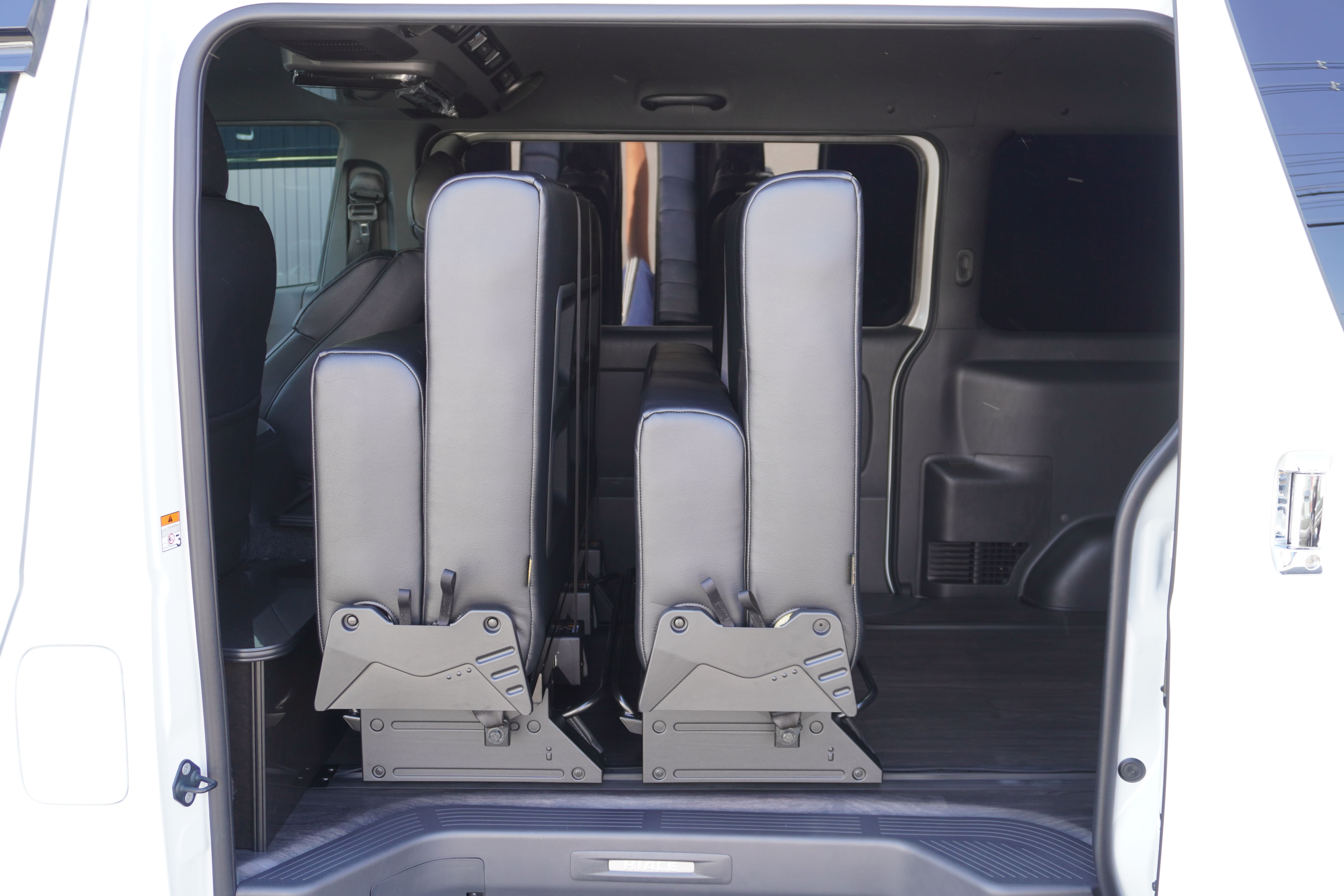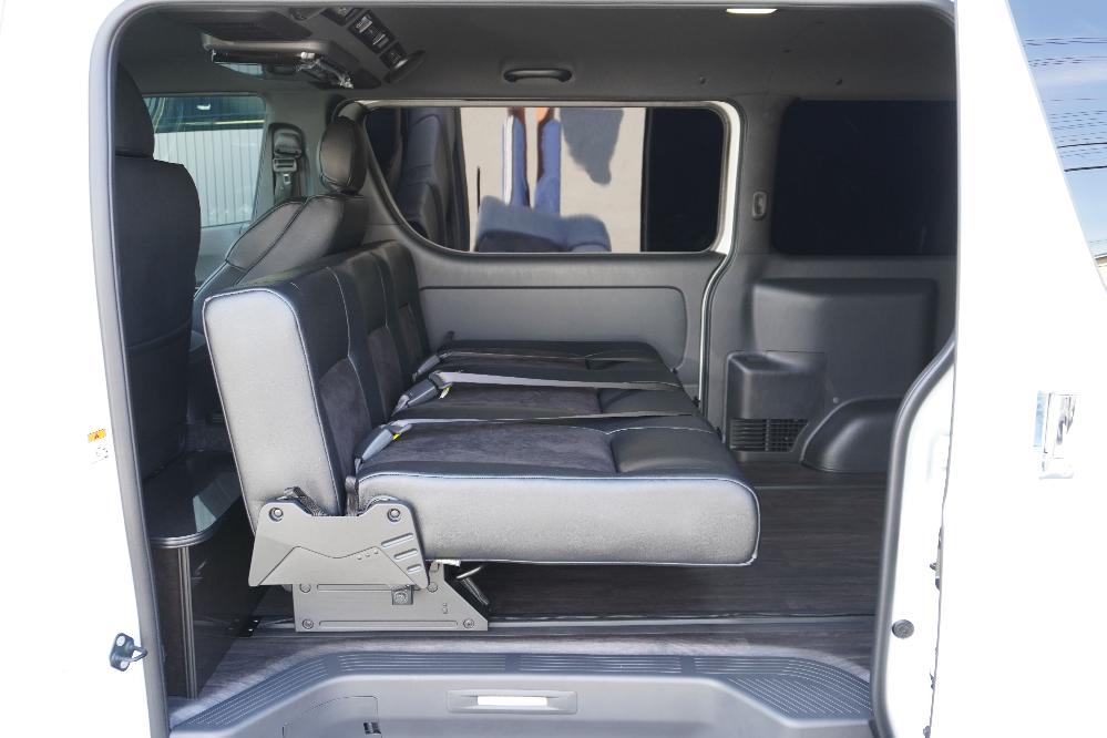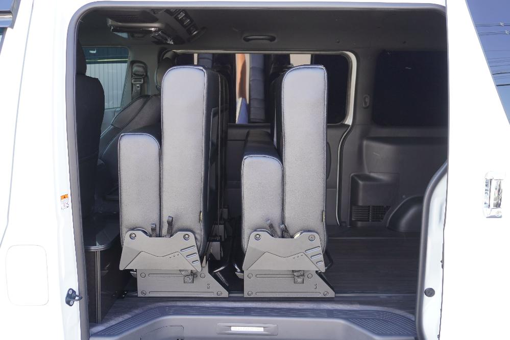HOME > ギャラリー:IF-VR8/IF-SW8: REVOシート2脚1・4ナンバーのまま8人乗りor3・5ナンバー乗用車登録8人乗り > IF-VR8 200系ハイエースバンS-GL ナローボディー T-REVOシート2脚8人乗り施工