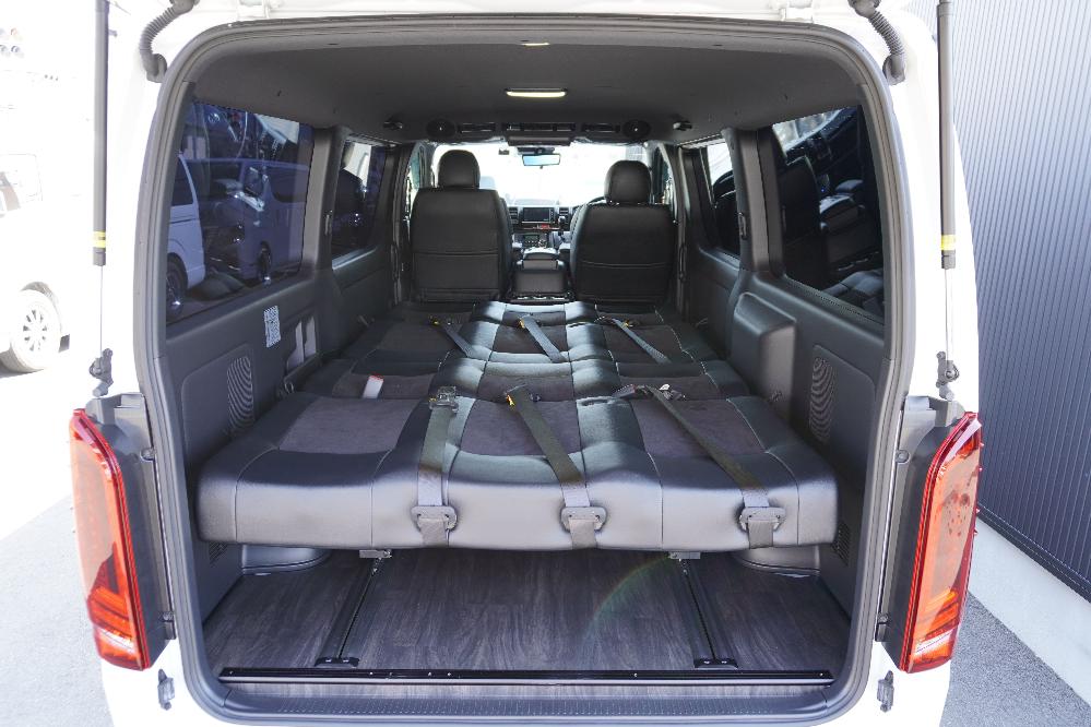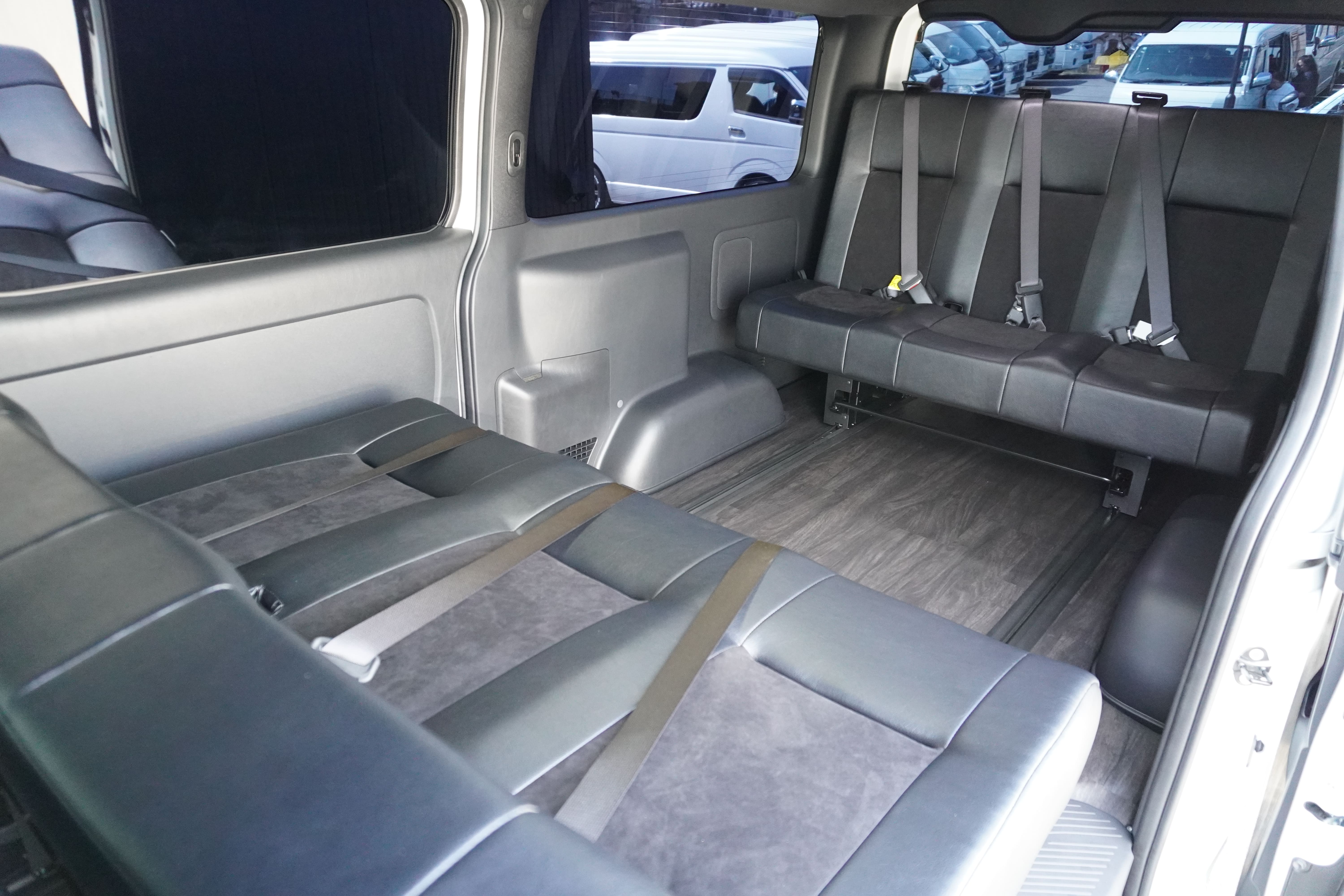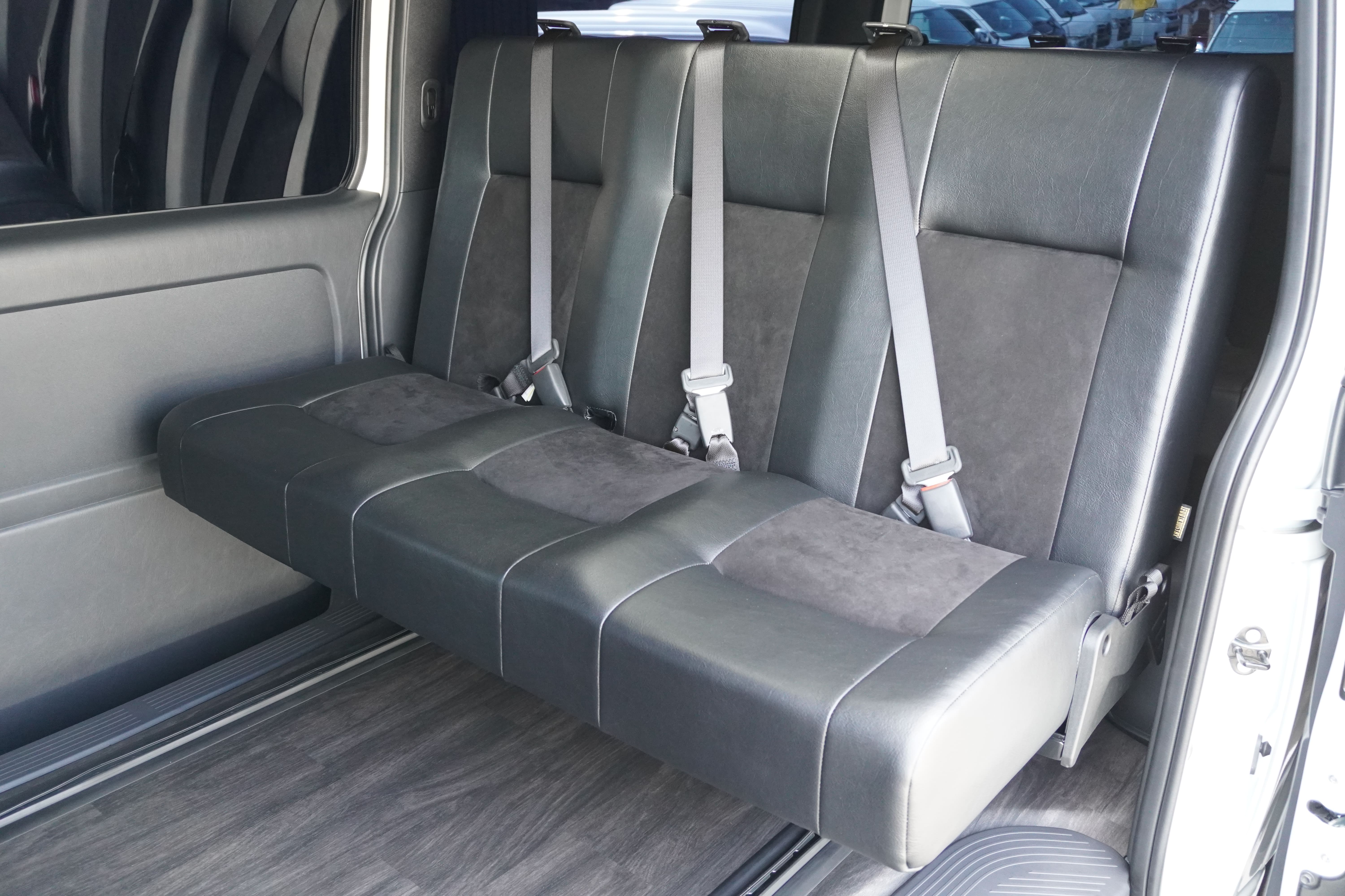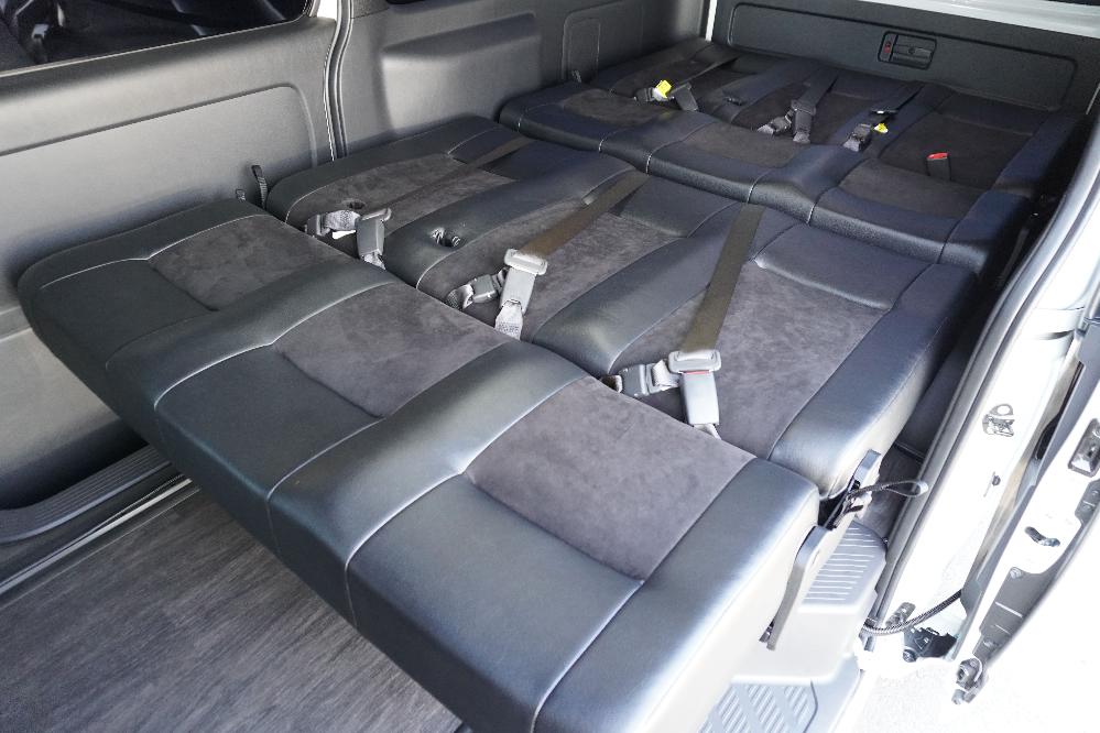 HOME > ギャラリー:IF-VR8/IF-SW8: REVOシート2脚1・4ナンバーのまま8人乗りor3・5ナンバー乗用車登録8人乗り > IF-VR8 200系ハイエースバンS-GL ナローボディー T-REVOシート2脚8人乗り施工