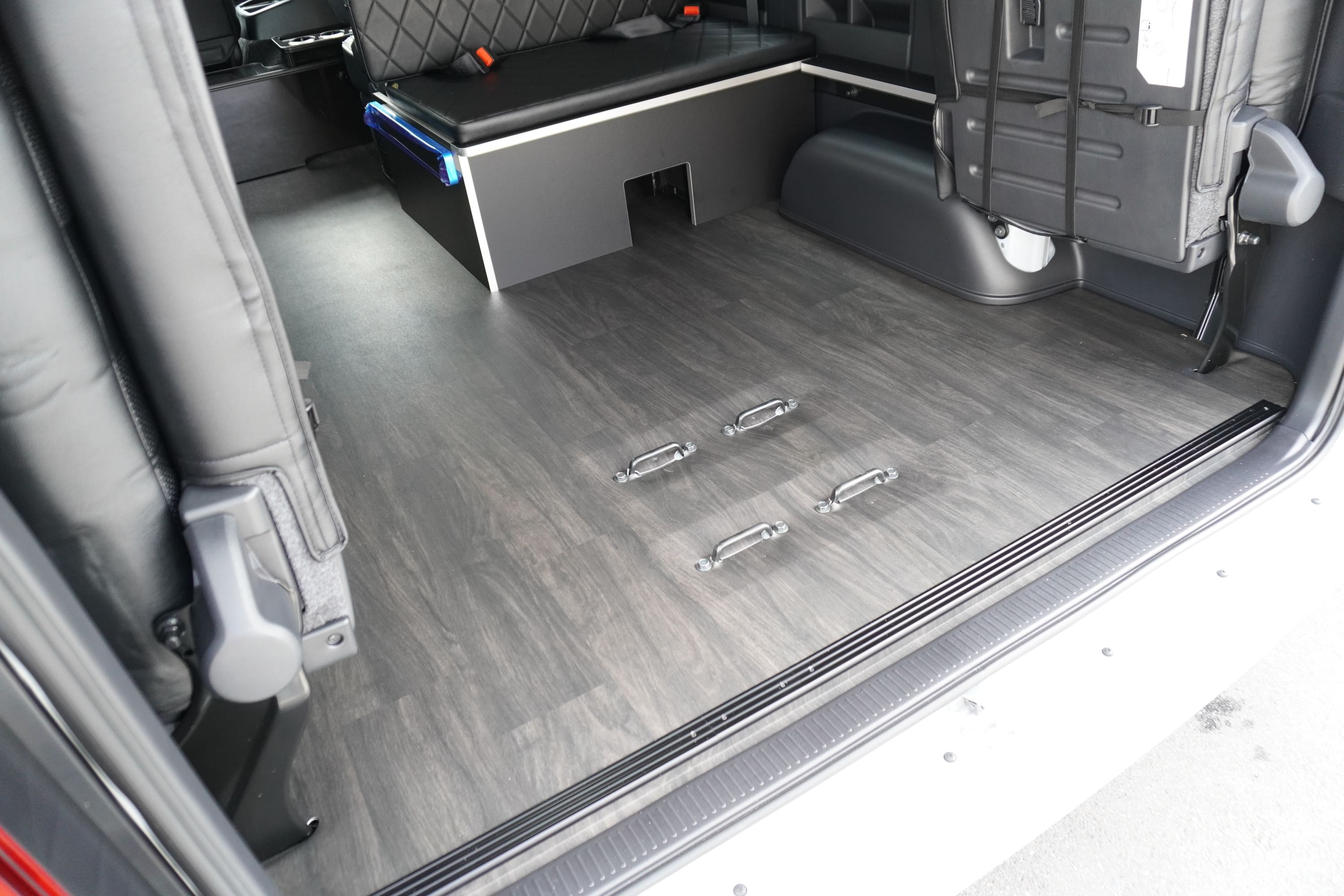 フロアフローリング施工(SDR9166カリンクロ) スペアタイヤ取り出し出来ます。 フロアビス打ち無しスペアタイヤ取り出し出来ます。 フロアビス打ち無し