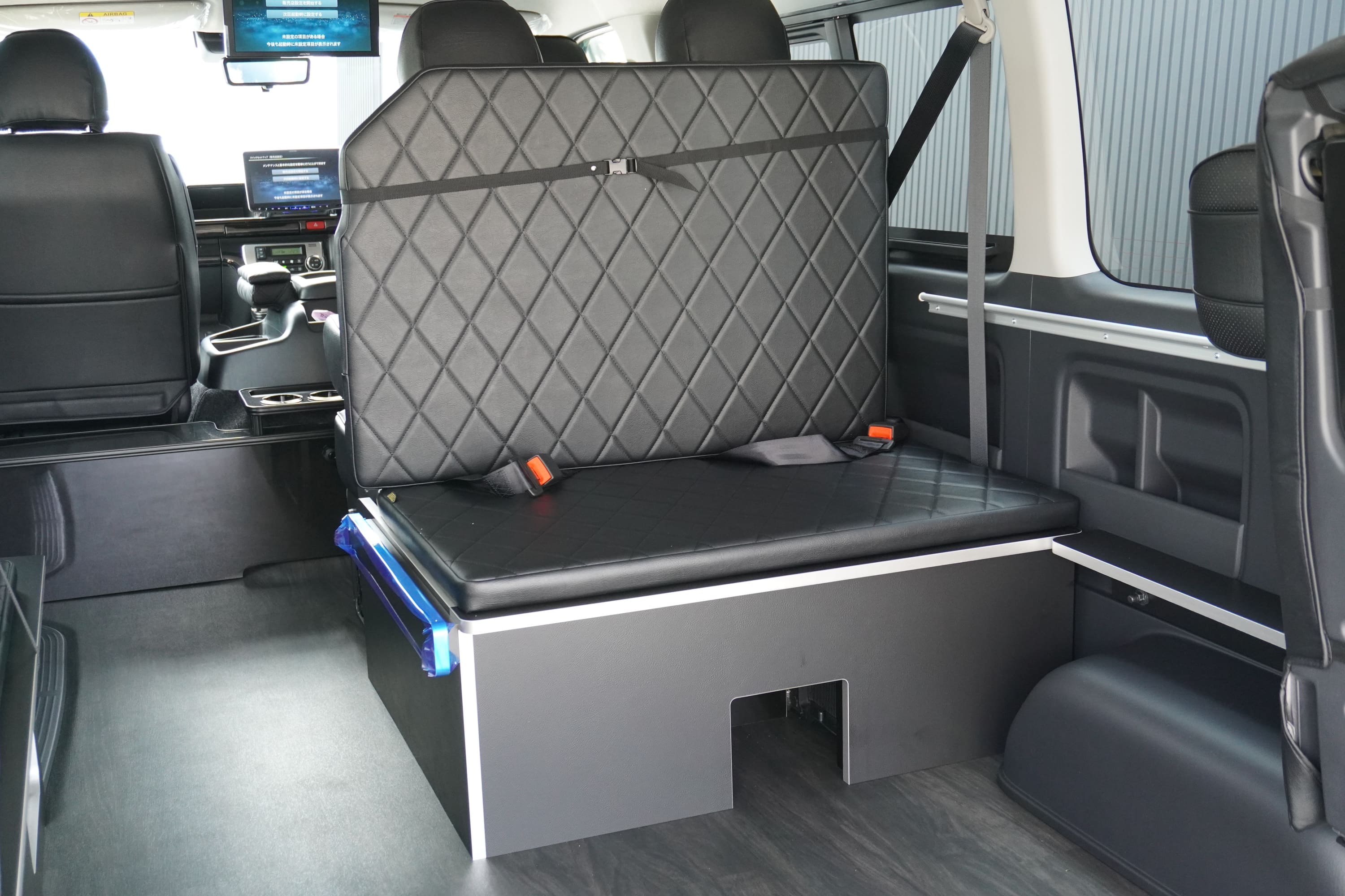 セパレートラウンジ展開 3列目後ろ向き2名シート展開 ベットマット背もたれ展開 後ろ向き専用シートベルト搭載