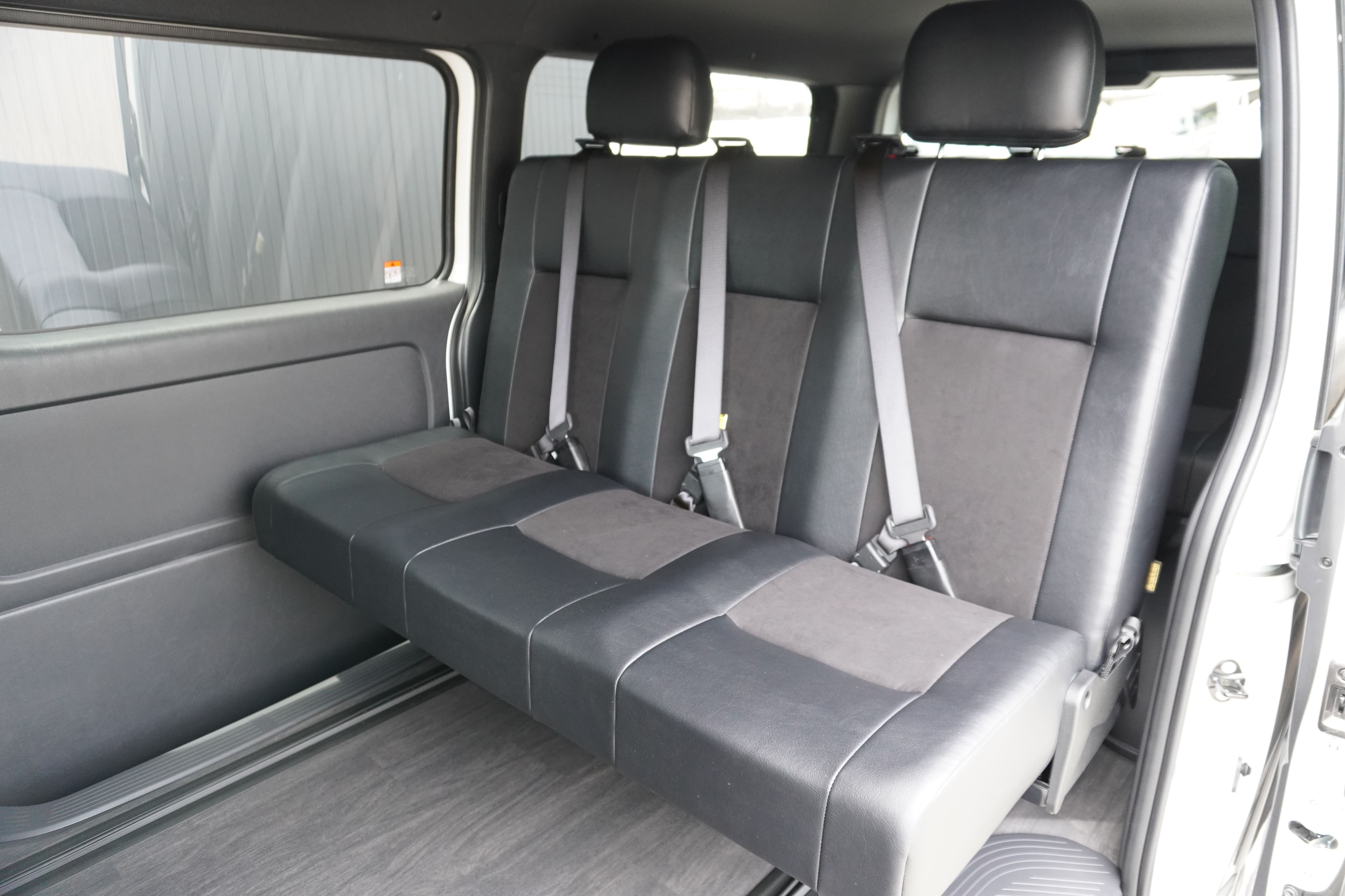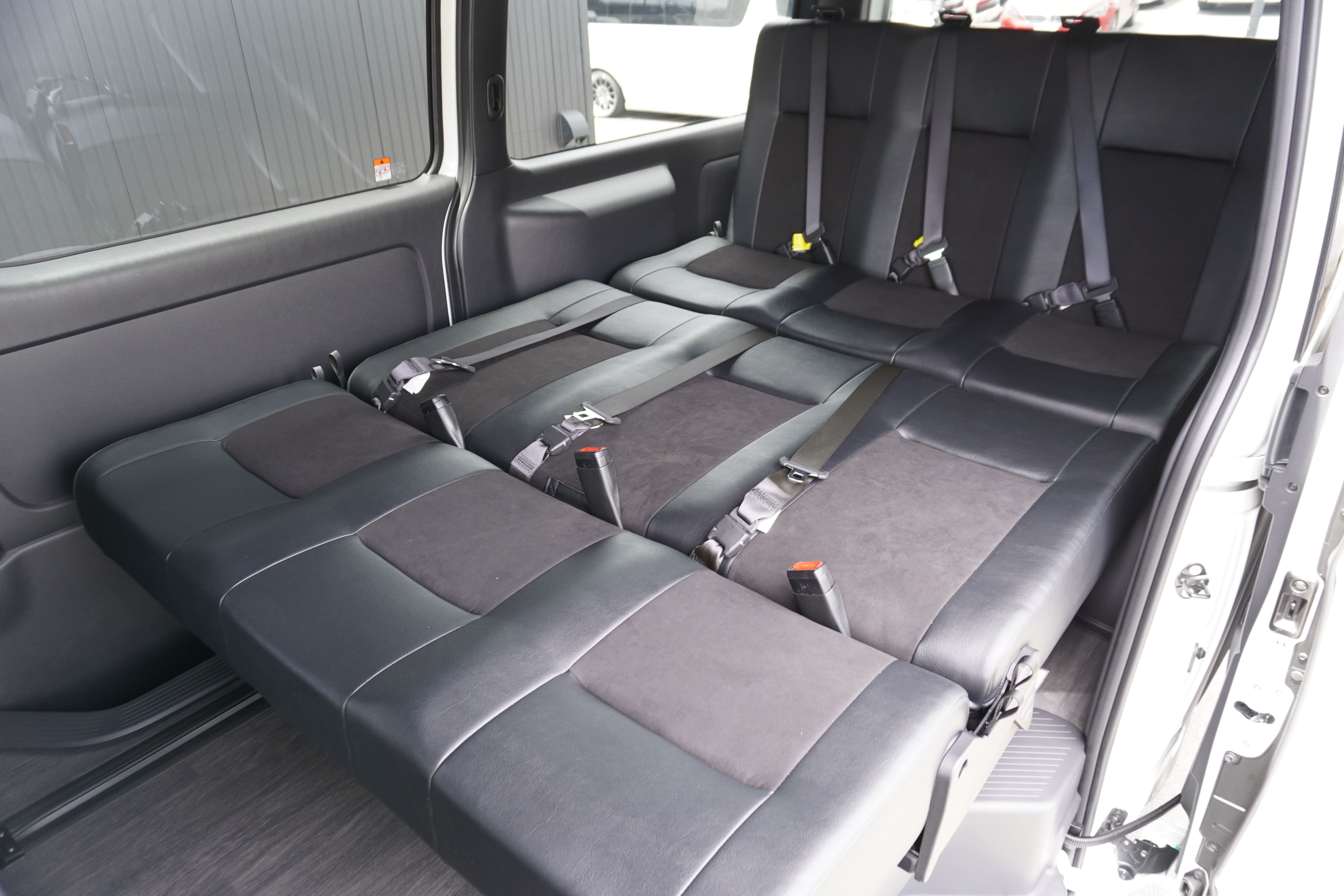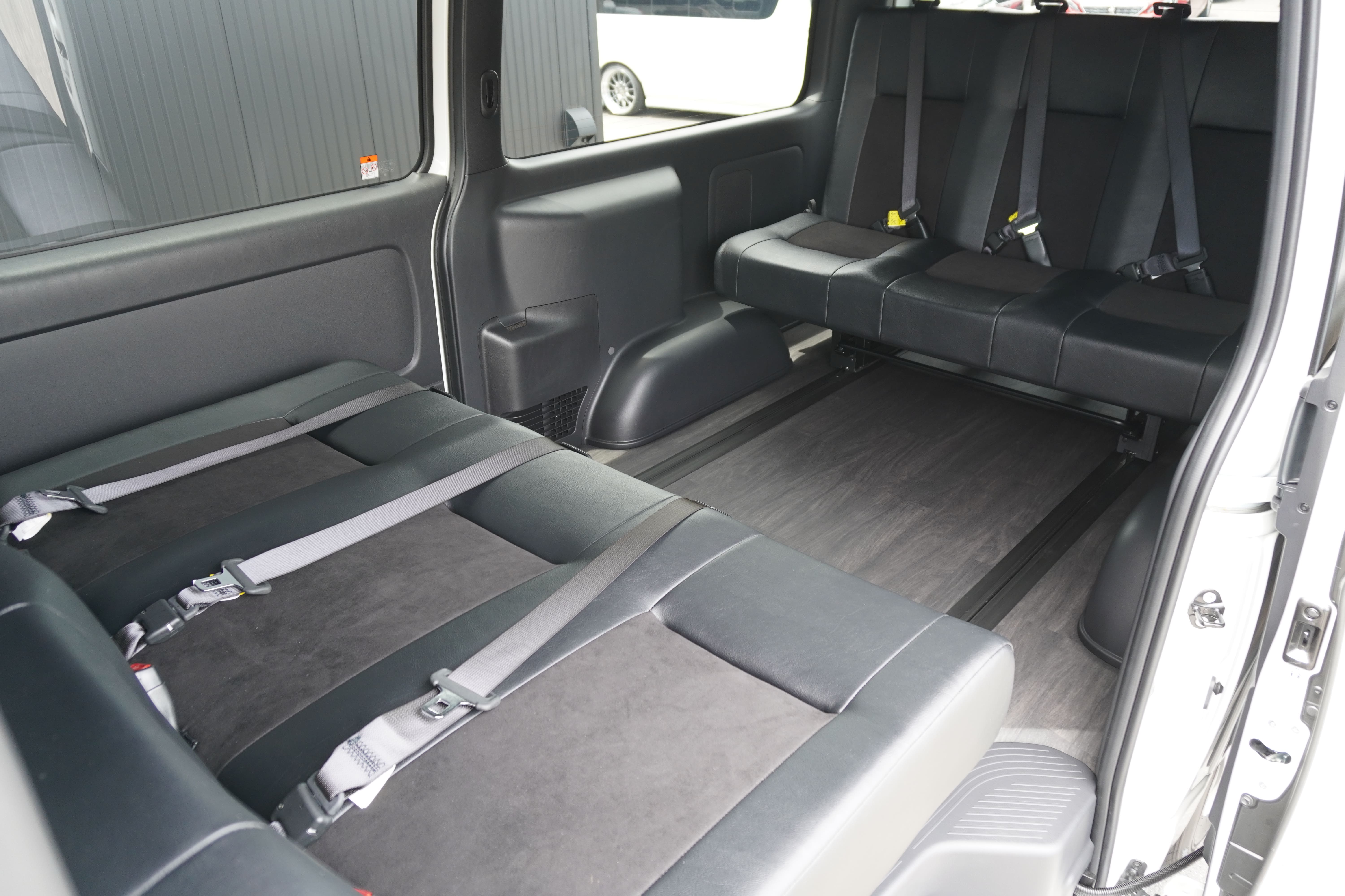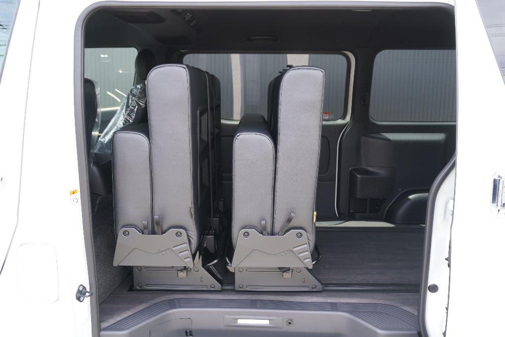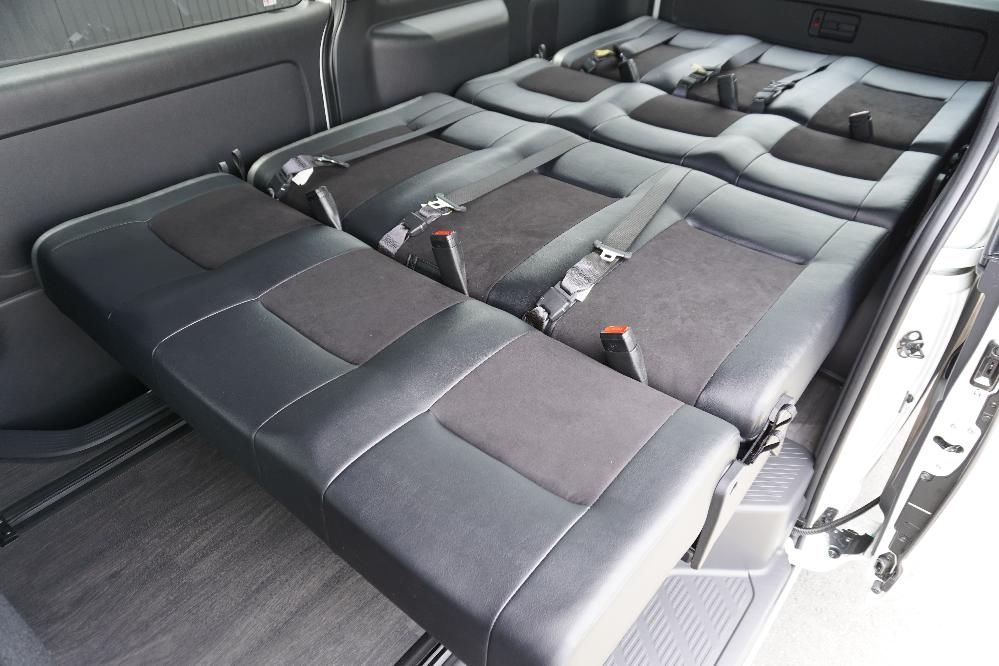 HOME > ギャラリー:IF-VR8/IF-SW8: REVOシート2脚1・4ナンバーのまま8人乗りor3・5ナンバー乗用車登録8人乗り > IF-SW8 200系ハイエースバンS-GLダークプライムU ナローボディー REVOシート2脚8人乗り施工