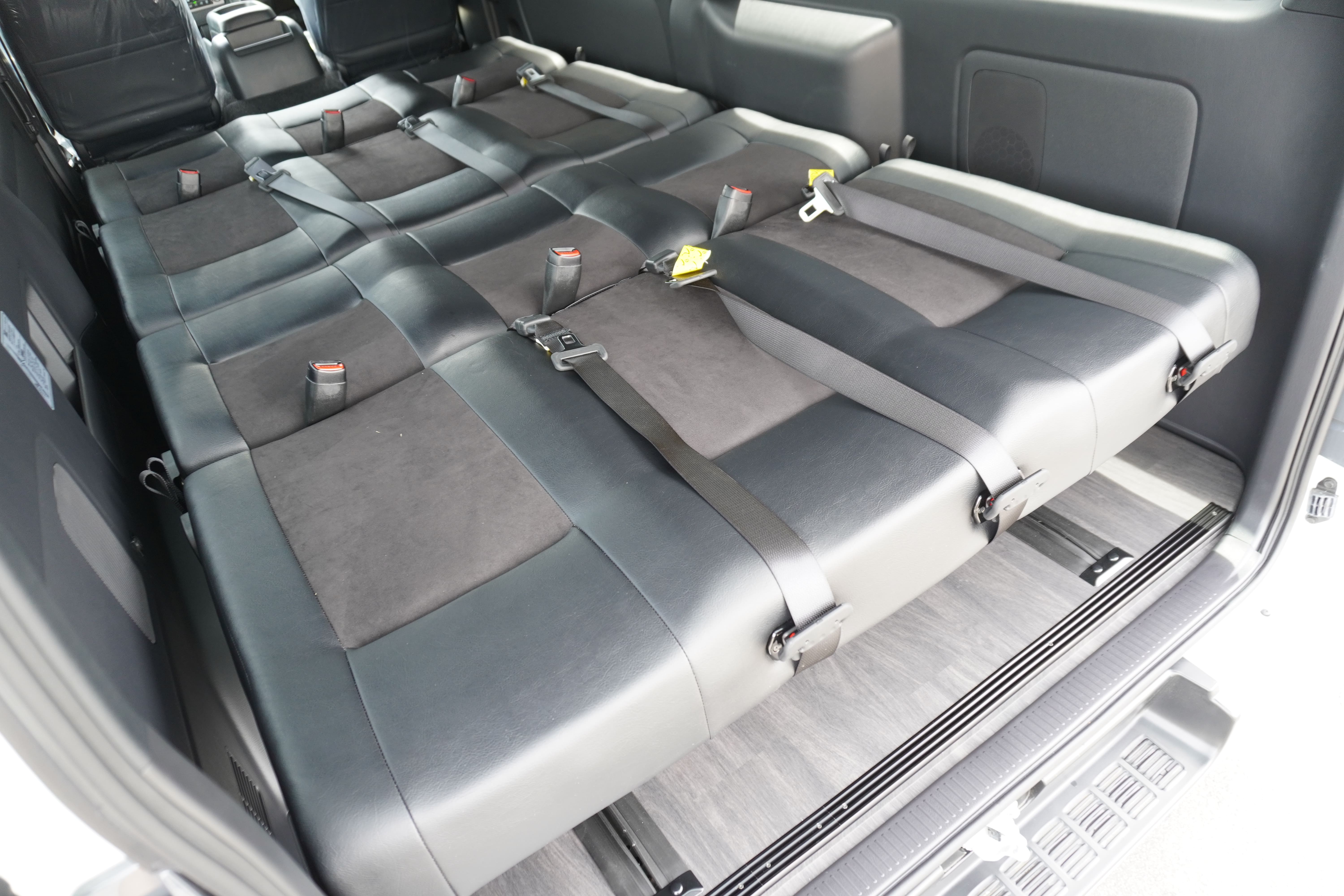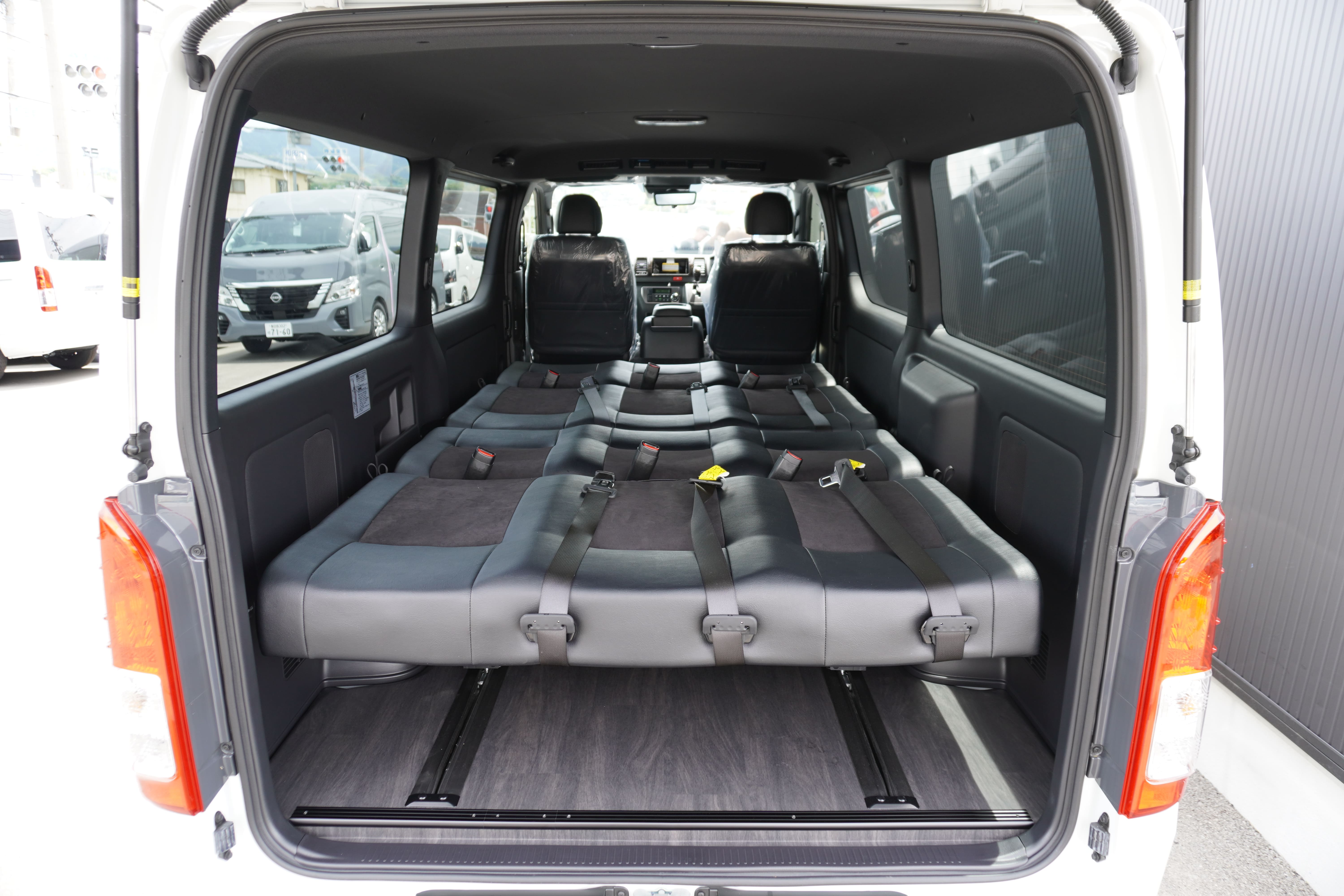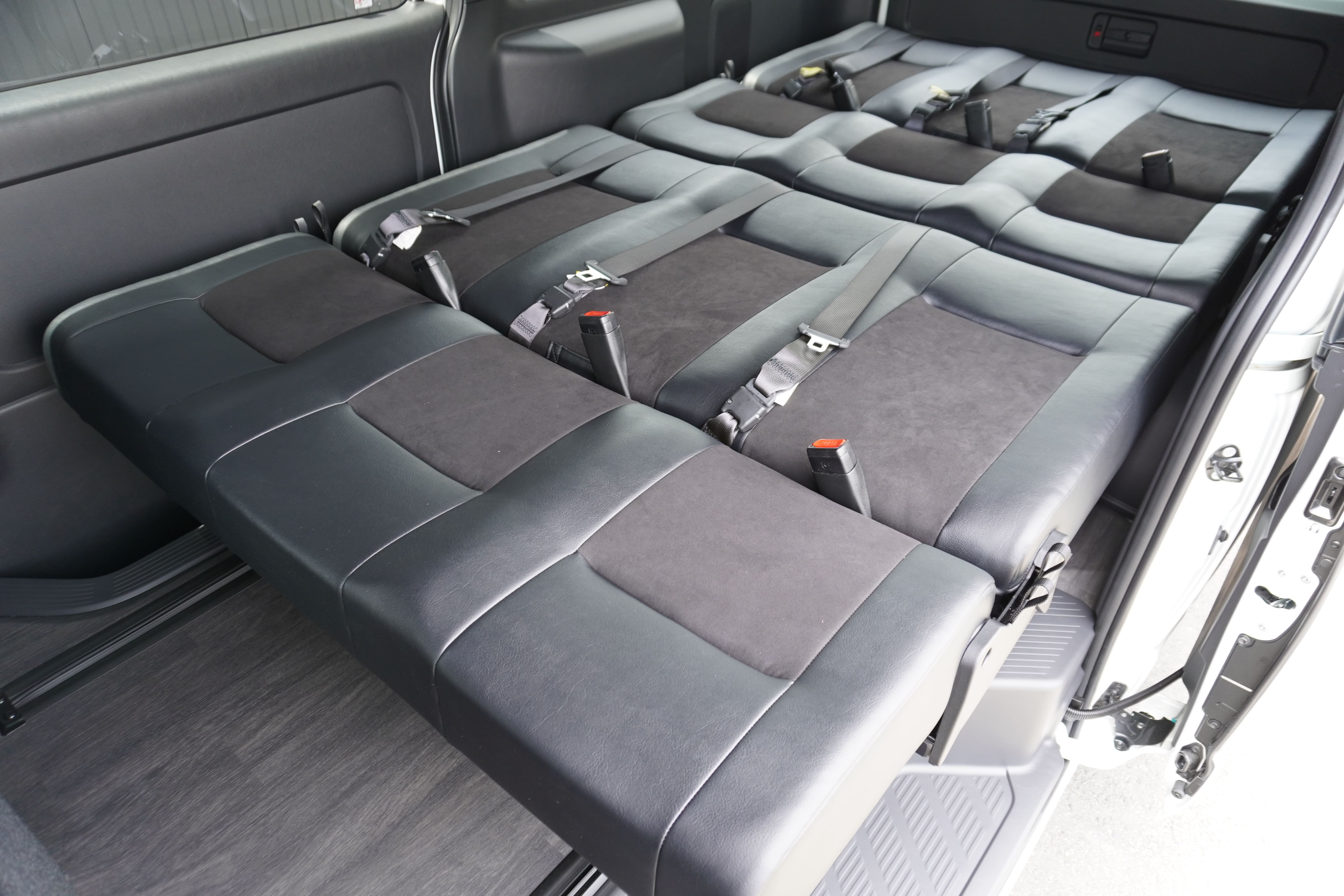 HOME > ギャラリー:IF-VR8/IF-SW8: REVOシート2脚1・4ナンバーのまま8人乗りor3・5ナンバー乗用車登録8人乗り > IF-SW8 200系ハイエースバンS-GLダークプライムU ナローボディー REVOシート2脚8人乗り施工