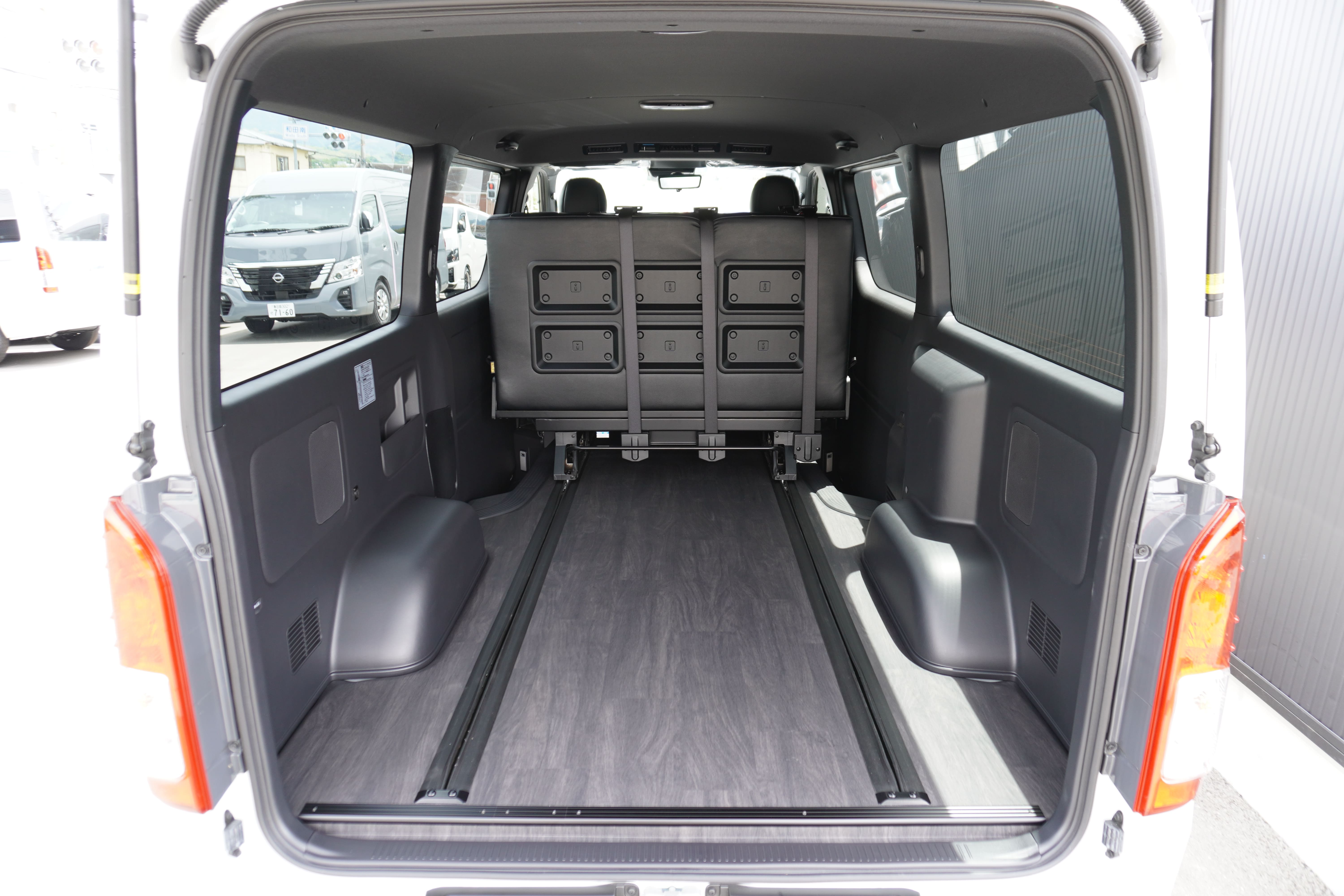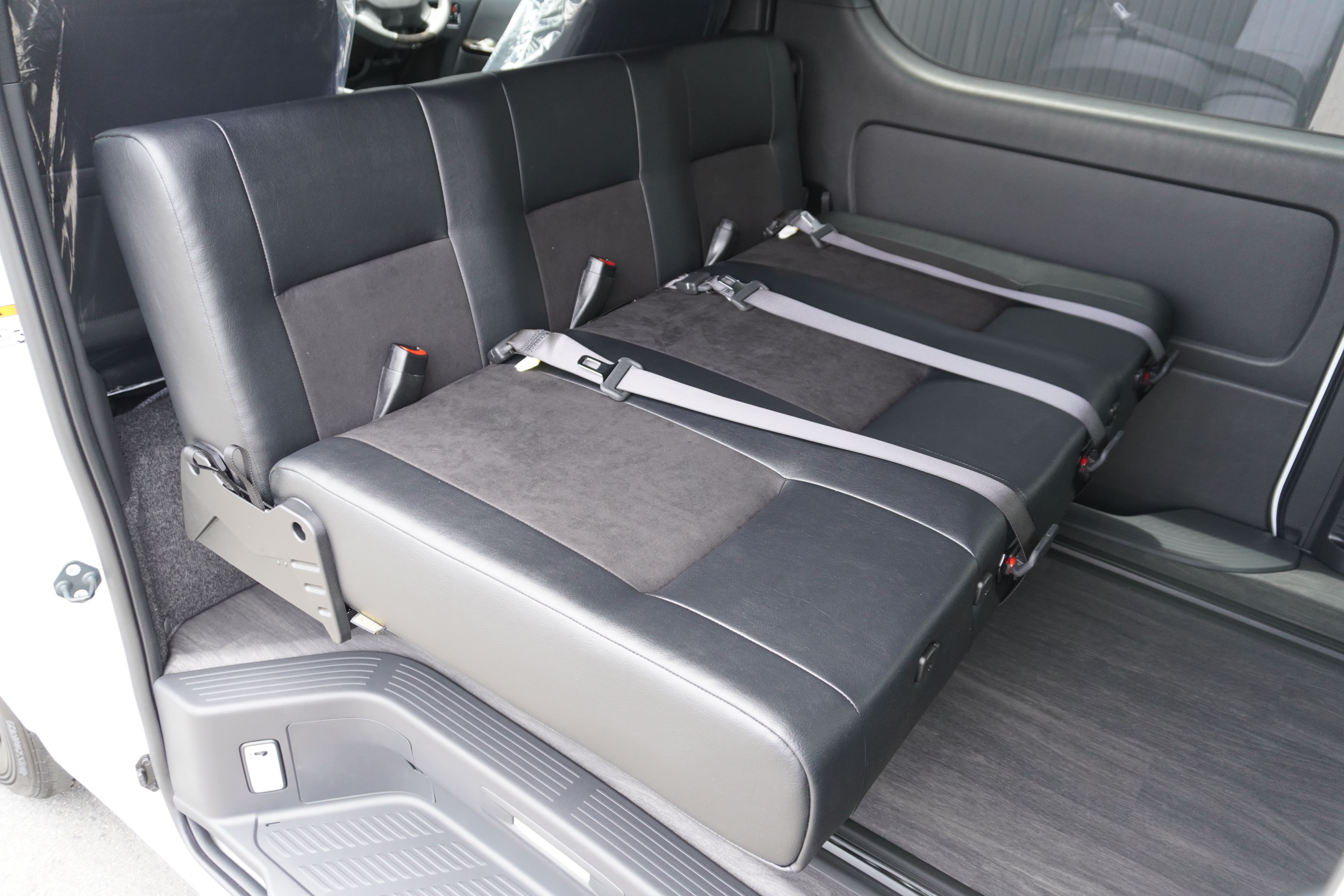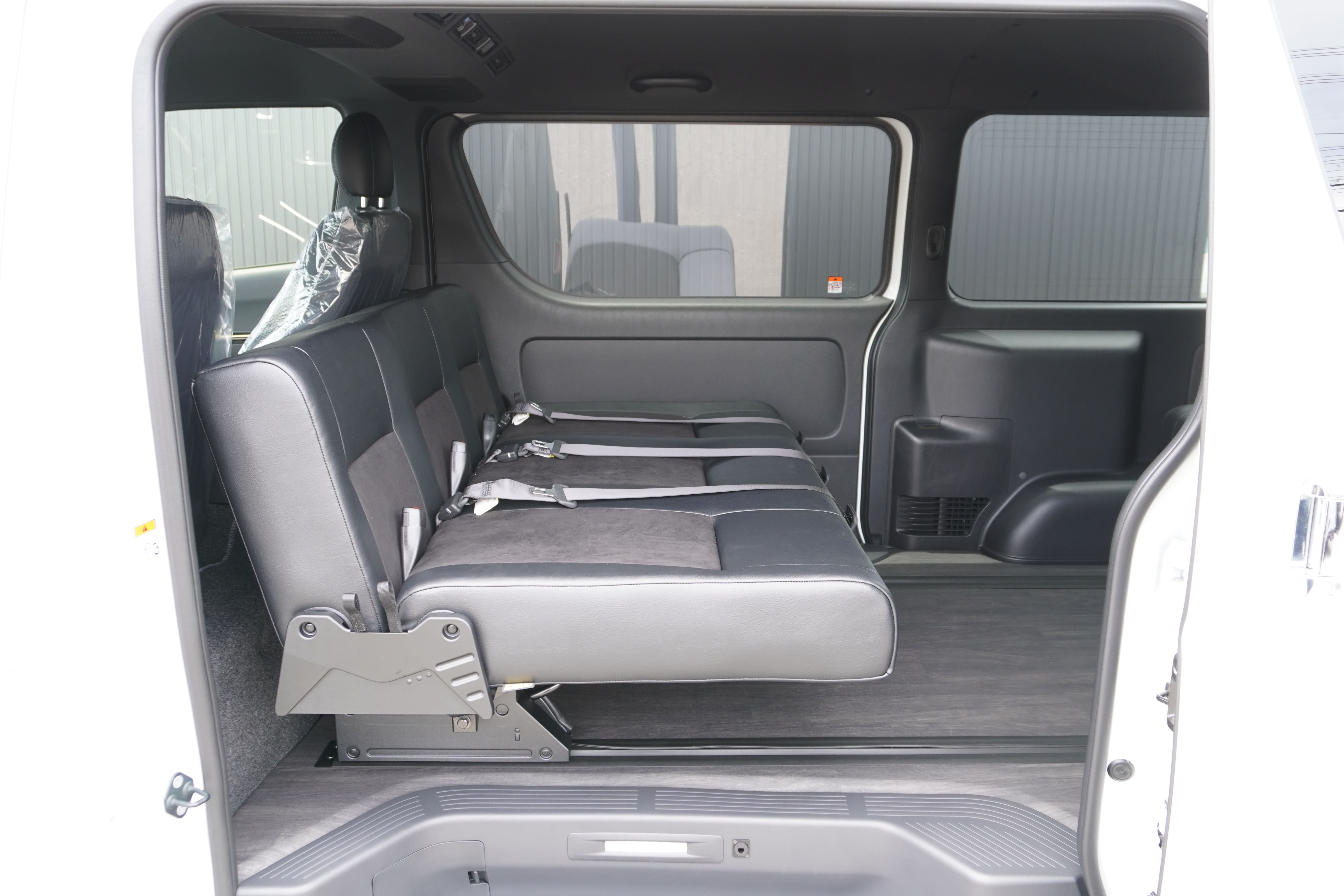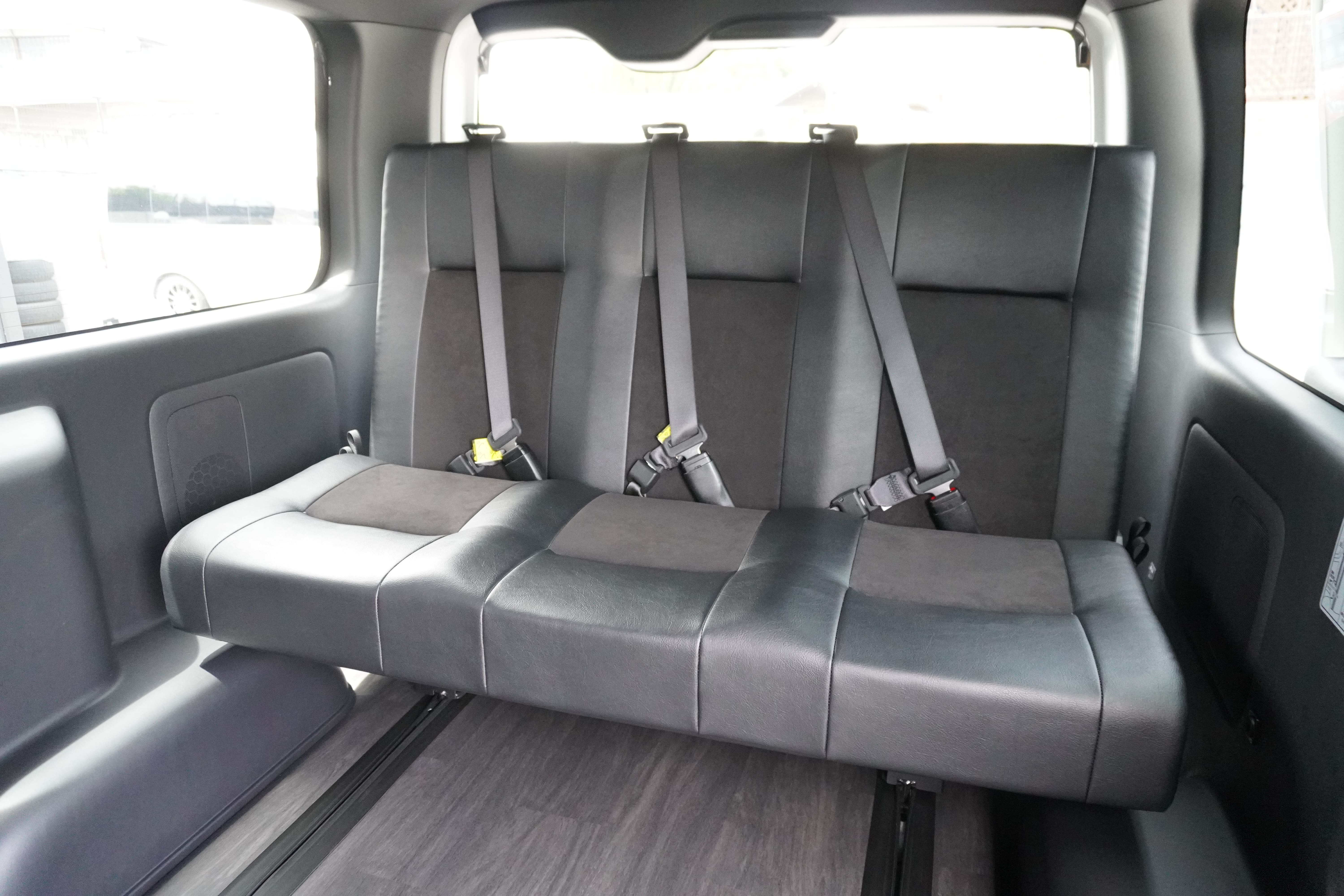 HOME > ギャラリー:IF-VR8/IF-SW8: REVOシート2脚1・4ナンバーのまま8人乗りor3・5ナンバー乗用車登録8人乗り > IF-SW8 200系ハイエースバンS-GLダークプライムU ナローボディー REVOシート2脚8人乗り施工