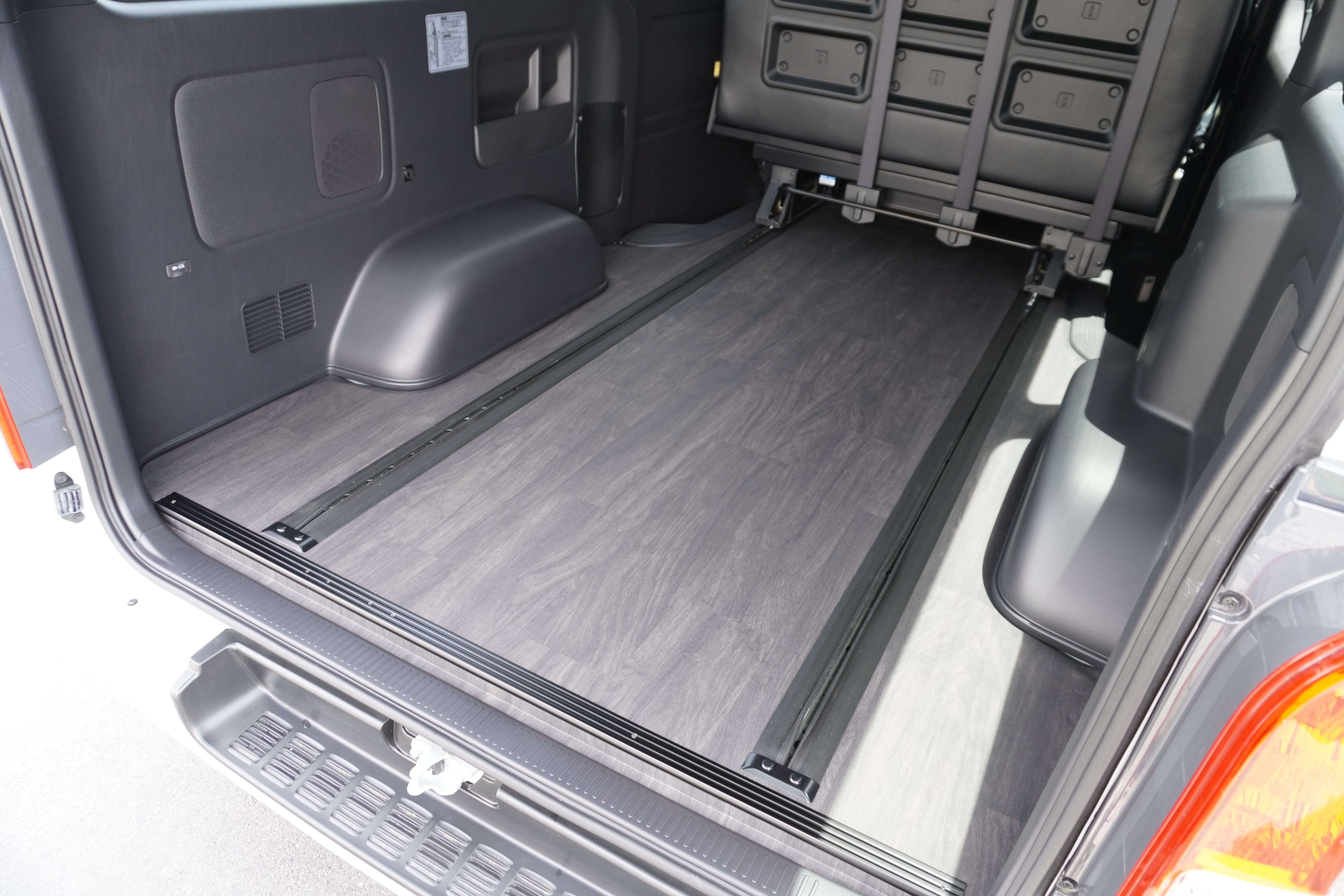 フロアフローリング施工(SDR9166カリンクロ) ロングスライドレール スペアタイヤ取り出しできます フロアビス打ち無し