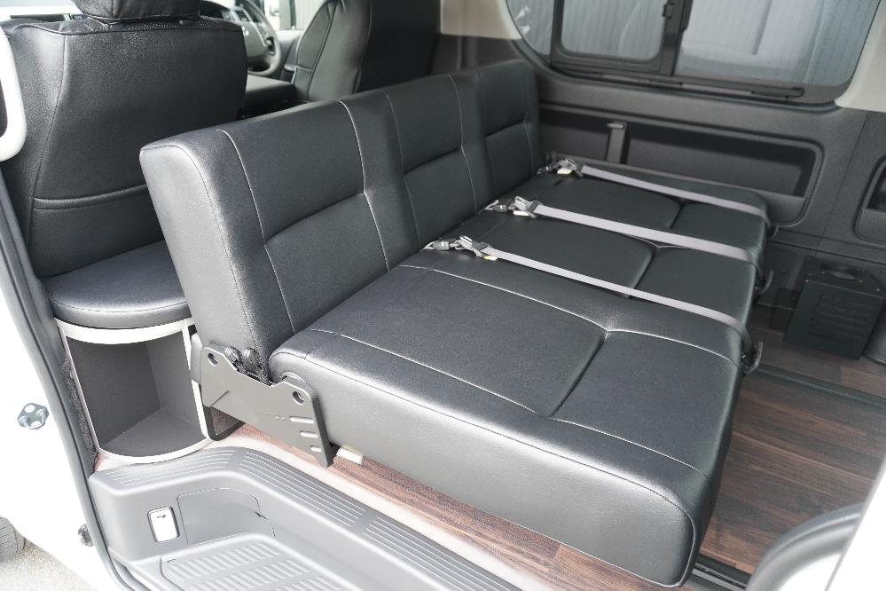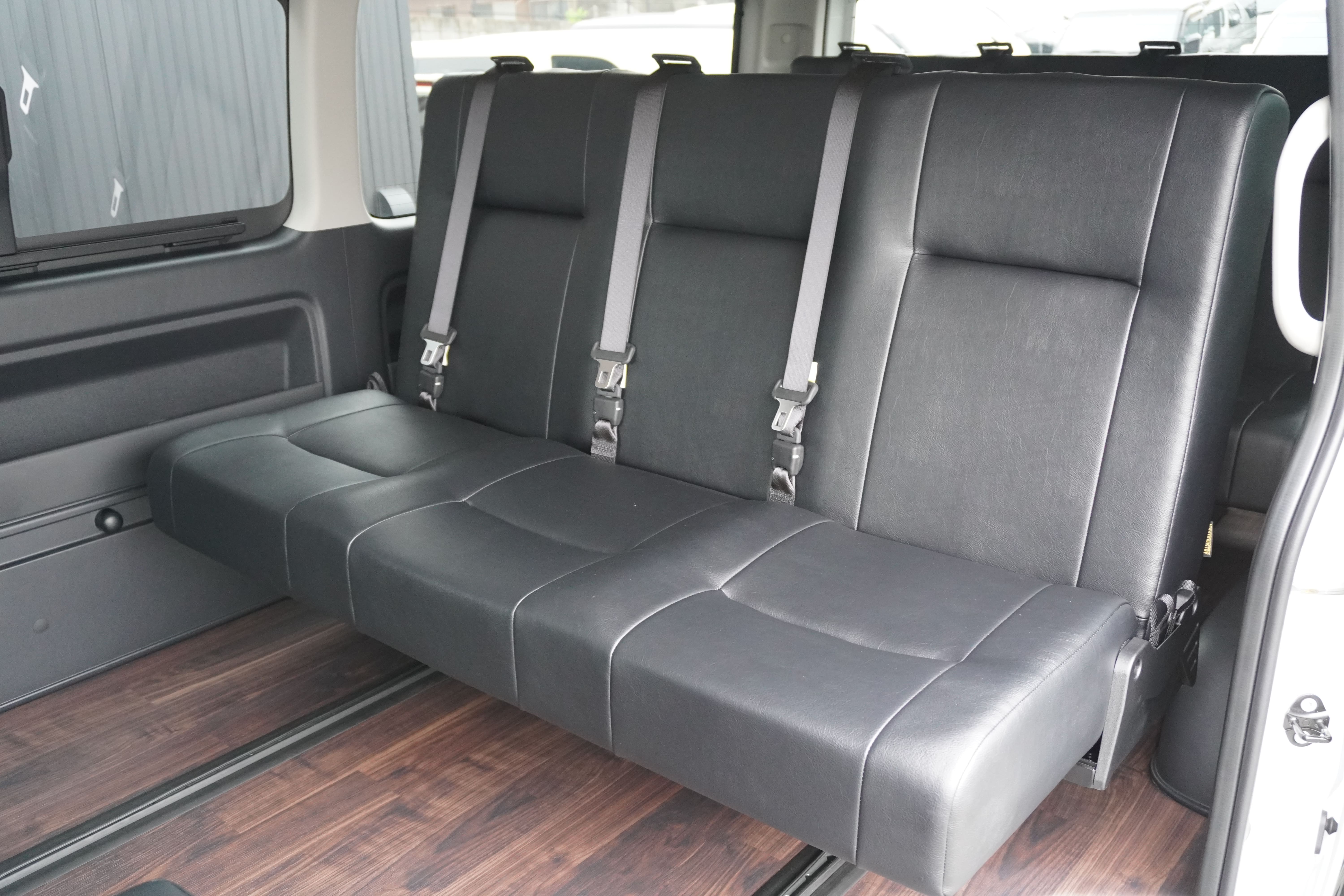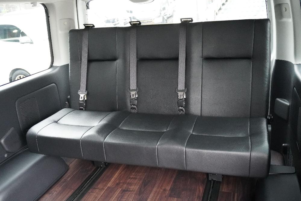 3列目T−REVO1400mm成型シート 全席3点式シートベルト シート生地 はりのあるかため シートデザイン オーダーシートデザイン(クロレザー一色)
