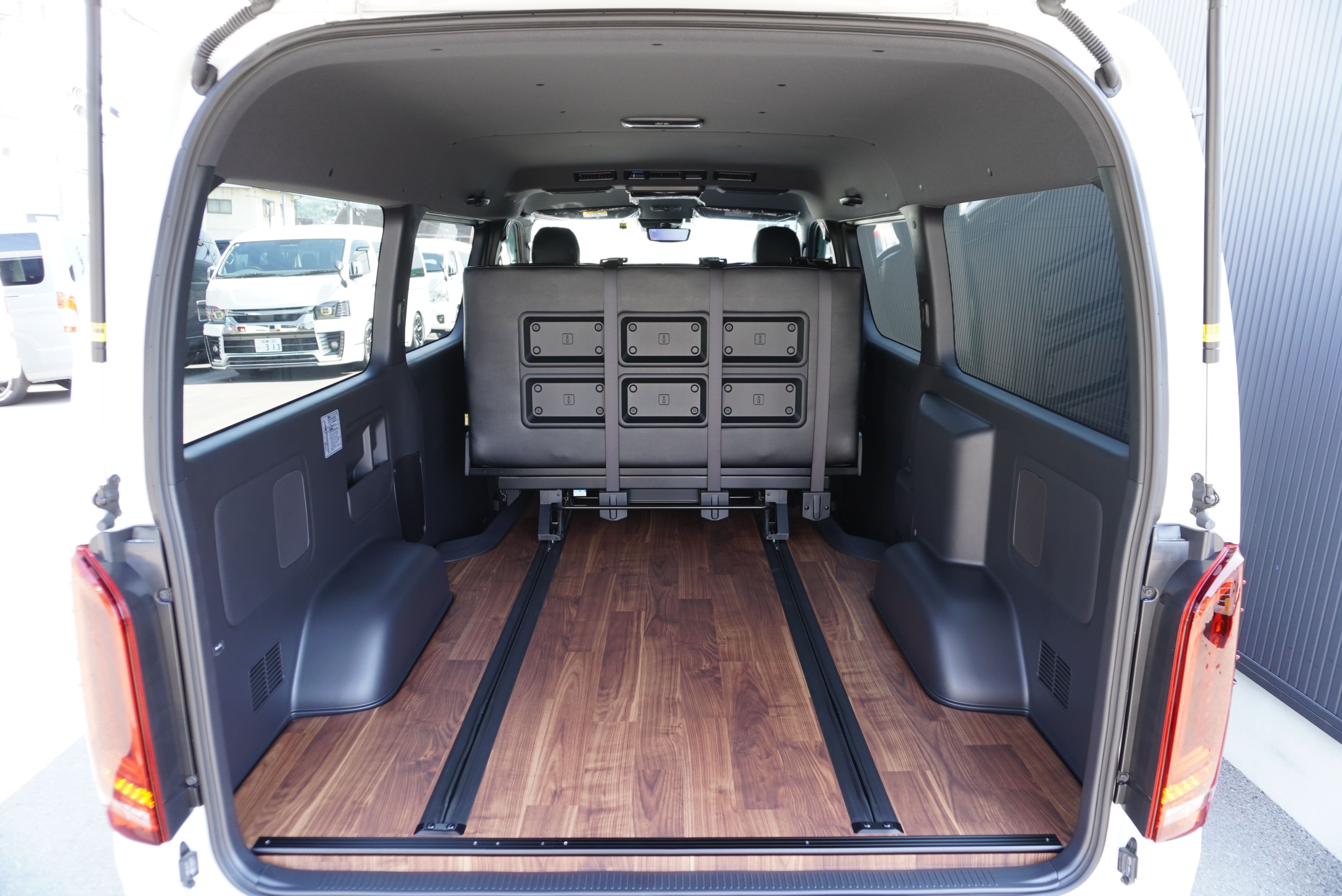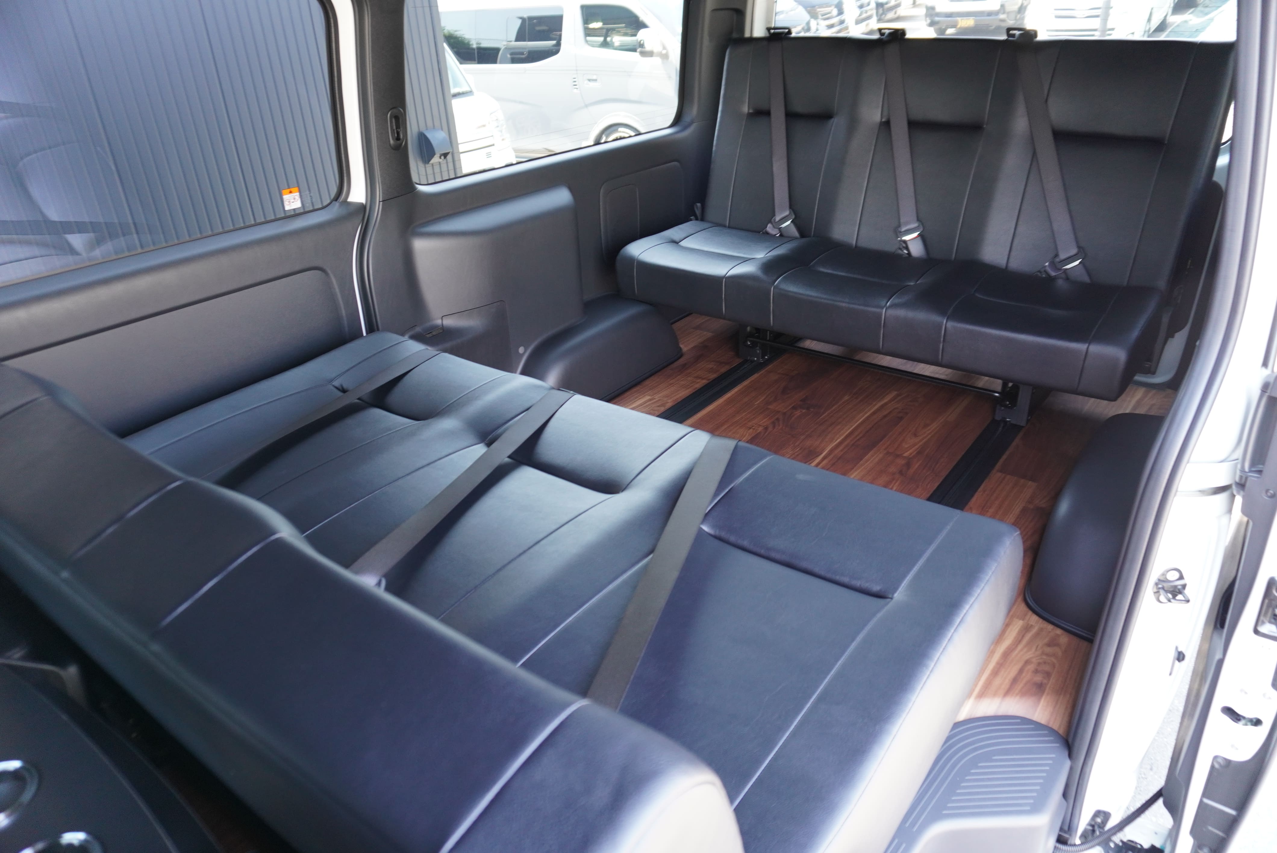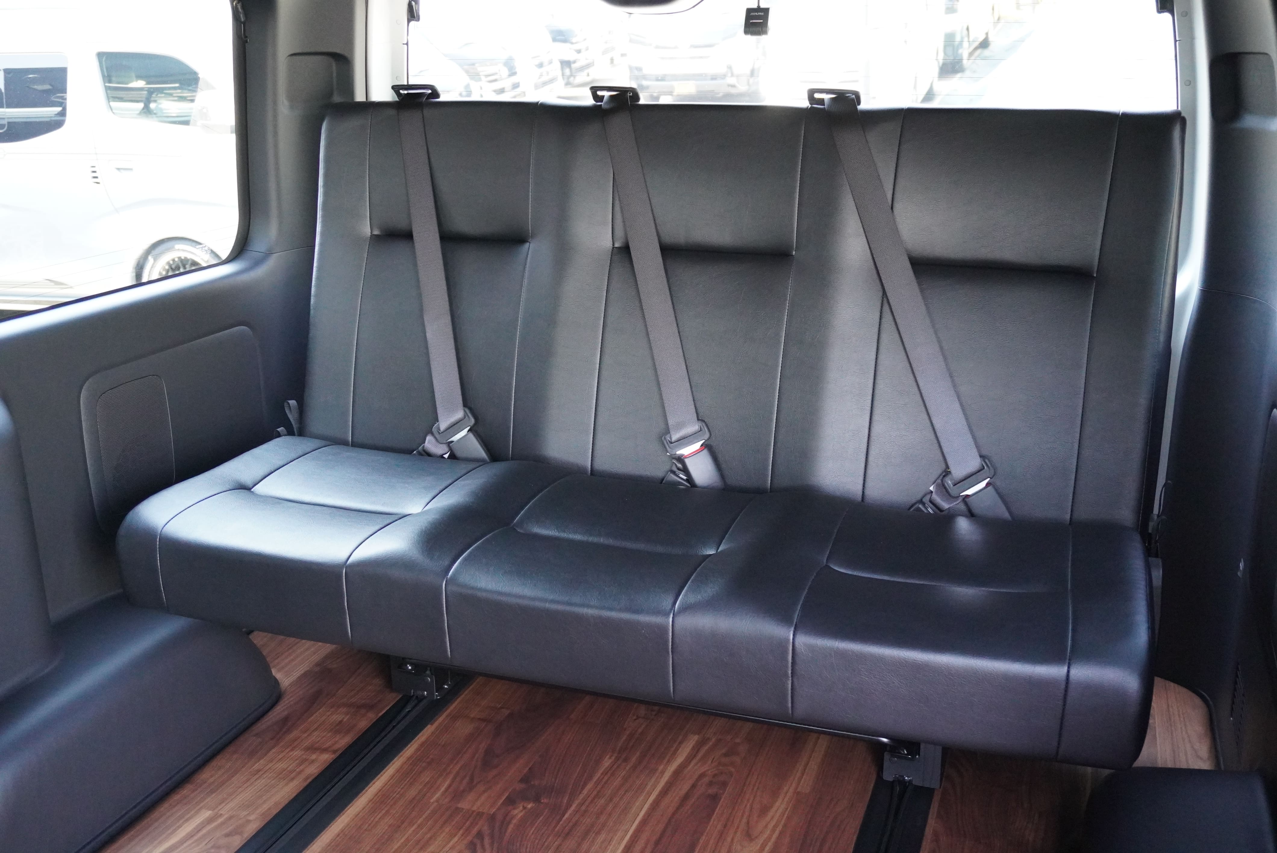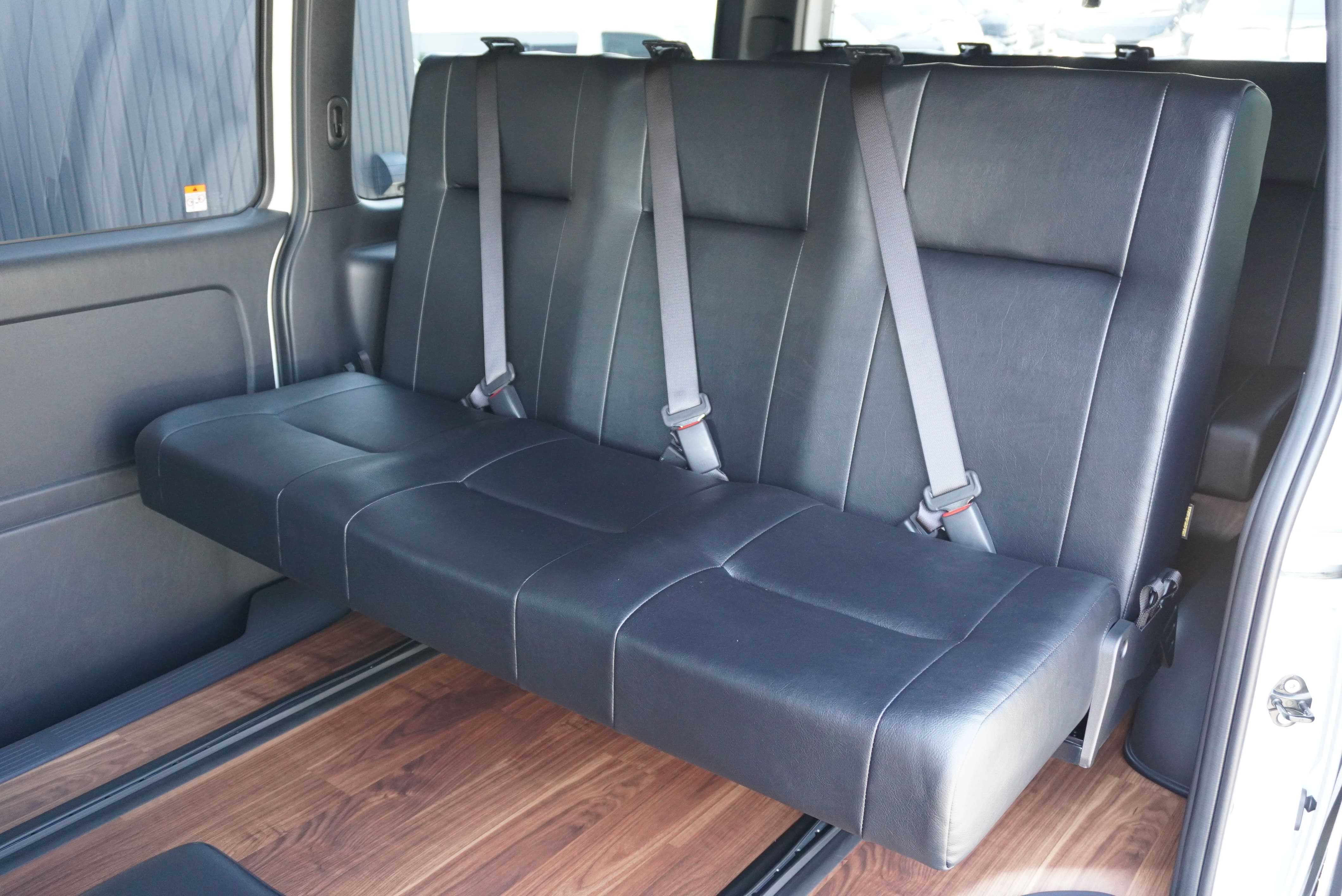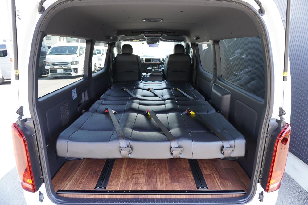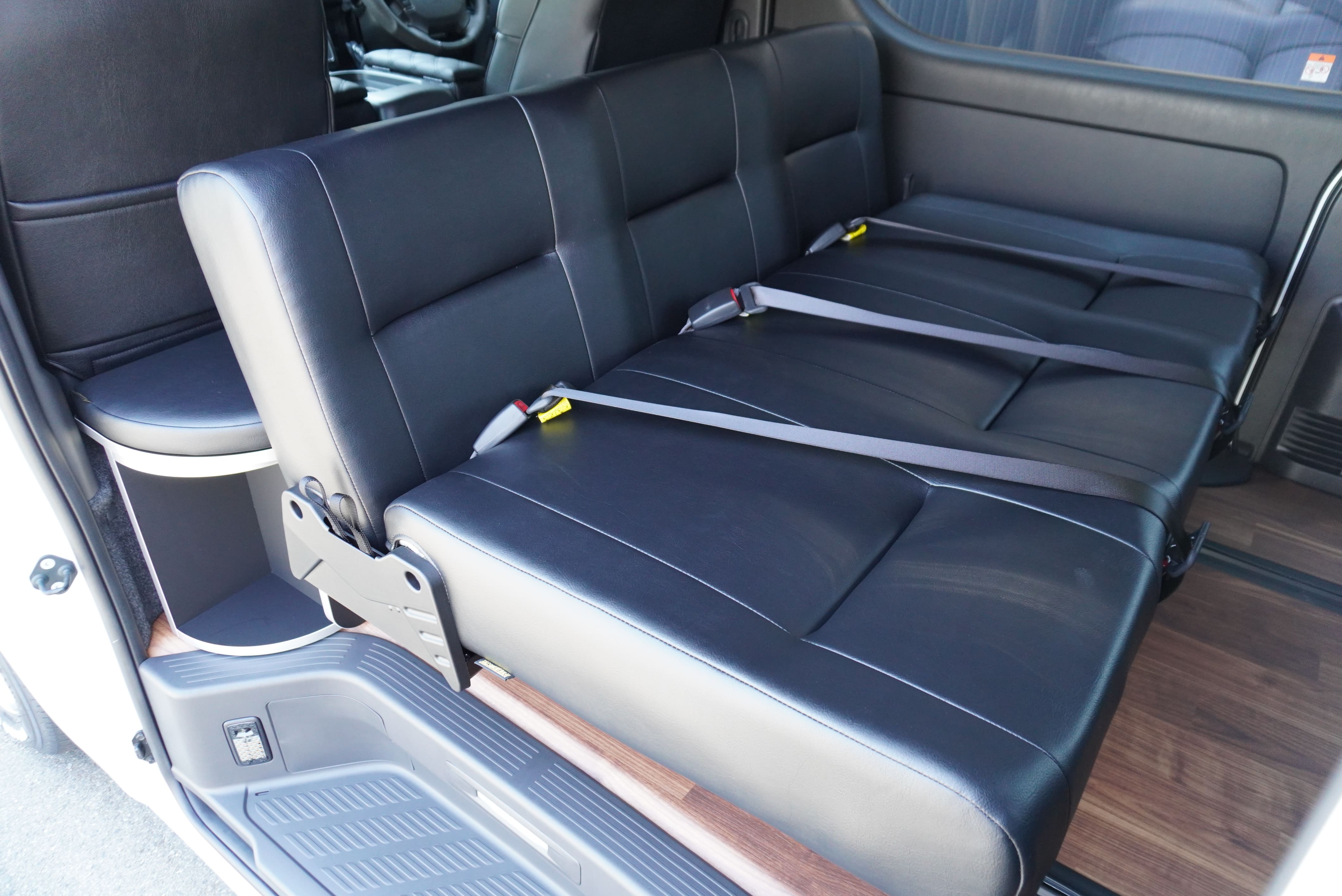 HOME > ギャラリー:IF-VR8/IF-SW8: REVOシート2脚1・4ナンバーのまま8人乗りor3・5ナンバー乗用車登録8人乗り > IF-SW8 200系ハイエースバンS-GLダークプライムU ワイドボディー REVOシート2脚8人乗り施工