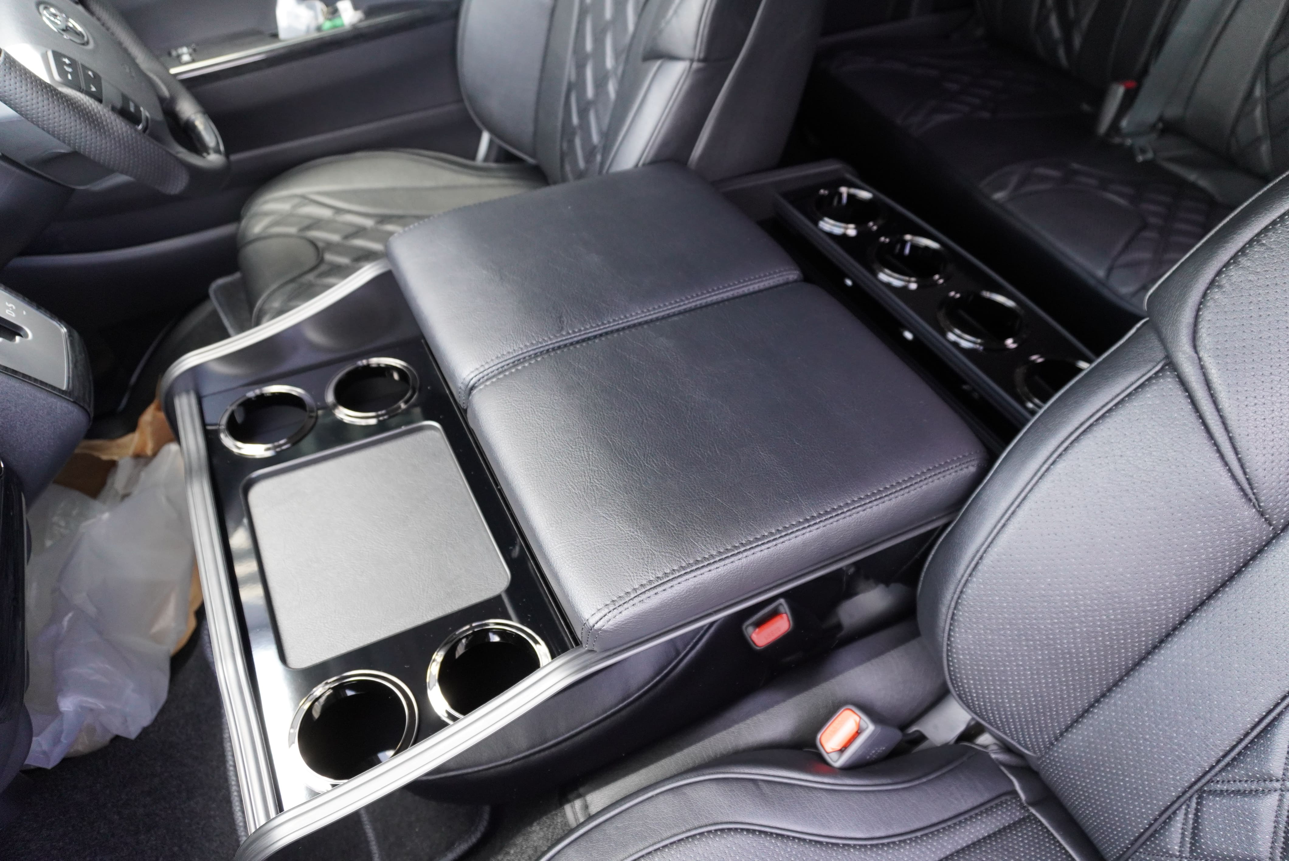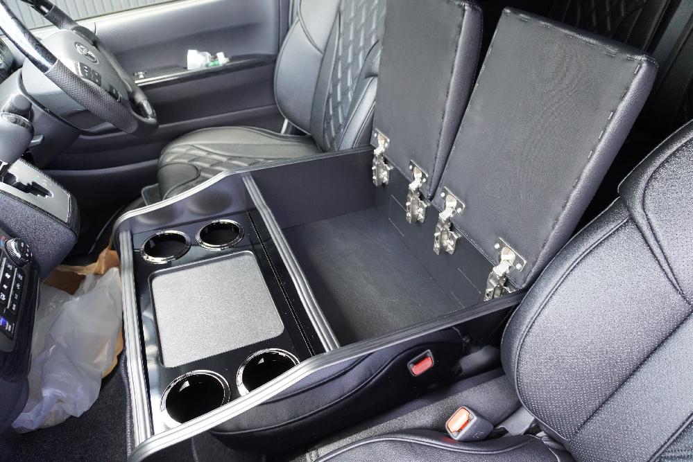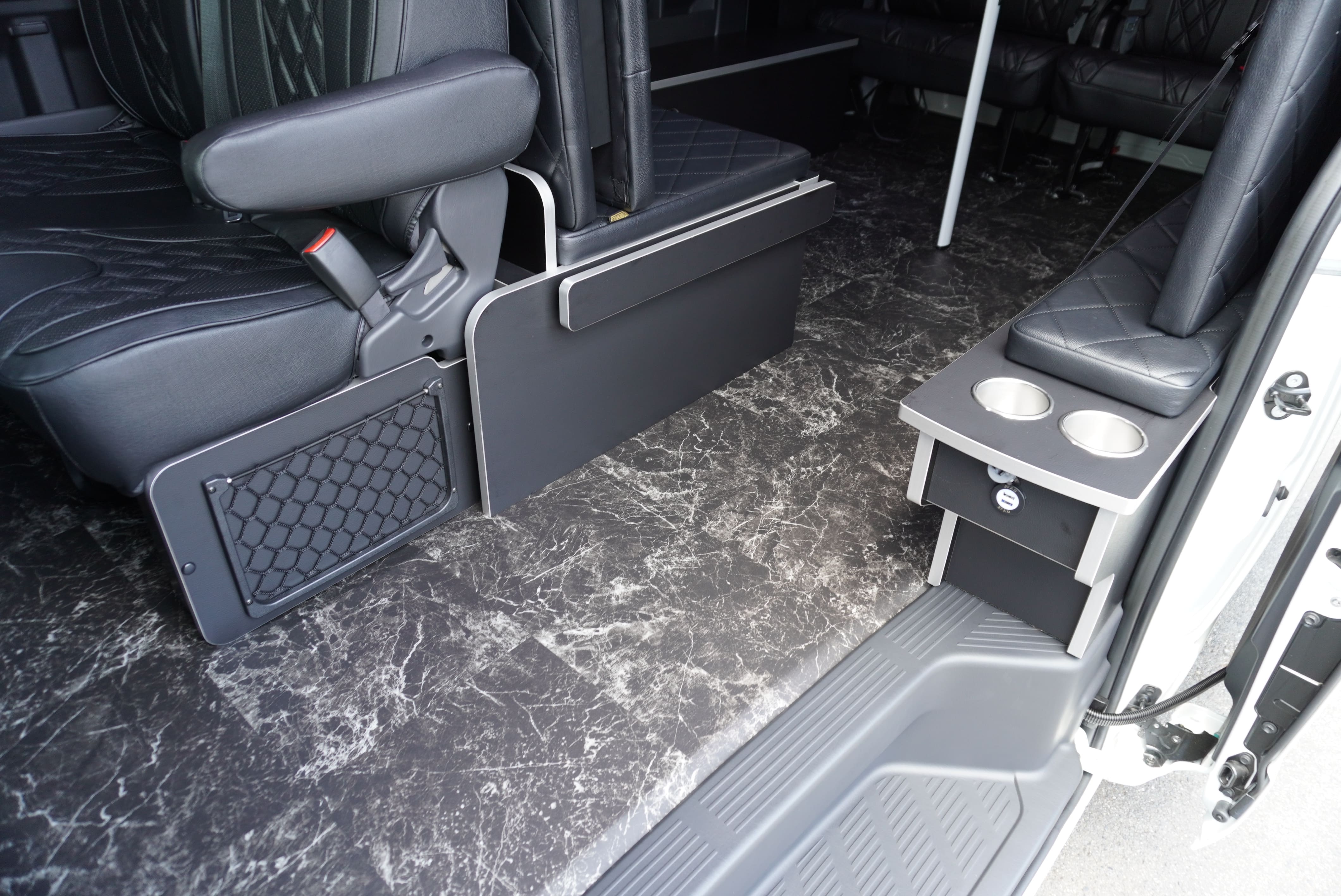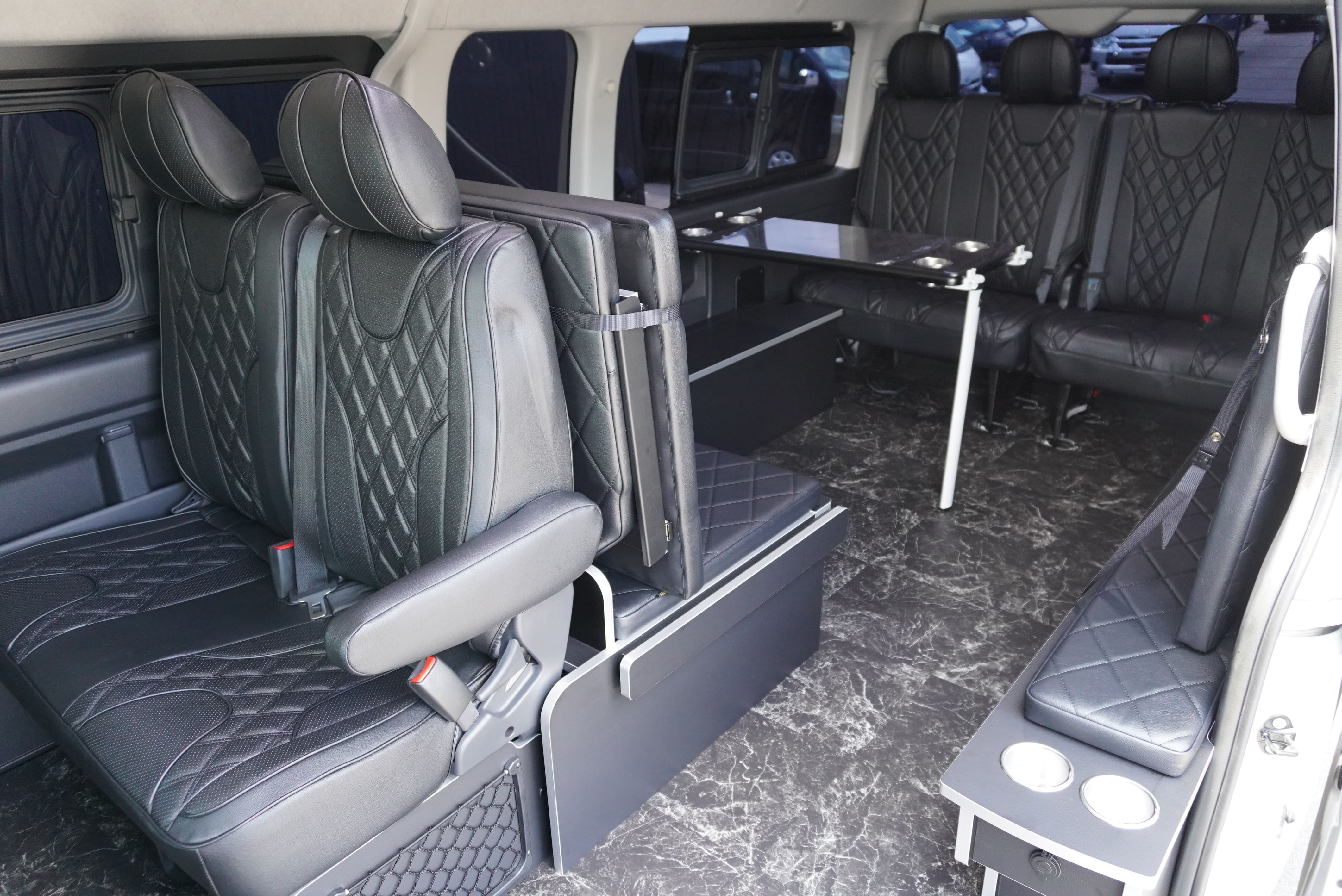 オプションサイドレールテーブル(ロングレッグ) 対面ラウンジ展開 2列目ワゴンGL純正2名シート 3列目ワゴンGL純正シート取り外し IF-WB8後ろ向き2名専用ベット家具