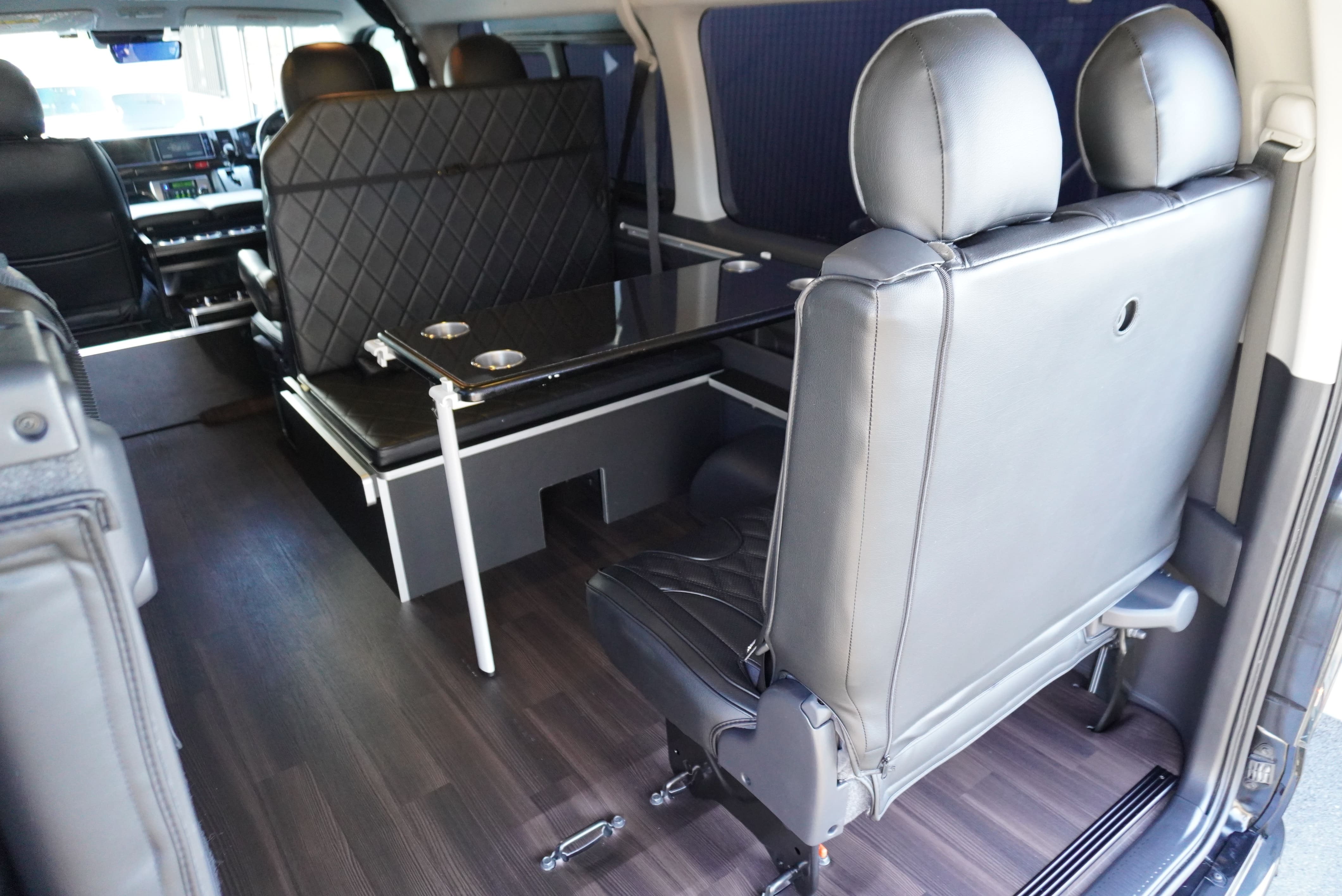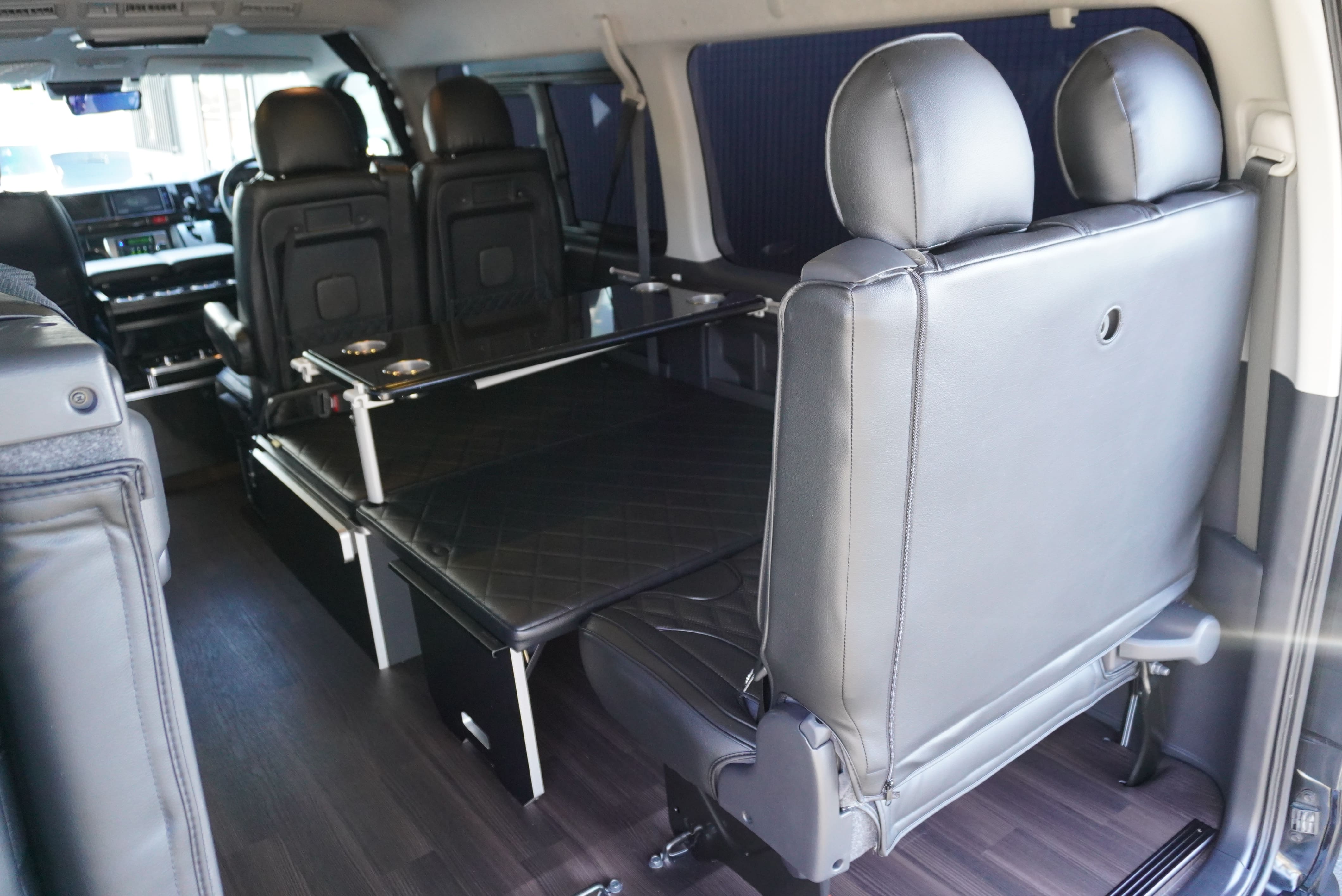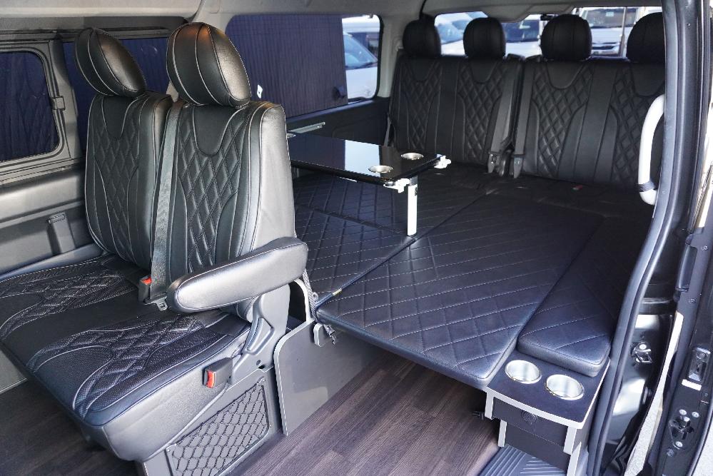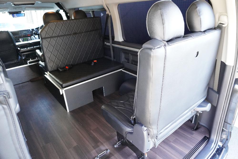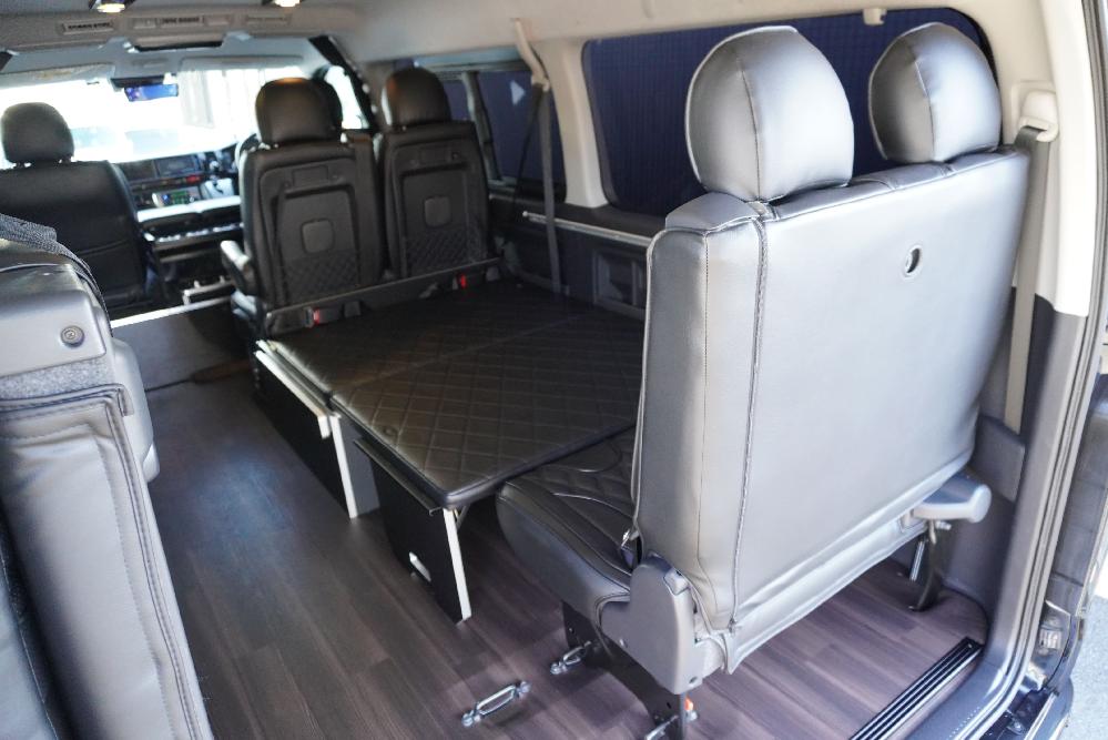 HOME > ギャラリー:IF-WB8 : ハイエースワゴンGL前向き8名後ろ向き2名10人乗り対面ラウンジベット家具 > IF-WB8 200系ハイエースワゴンGL ワイドボディー 前向き8名後ろ向き2名10人乗り対面ラウンジベッド家具施工