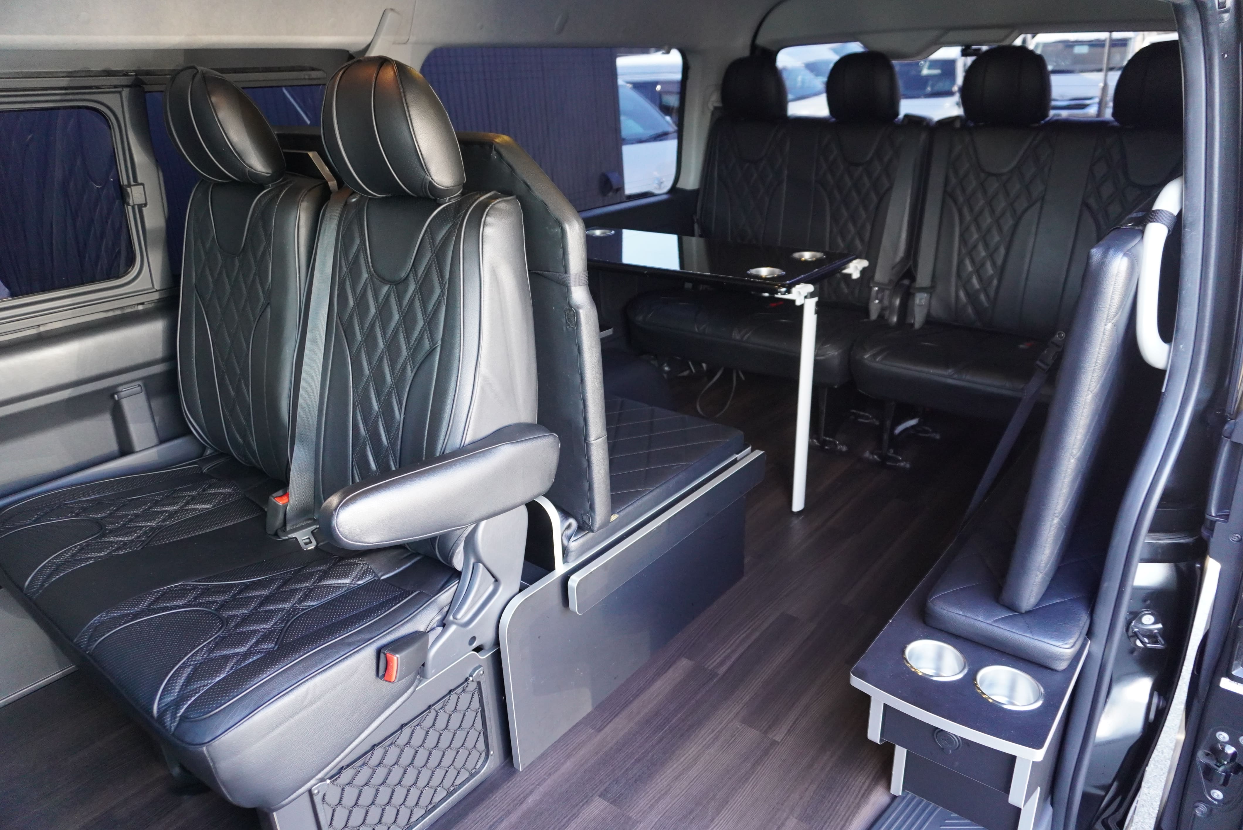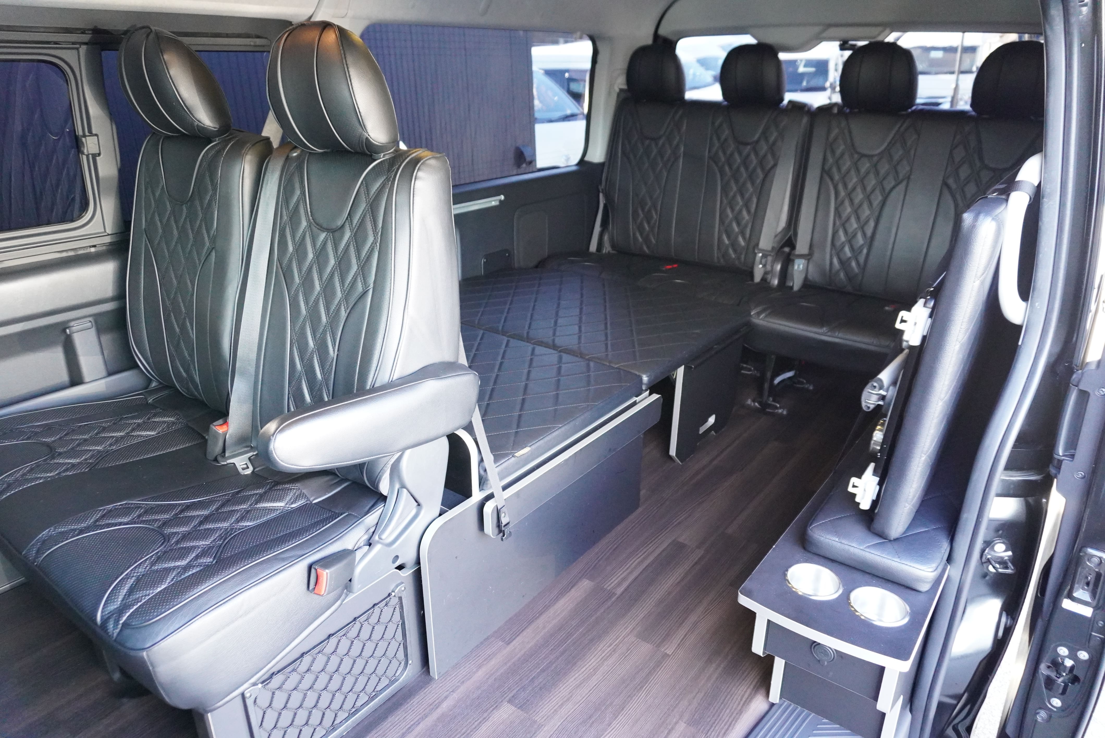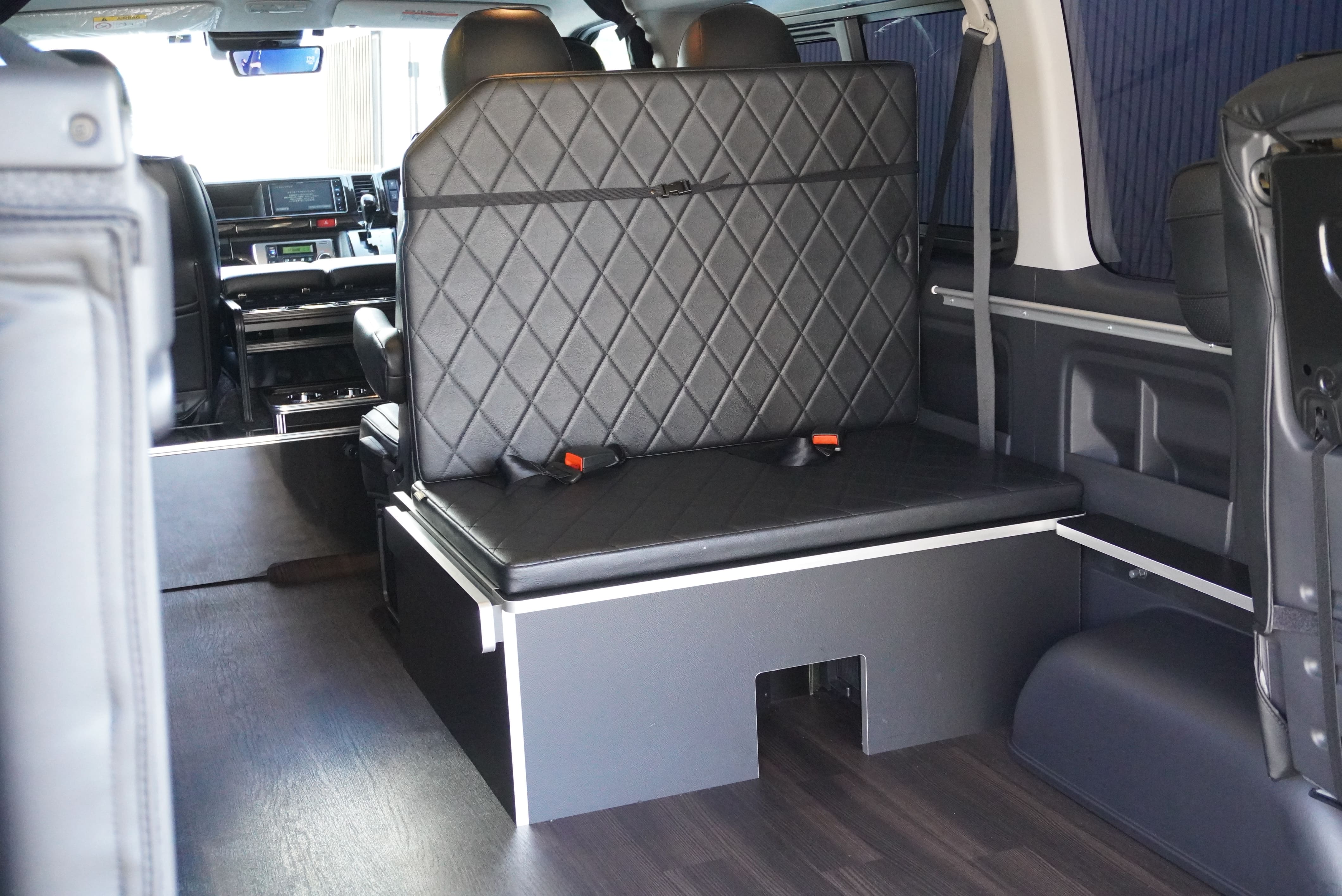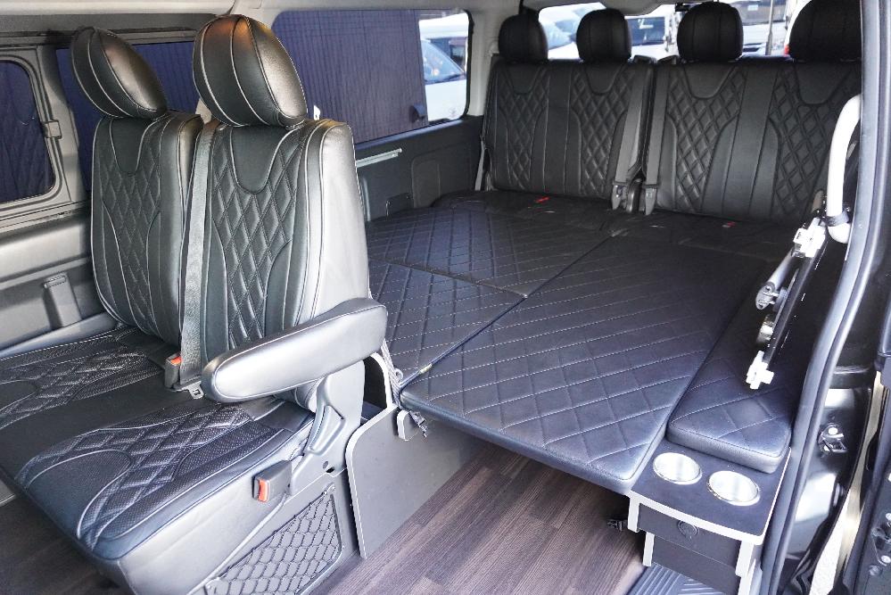 HOME > ギャラリー:IF-WB8 : ハイエースワゴンGL前向き8名後ろ向き2名10人乗り対面ラウンジベット家具 > IF-WB8 200系ハイエースワゴンGL ワイドボディー 前向き8名後ろ向き2名10人乗り対面ラウンジベッド家具施工