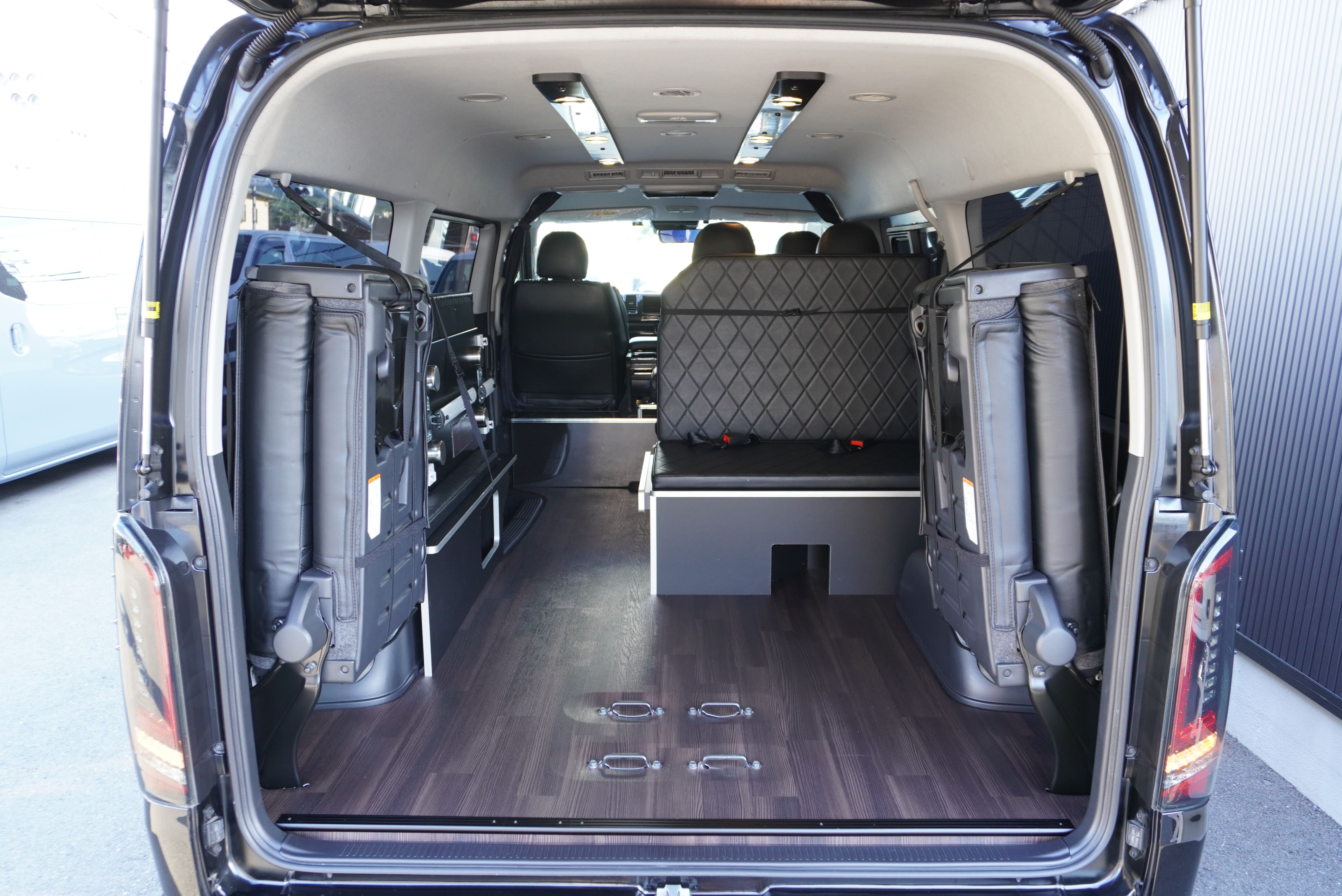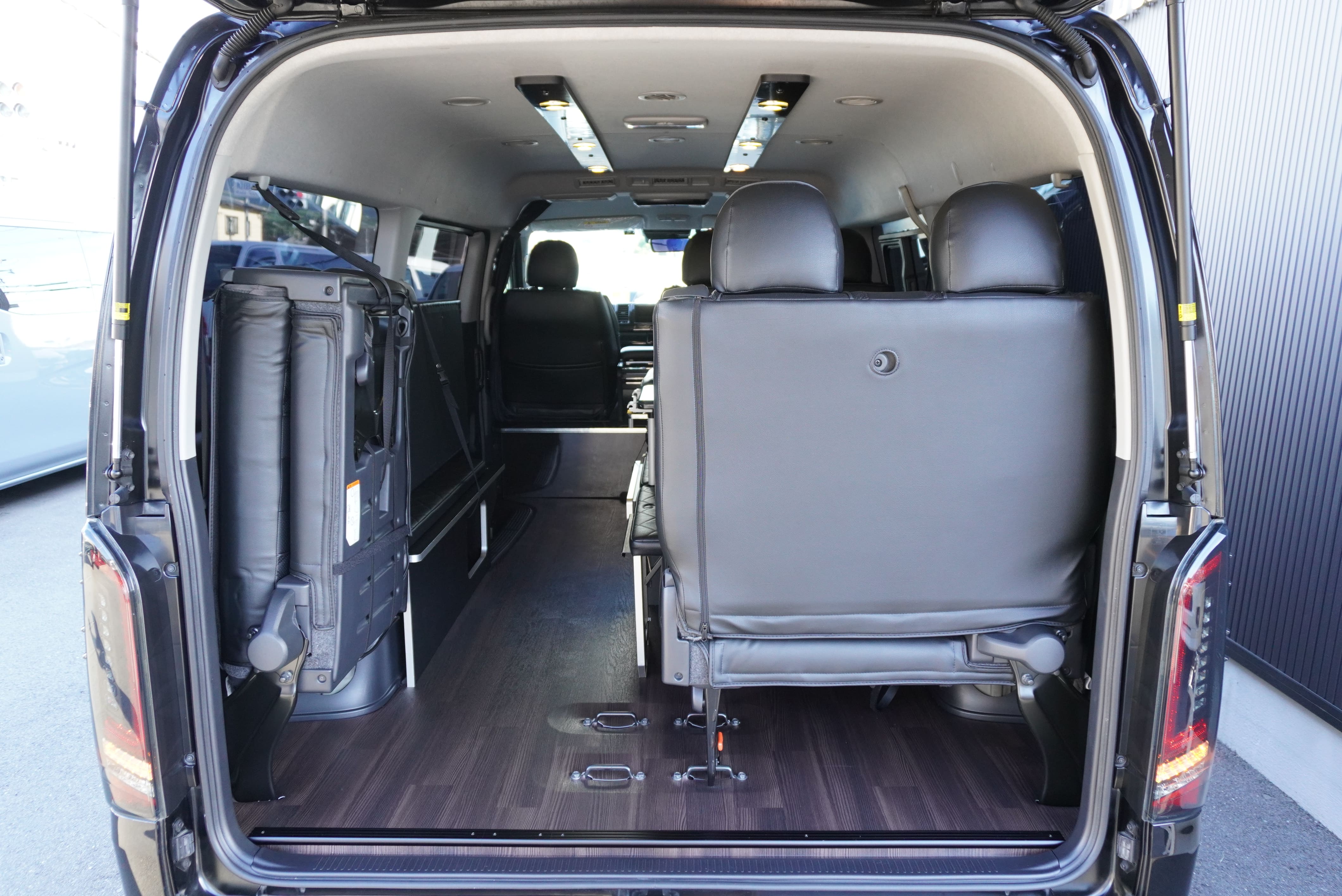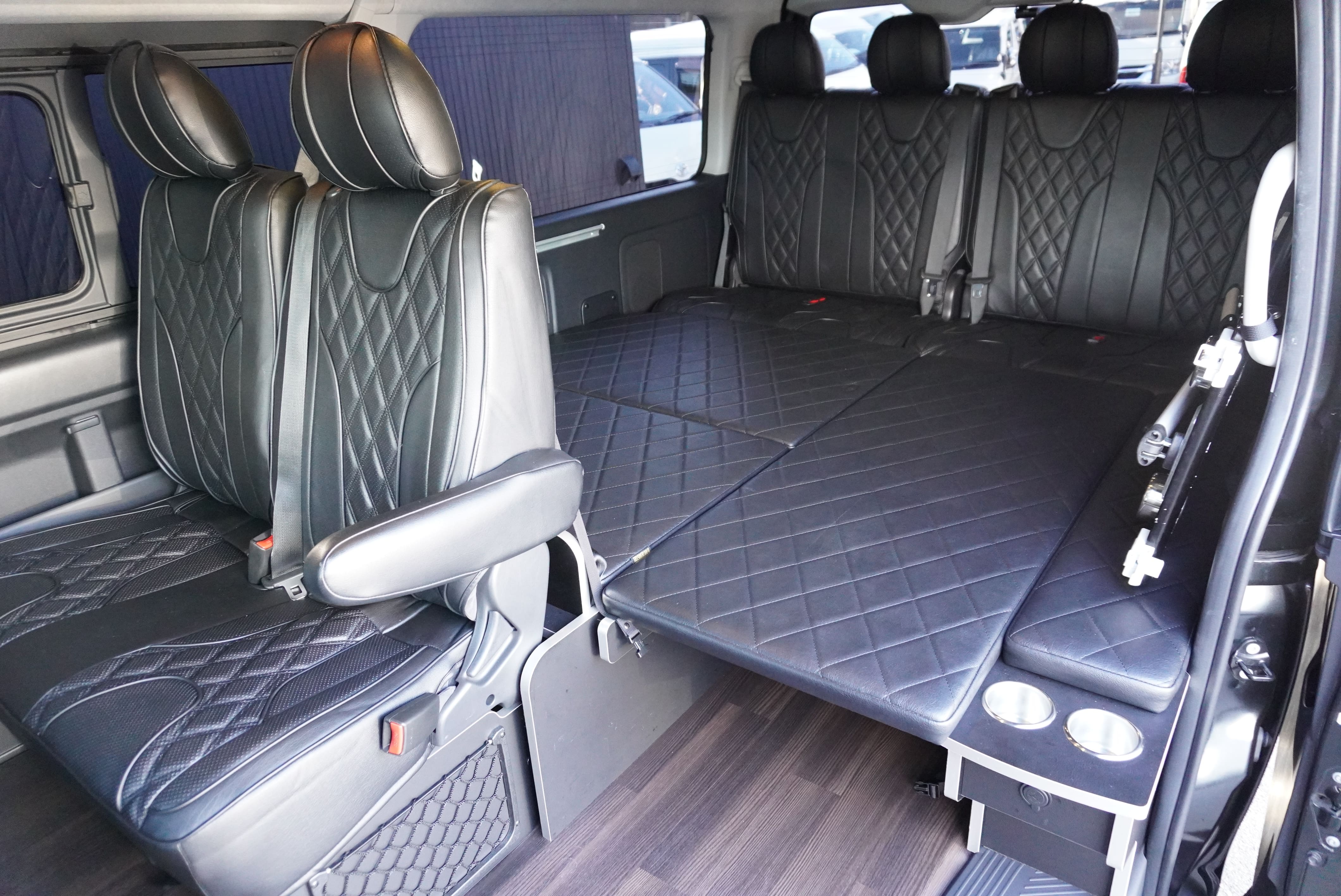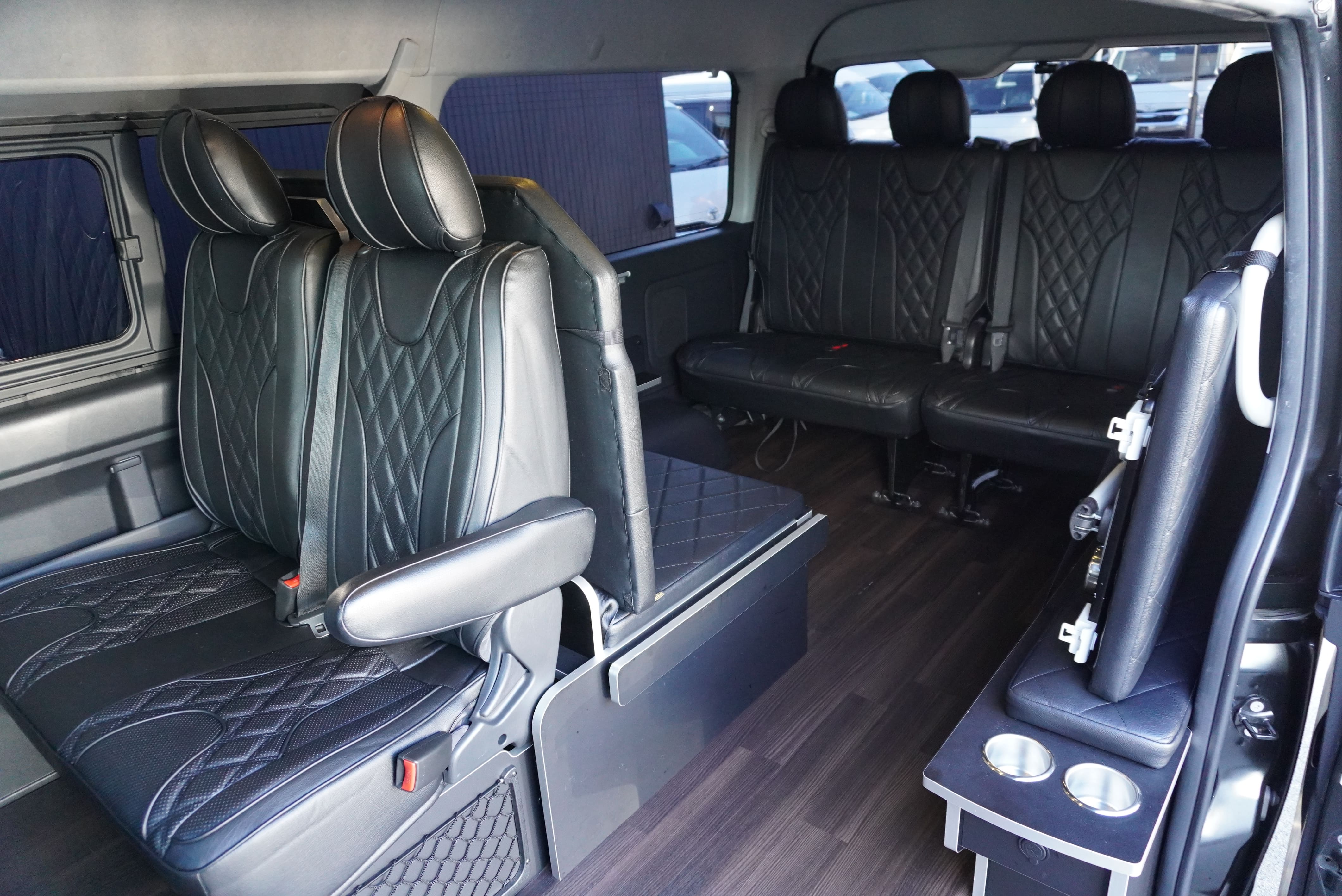 HOME > ギャラリー:IF-WB8 : ハイエースワゴンGL前向き8名後ろ向き2名10人乗り対面ラウンジベット家具 > IF-WB8 200系ハイエースワゴンGL ワイドボディー 前向き8名後ろ向き2名10人乗り対面ラウンジベッド家具施工