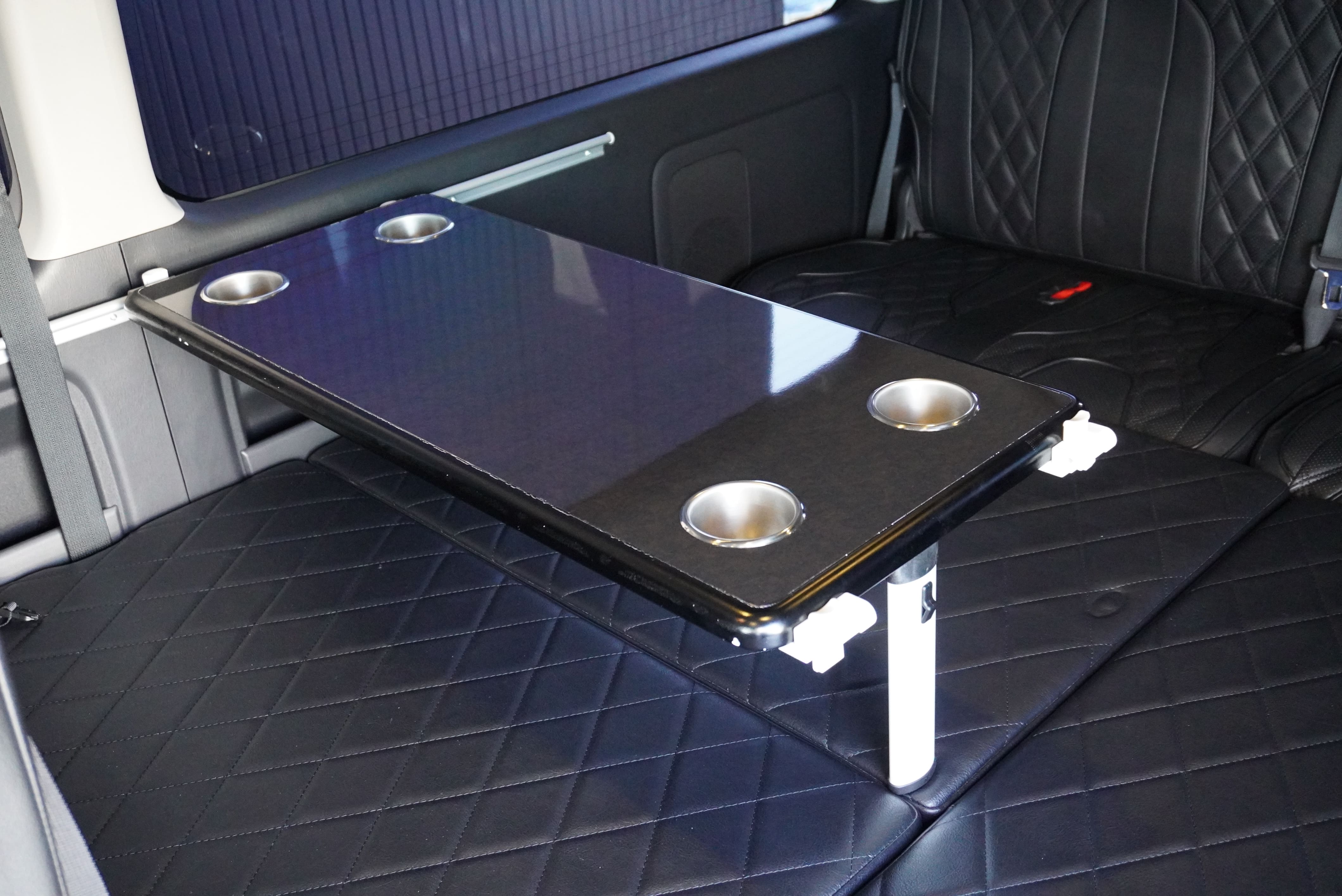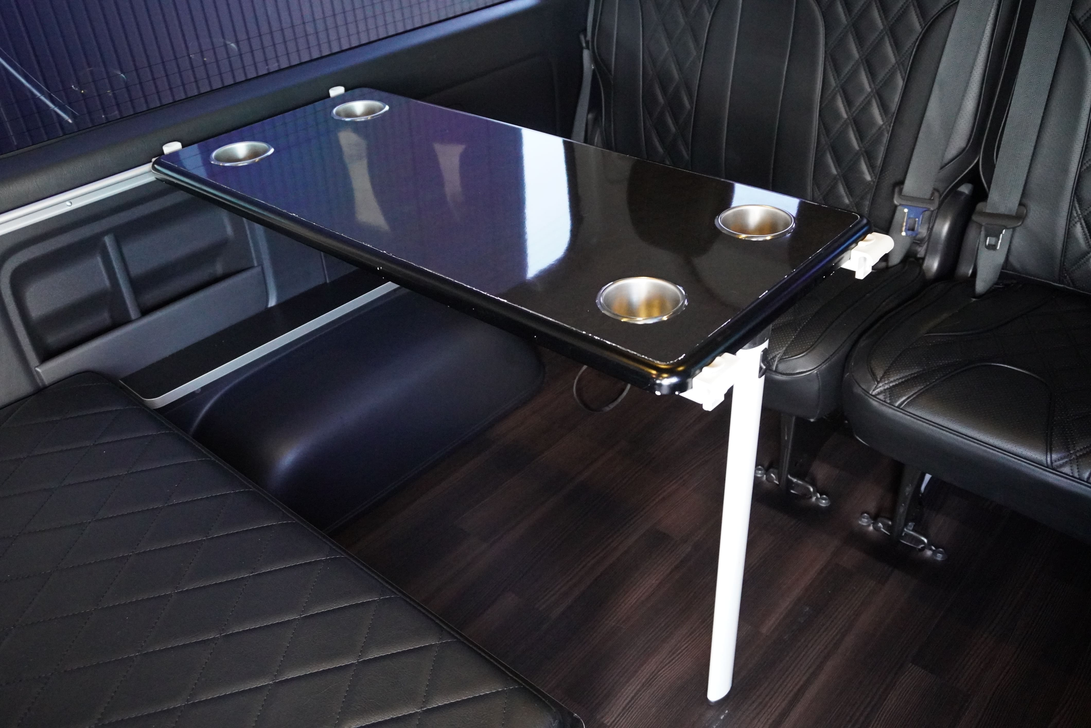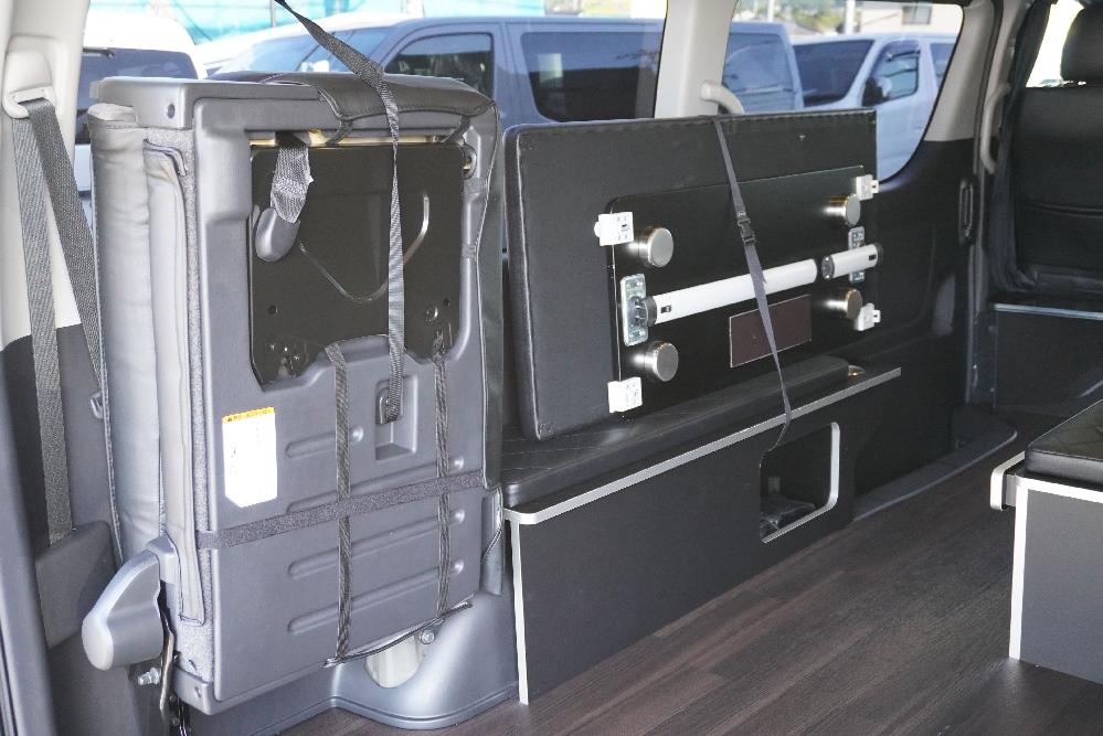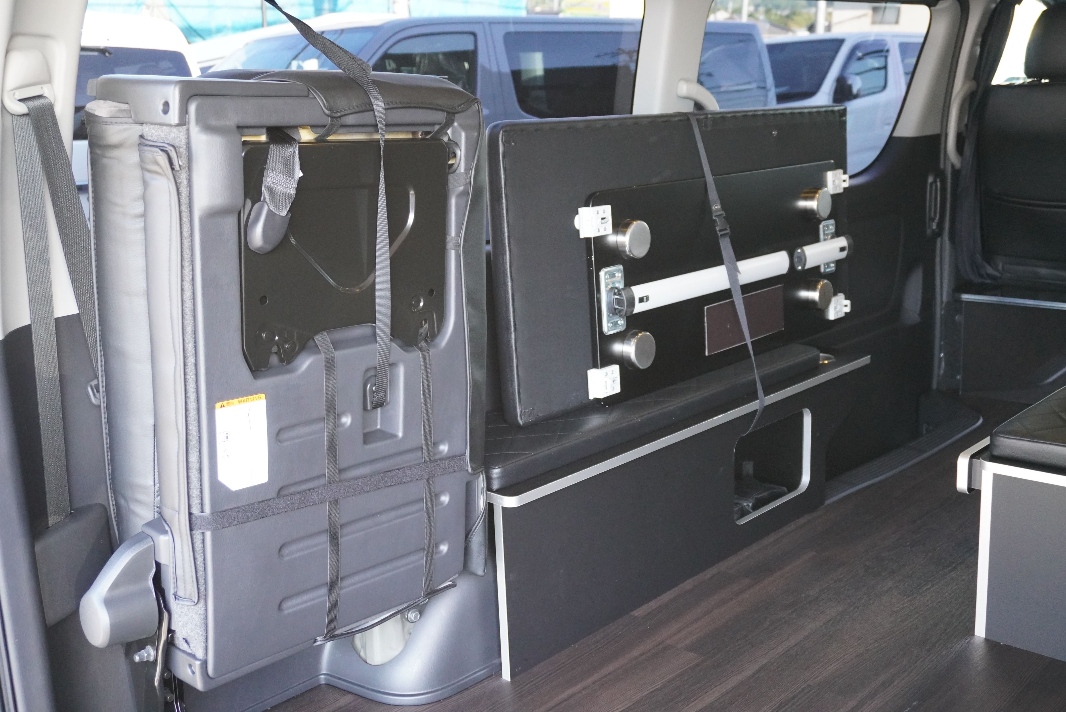 オプションサイドレールテーブル(ロングレッグ) 対面ラウンジ展開 2列目ワゴンGL純正2名シート 3列目ワゴンGL純正シート取り外し IF-WB8後ろ向き2名専用ベット家具