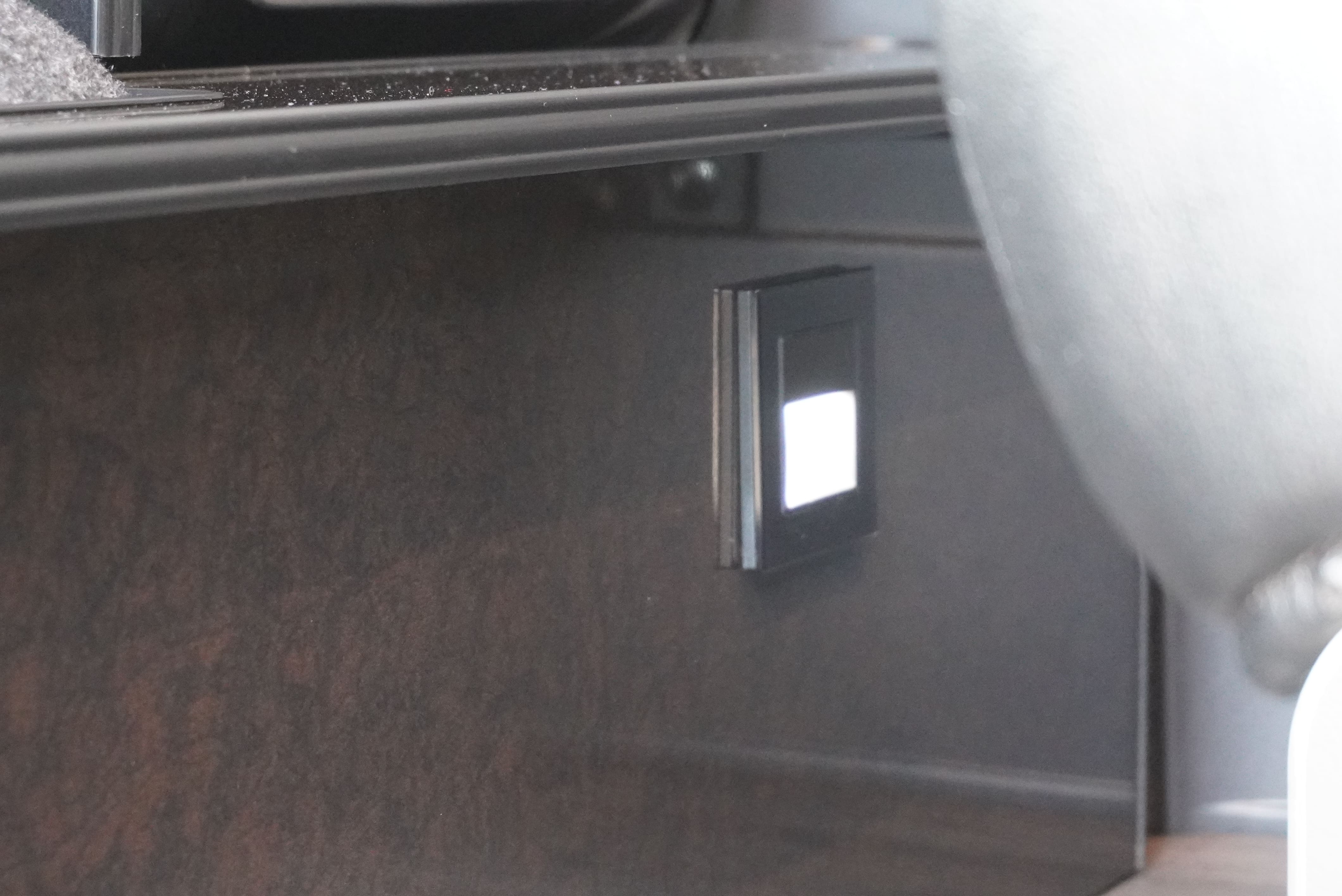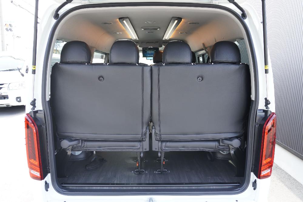 3列目後ろ向き2名シート展開 ベットマット背もたれ展開 後ろ向き専用シートベッド 足下間接照明