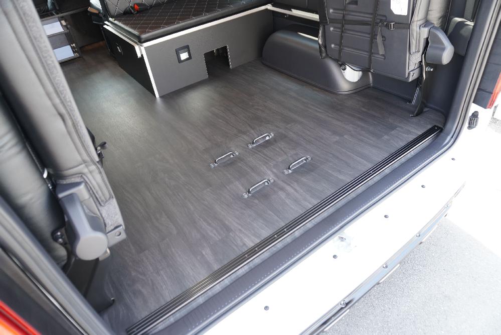 ワゴンGL純正4列目セパレート跳ね上げシート ラゲージスペース確保 フロアフローリング施工 スペアタイヤ取り出し出来ます。 フロアビス打ち無し 足下間接照明