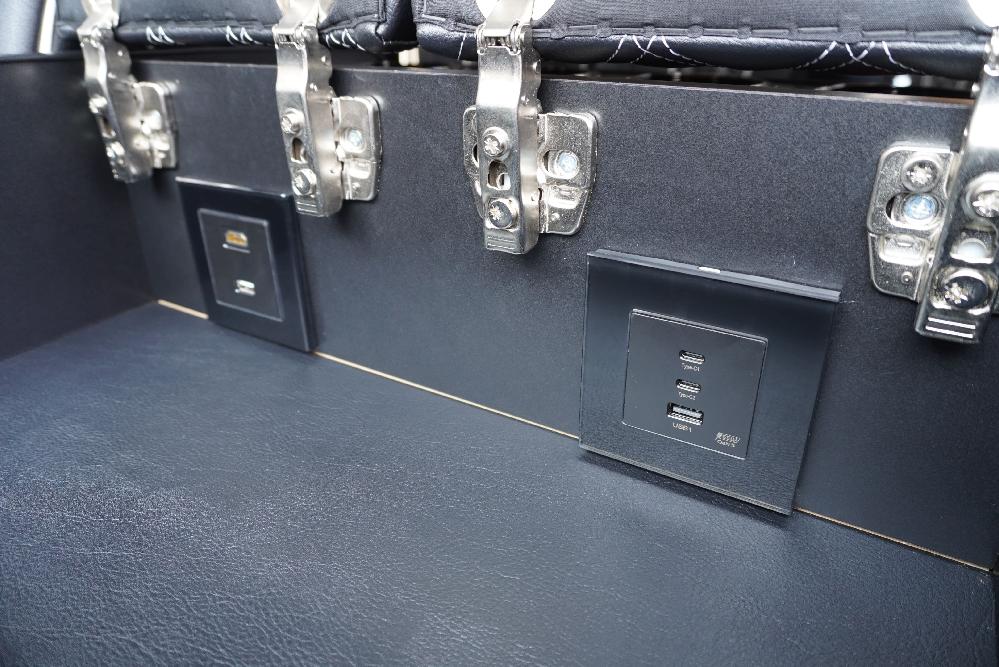 対面ラウンジ展開 2列目ワゴンGL純正2名シート 3列目ワゴンGL純正シート取り外し IF-WB8後ろ向き2名専用ベット家具 通路足下間接照明