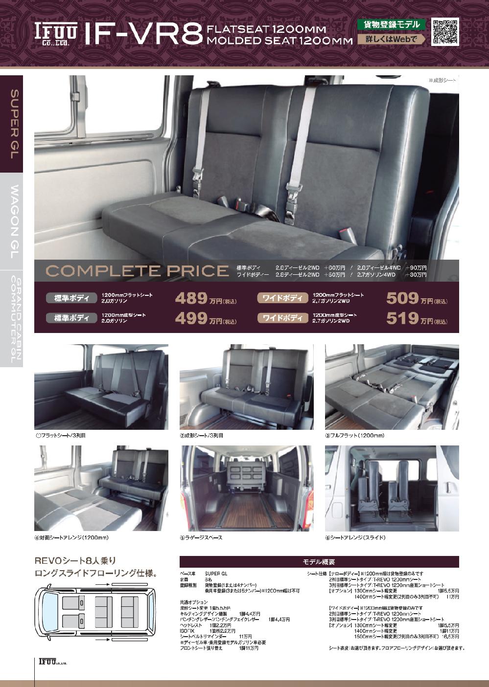 ハイエースワゴン/コミュ-タ-IF-WX8 X(クロス)シート2脚 IF-WB8対面ラウンジベット家具 IF-WB8リビングサルーン IF-WR8 REVOシート2脚 IF-WR9 REVOシート1脚ベット家具 IF-WR10キャプテンシート・REVOシート キャラバンマイクロバスIF-WB8 メルセデスベンツVクラスTRAVELLER